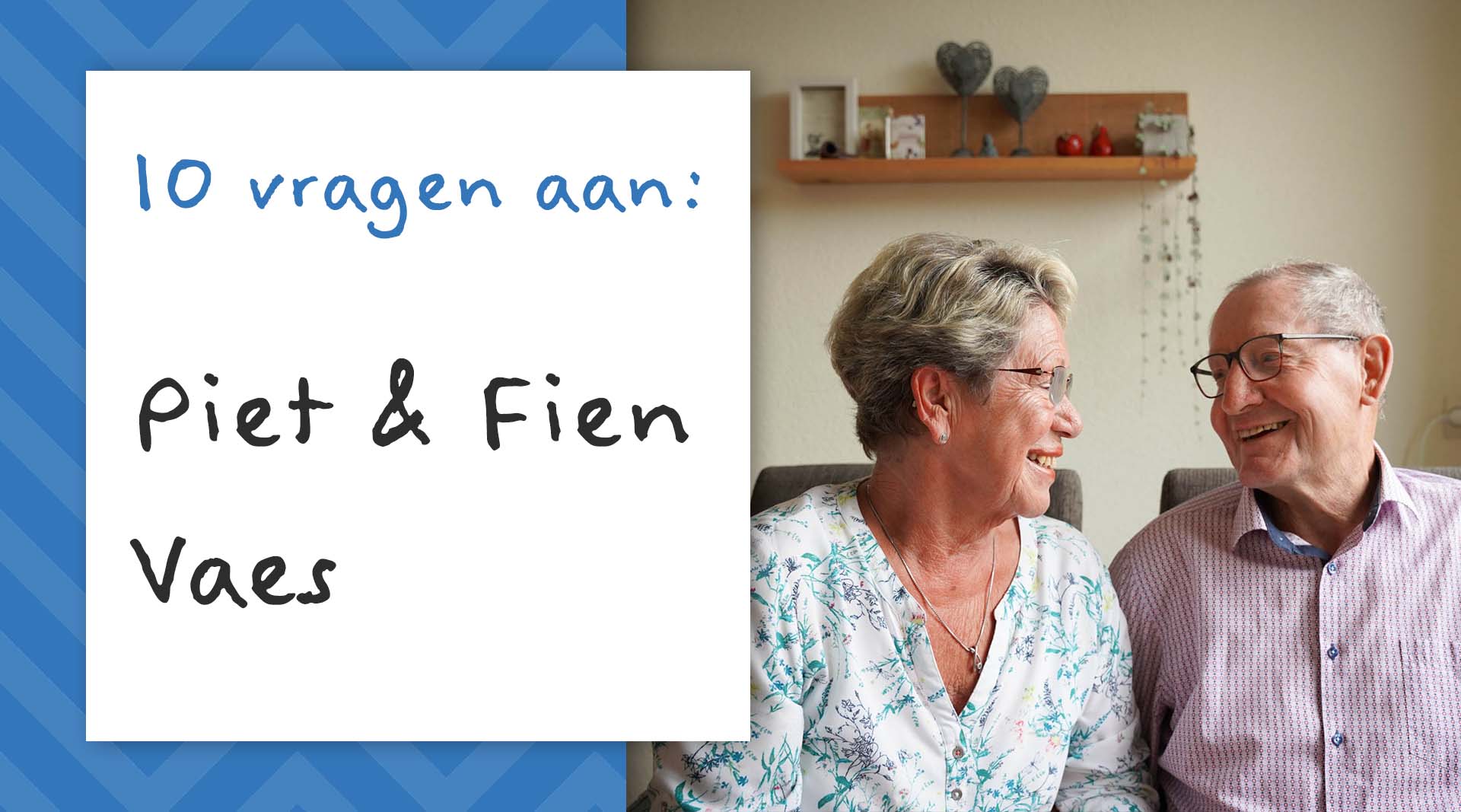 Wij zijn Piet en Fien Vaes. Beide geboren en getogen in Nederweert. Piet is net 80 geworden en Fien is 76. Piet is nu 19 jaar aan het genieten van zijn pensioen. Mensen kunnen ons kennen van het werk dat wij jarenlang hebben gedaan bij de voetbalclub Merefeldia. Daar heeft Piet eerst zelf gevoetbald, is hij leider geweest en ook nog lid van het bestuur. Daarna is Piet nog sportmasseur geweest. Fien was daar ook vaak te vinden, ze is daar ooit begonnen om met thuiswedstrijden erwtensoep te maken voor de spelers. Later is Fien ook nog altijd actief geweest met het borrelgroepje. Veel mensen kwamen daarna nog bij ons thuis borrelen. Daardoor kennen we nog steeds heel veel mensen uit Nederweert en bij Merefeldia.