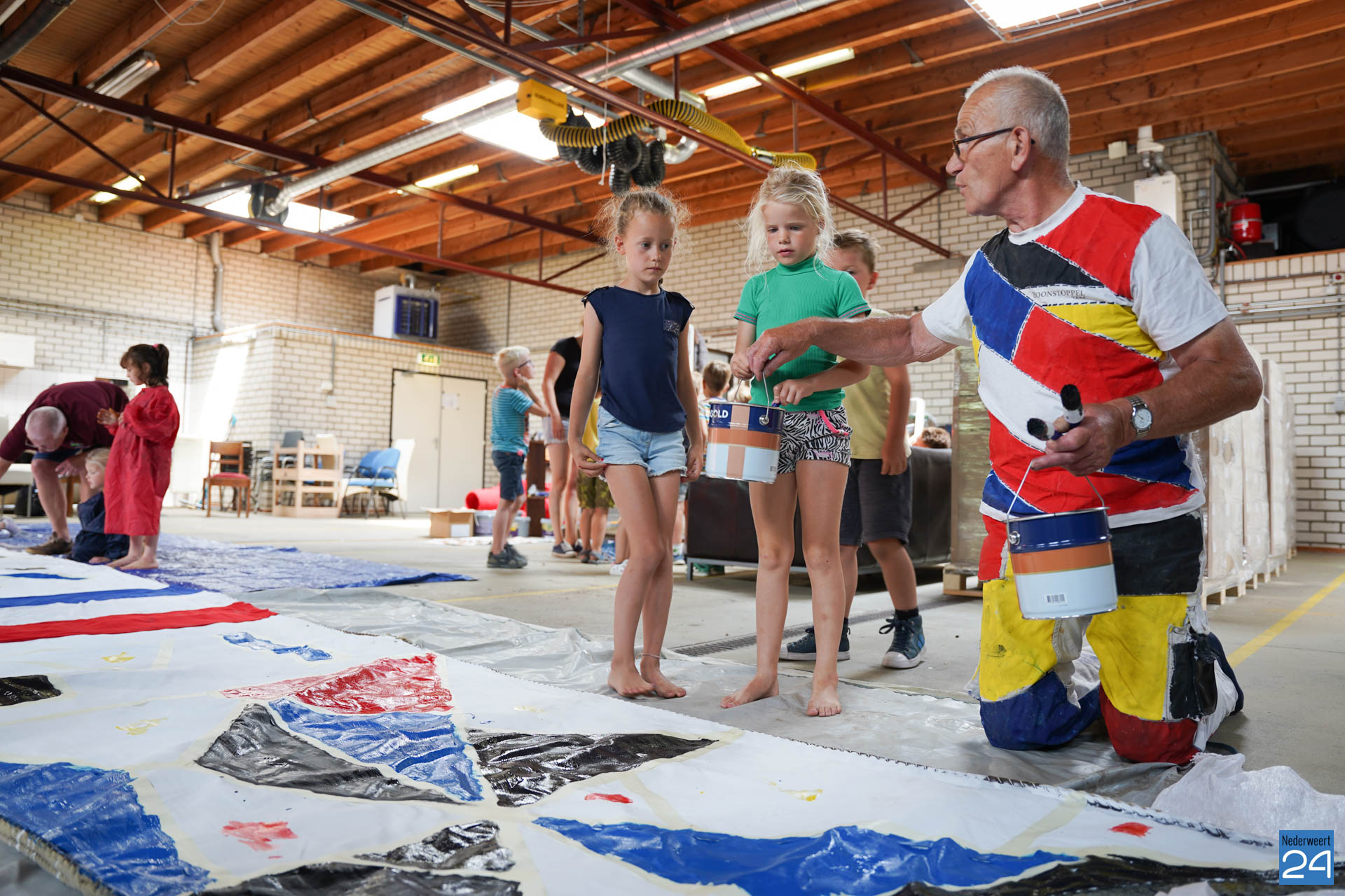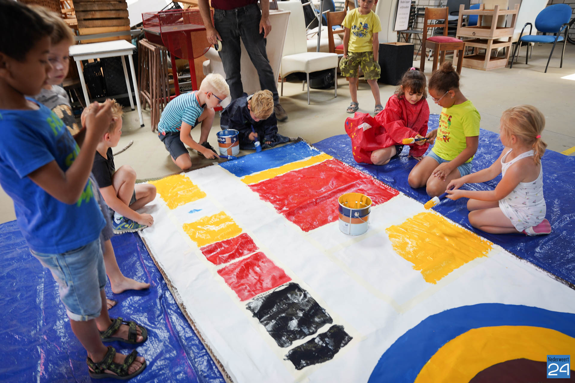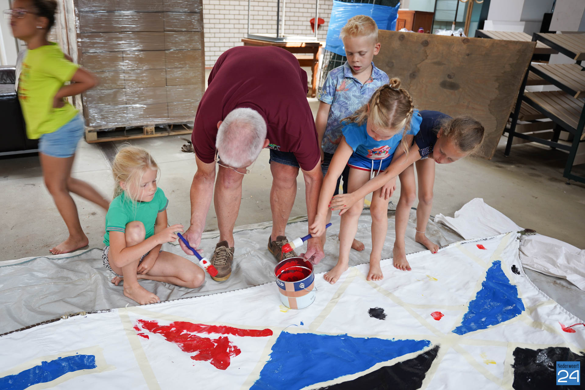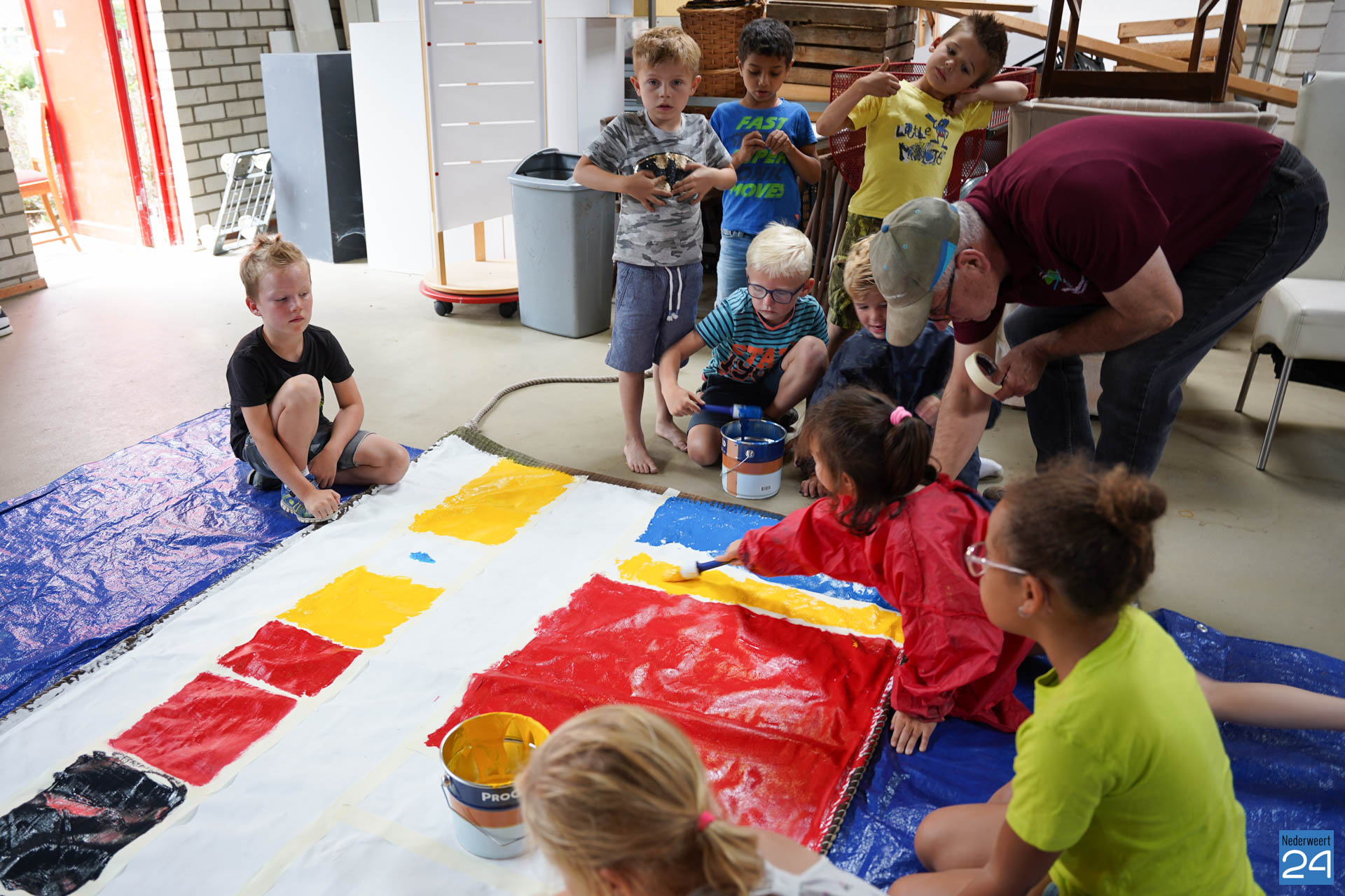 Dinsdag 5 juli om 13.00 uur gingen de kinderen aan de slag. De resultaten van de schildersessie zijn te zien in september. Dan wordt het jubileum van De Windlust gevierd met een aantal speciale activiteiten waaronder het hijsen van de speciale Mondriaanzeilen.