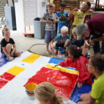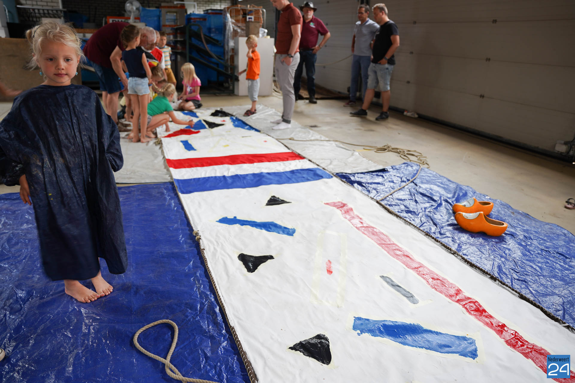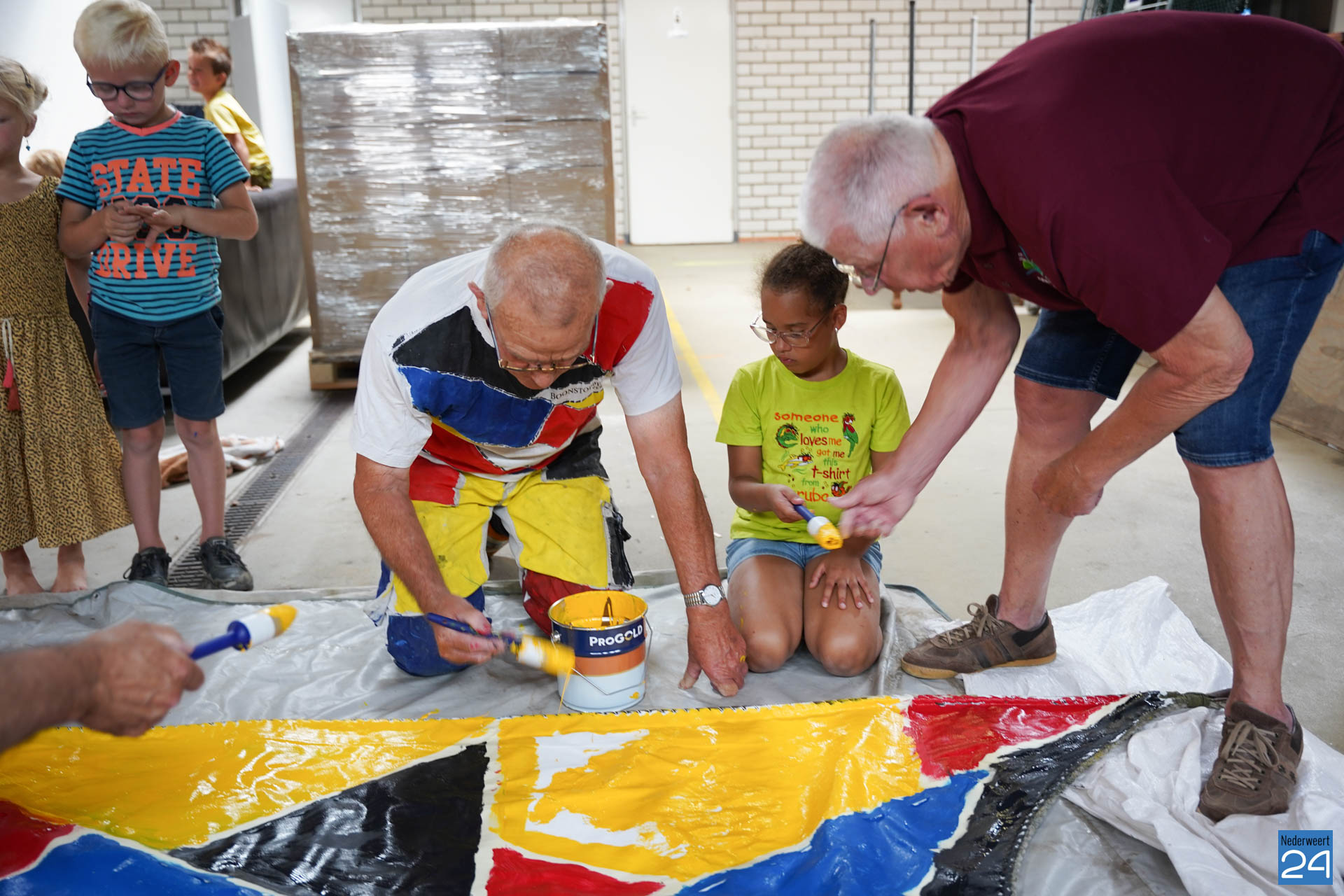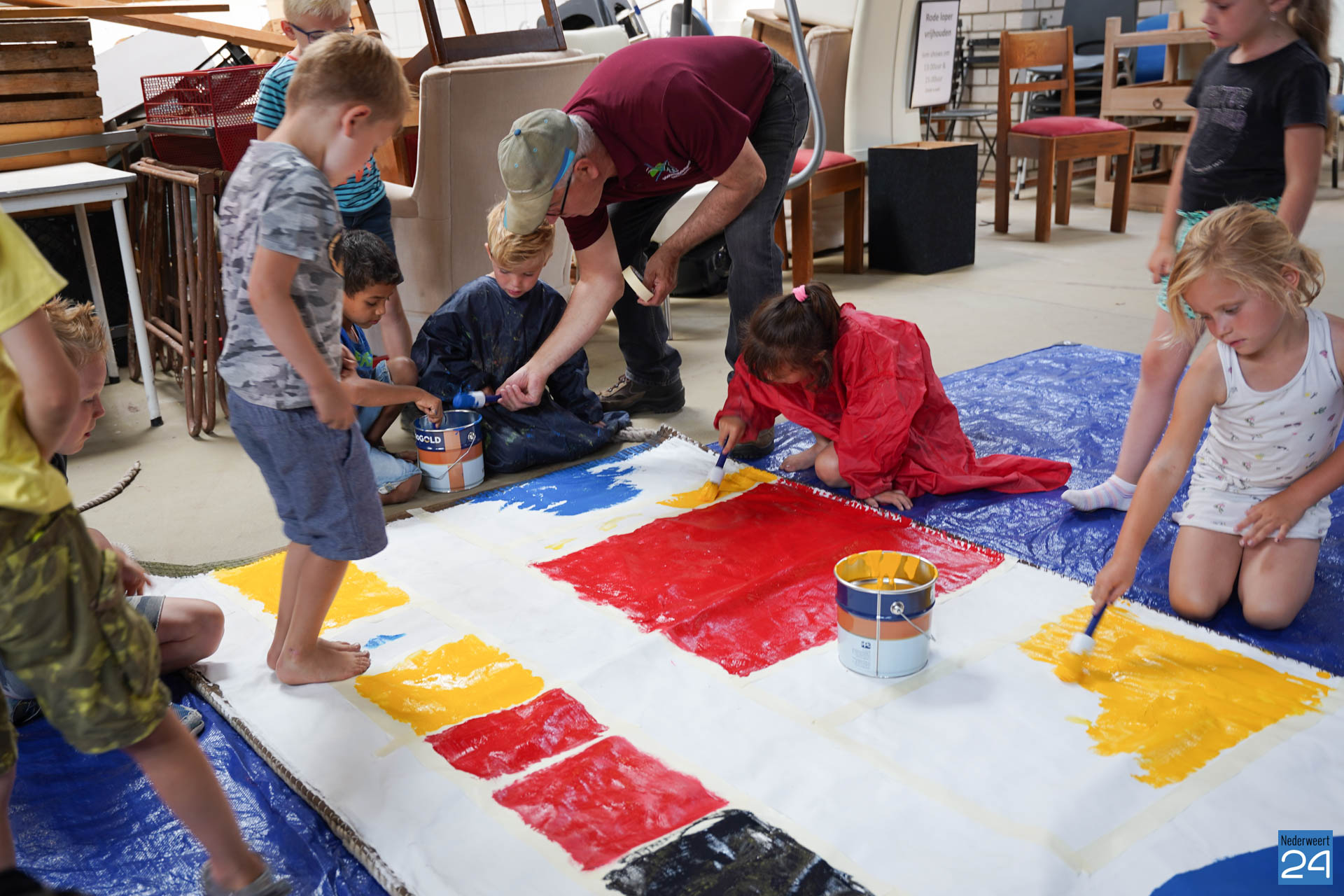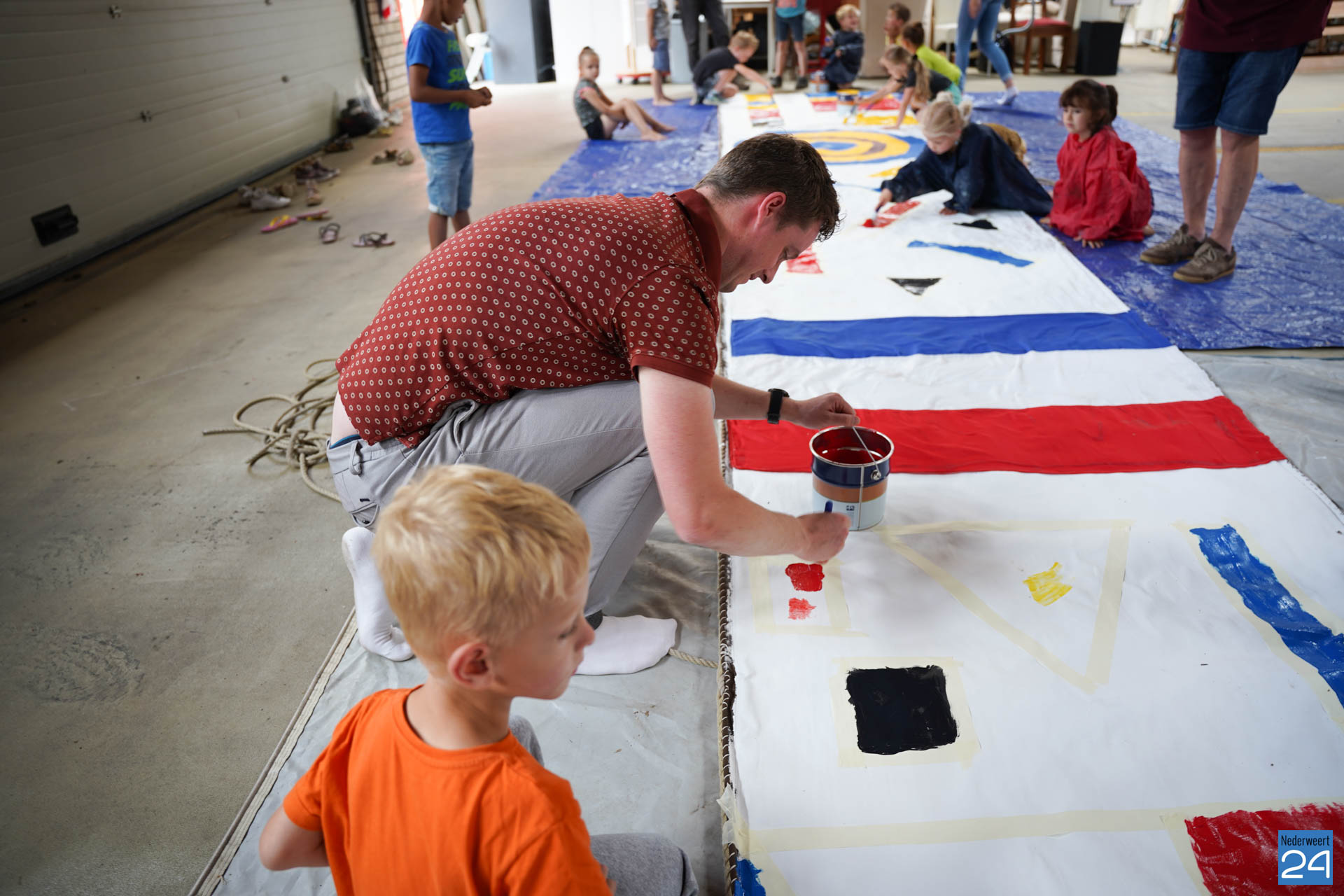 Dinsdag 5 juli om 13.00 uur gingen de kinderen aan de slag. De resultaten van de schildersessie zijn te zien in september. Dan wordt het jubileum van De Windlust gevierd met een aantal speciale activiteiten waaronder het hijsen van de speciale Mondriaanzeilen.