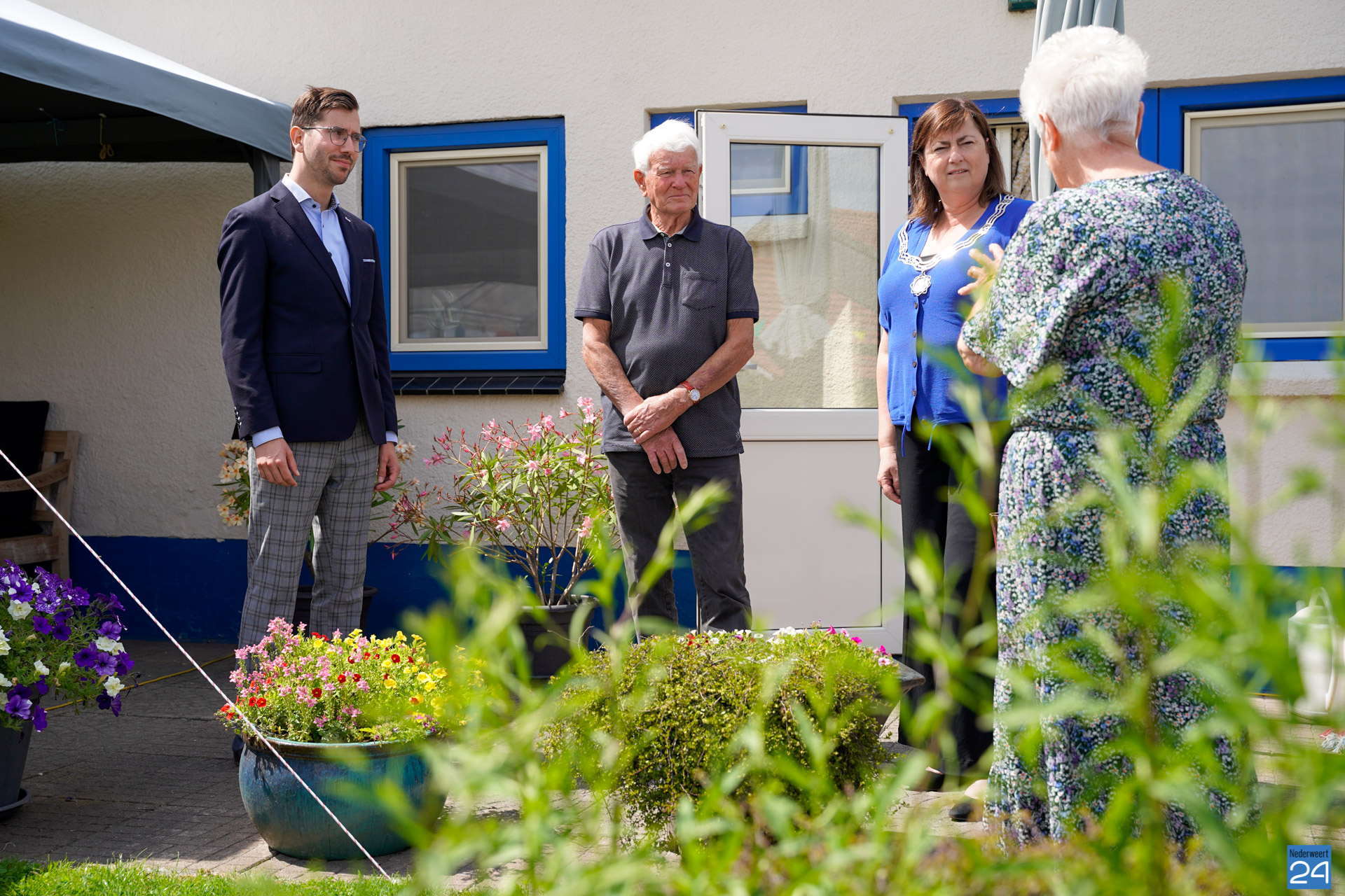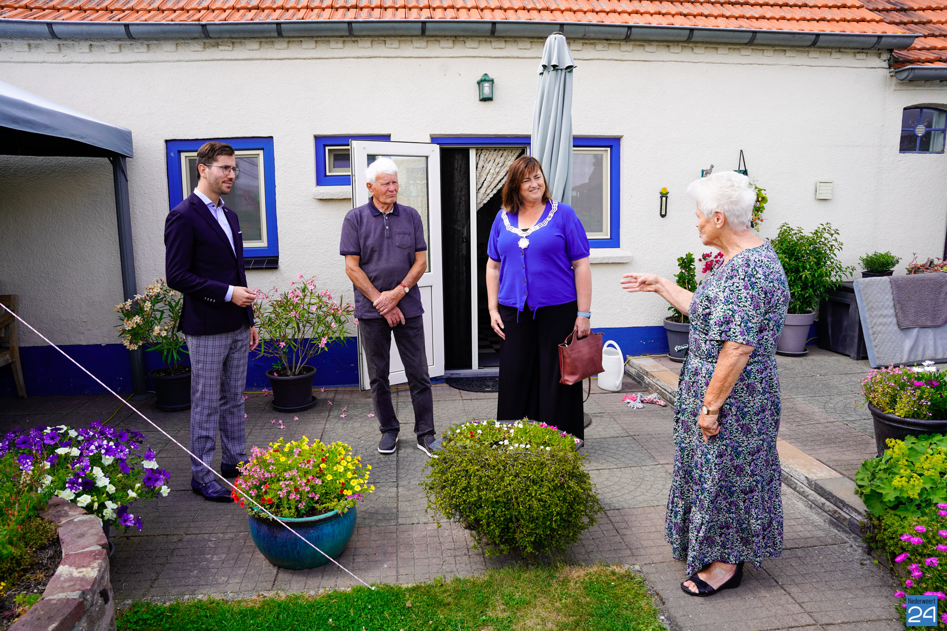 Woensdagmiddag brachten burgemeester Op de Laak en wethouder Franssen een bezoek aan de heer en mevrouw Van Hofwegen-Masselink om hen te feliciteren met hun zestigjarig huwelijksjubileum.