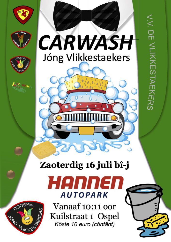 Wil je een mooie blinkende auto en wil je daarmee ook een goed doel steunen? Kom dan op zaterdag 16 juli naar Autopark Hannen, Kuilstraat 1 in Ospel. Van 10.11 uur tot 15.00 uur staat daar, onder begeleiding, een hele ploeg enthousiaste jeugd klaar om je auto van onder tot boven te laten glimmen. De kosten bedragen €10,- en het levert je een mooie auto en een dankbare Jong Vlikke op. Het promofilmpje voor de carwash bekijk je hier.