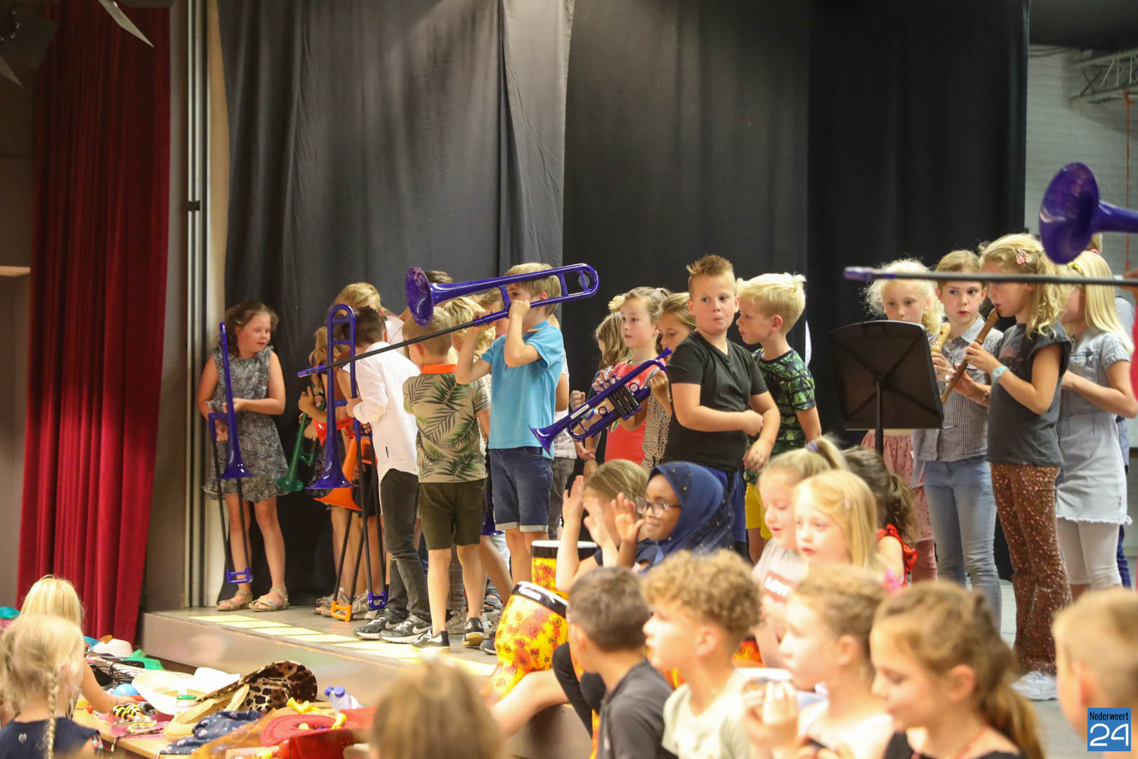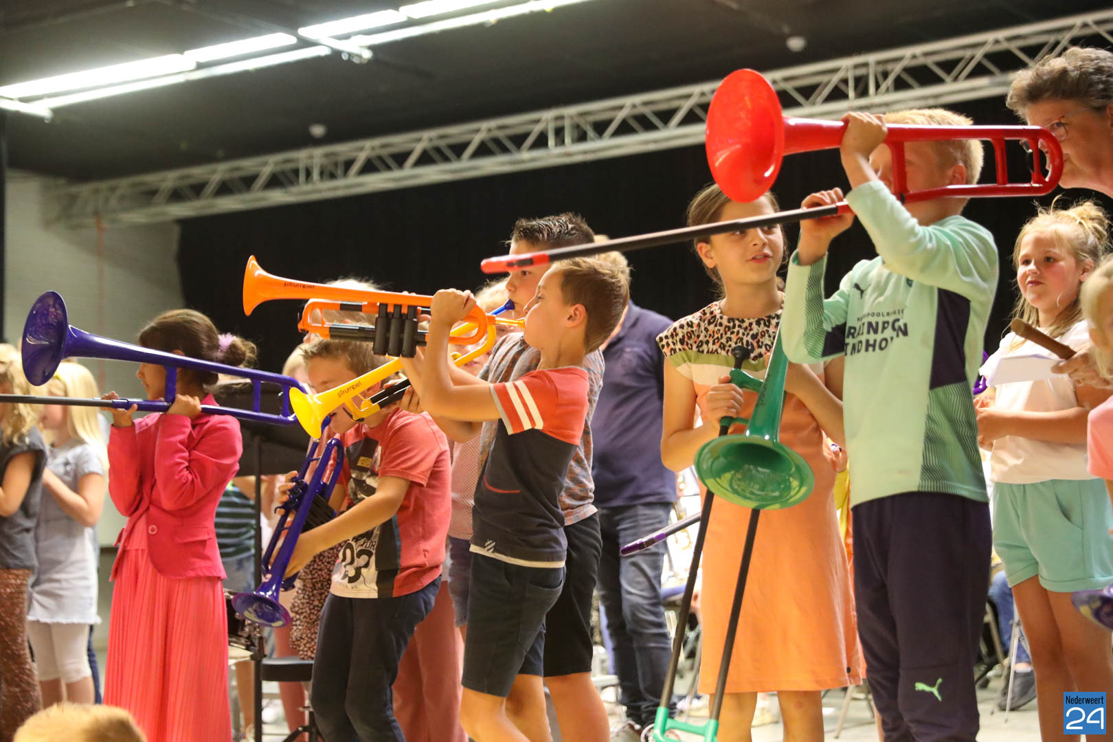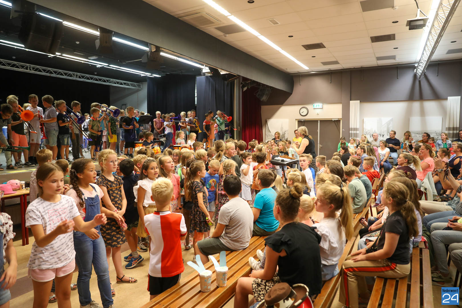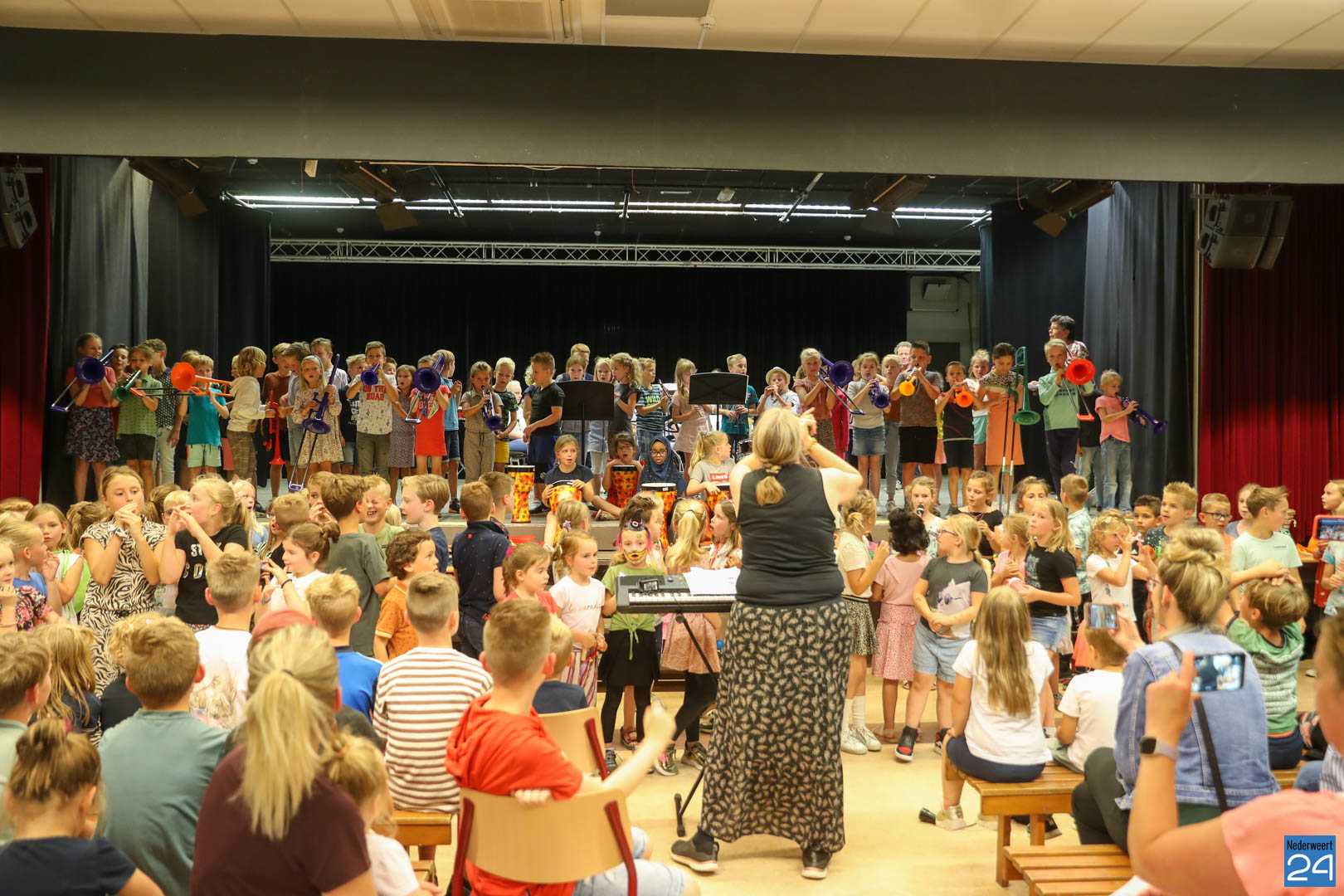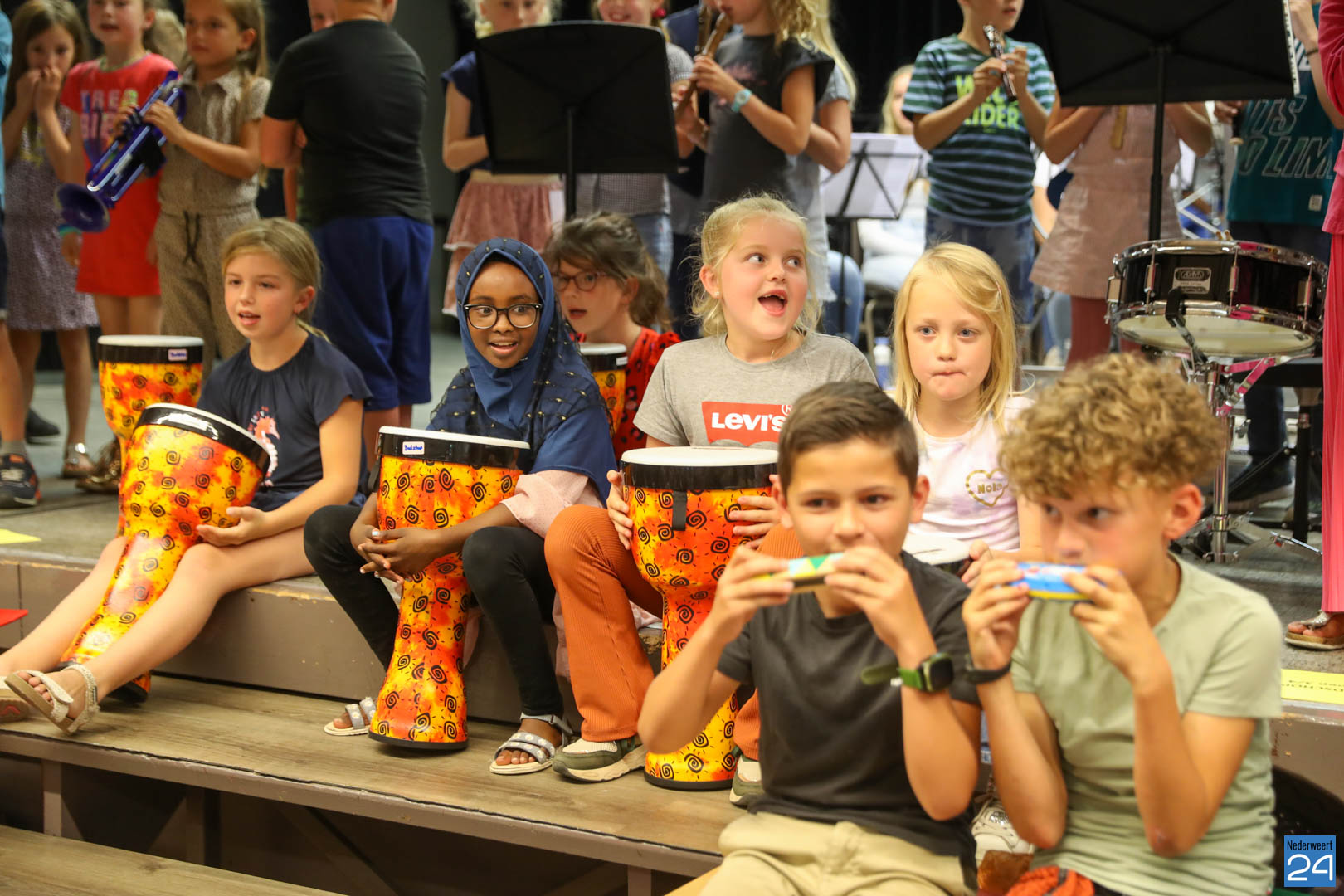 Ruim 100 leerlingen van de groepen 3, 4 en 5 van IKC’s De Kerneel, De Bongerd en Budschop uit Nederweert lieten afgelopen donderdag 7 juli horen dat het wel goed zit met de muzikale toekomst van Nederweert.