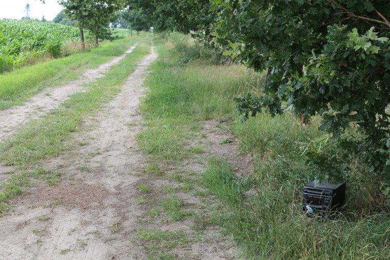 Alternatief plan voor het verdwijnen van de jubelende zang van veldleeuweriken en nachtegalen uit het buitengebied. Strategisch geplaatste geluidsinstallaties op zandweggetjes. Kruisvennendijk Ospel.