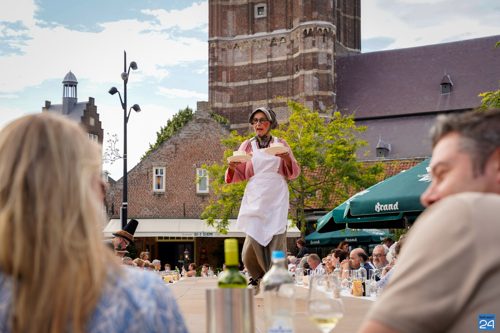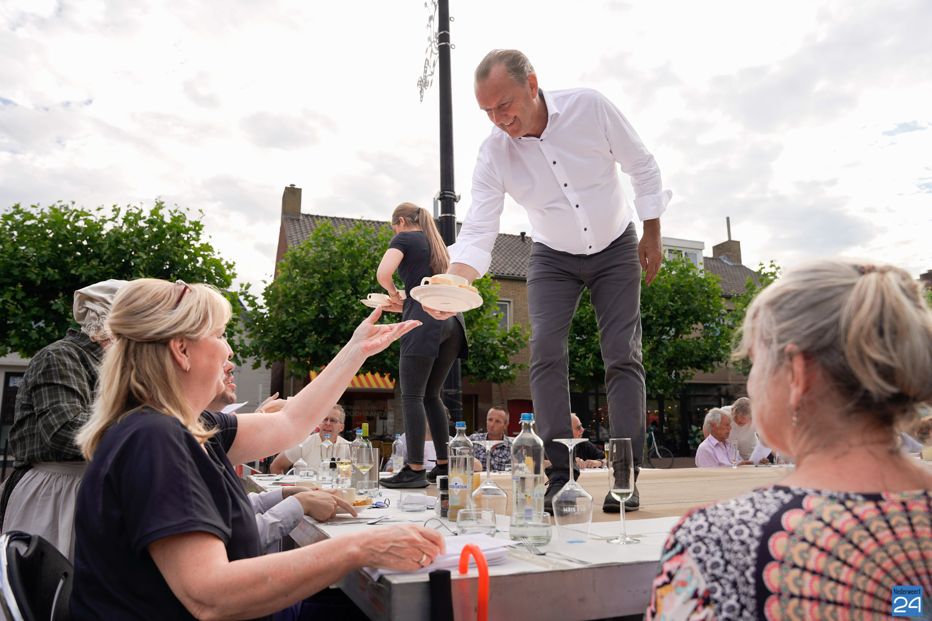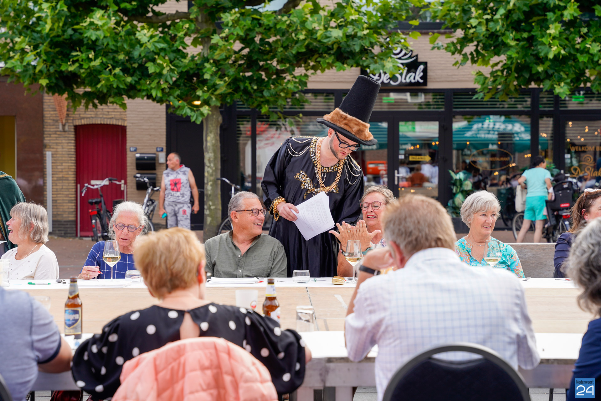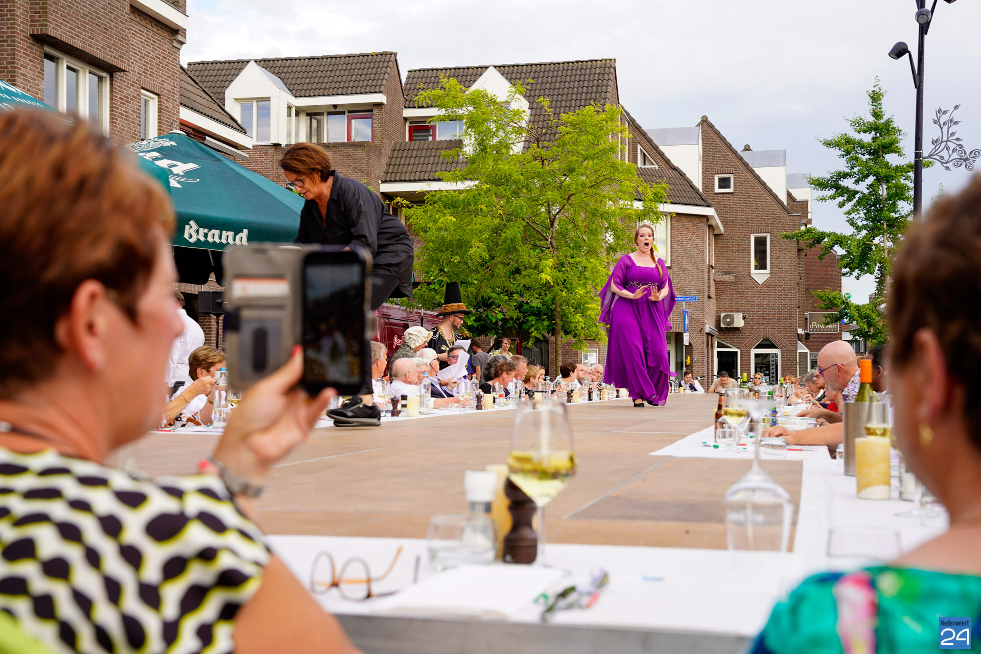 Aan een lange ‘tafel’ namen de gasten plaats. Deze tafel was zowel podium als tafel. Alle activiteit gebeurde in principe op het podium. Gasten werden vanuit het podium voorzien van de gerechten, van bovenaf dus. Het diner was een samenwerking van de restaurants Siem, Diverso en De Slak en ijssalon Florence. Toneelvereniging De Krottepoffers, The Hot Buskers, een operazangeres, Magic Herman en Bjorn Smits zorgden voor de entertainment.