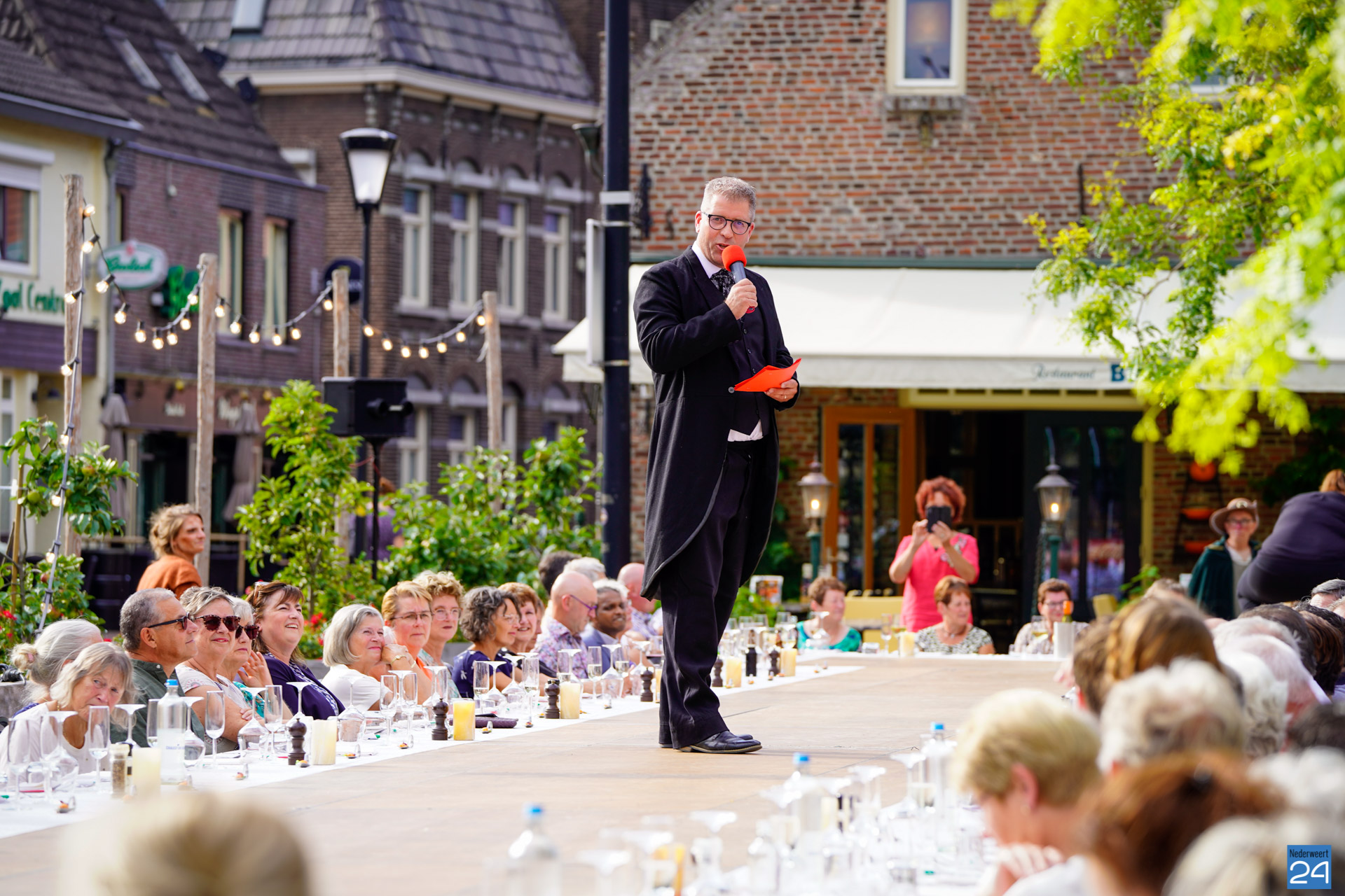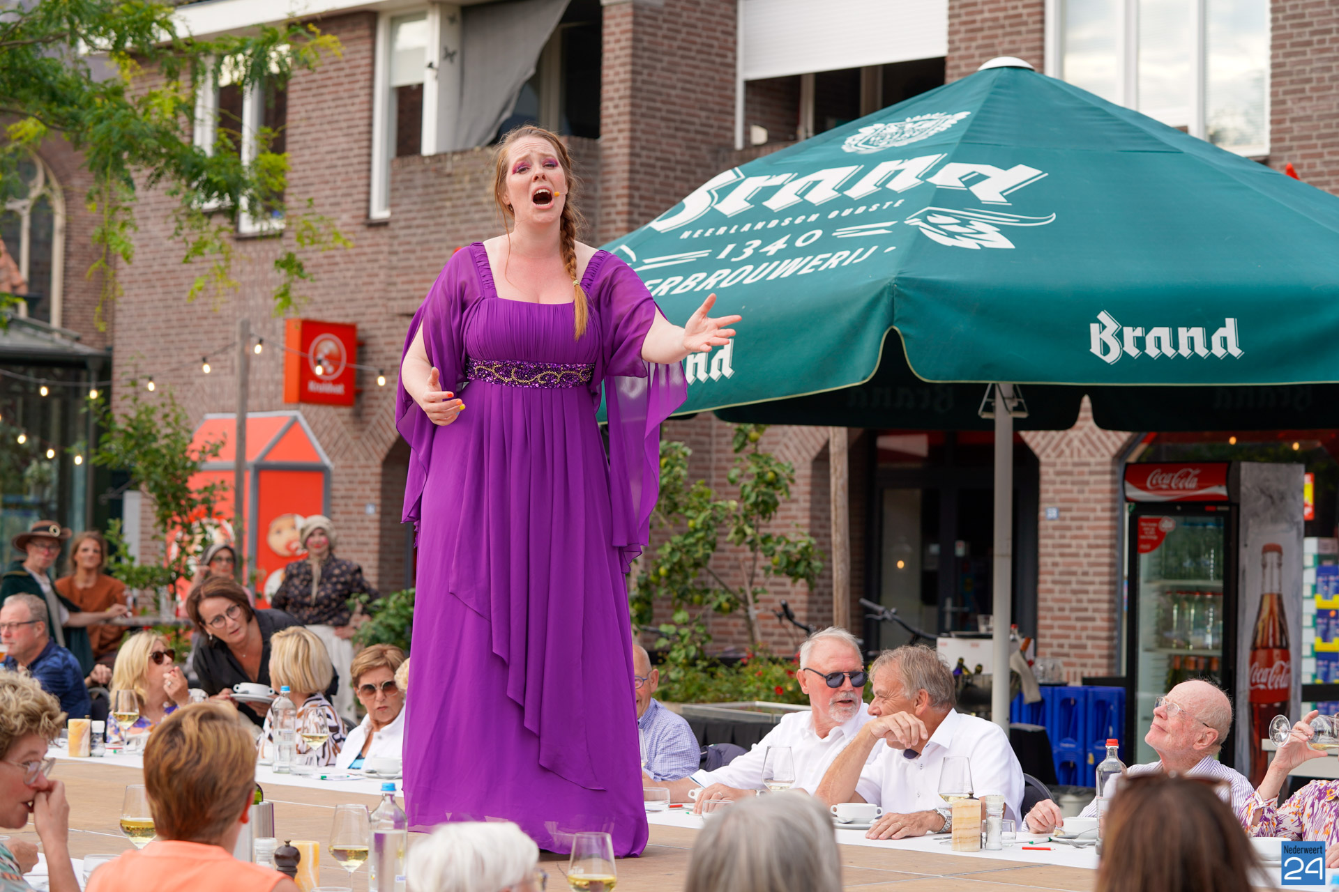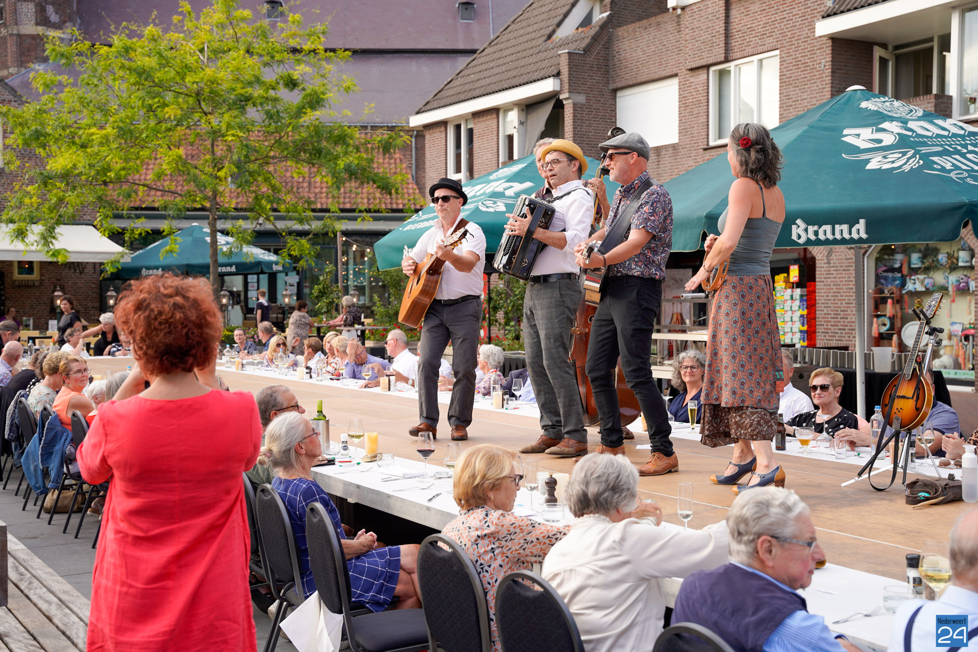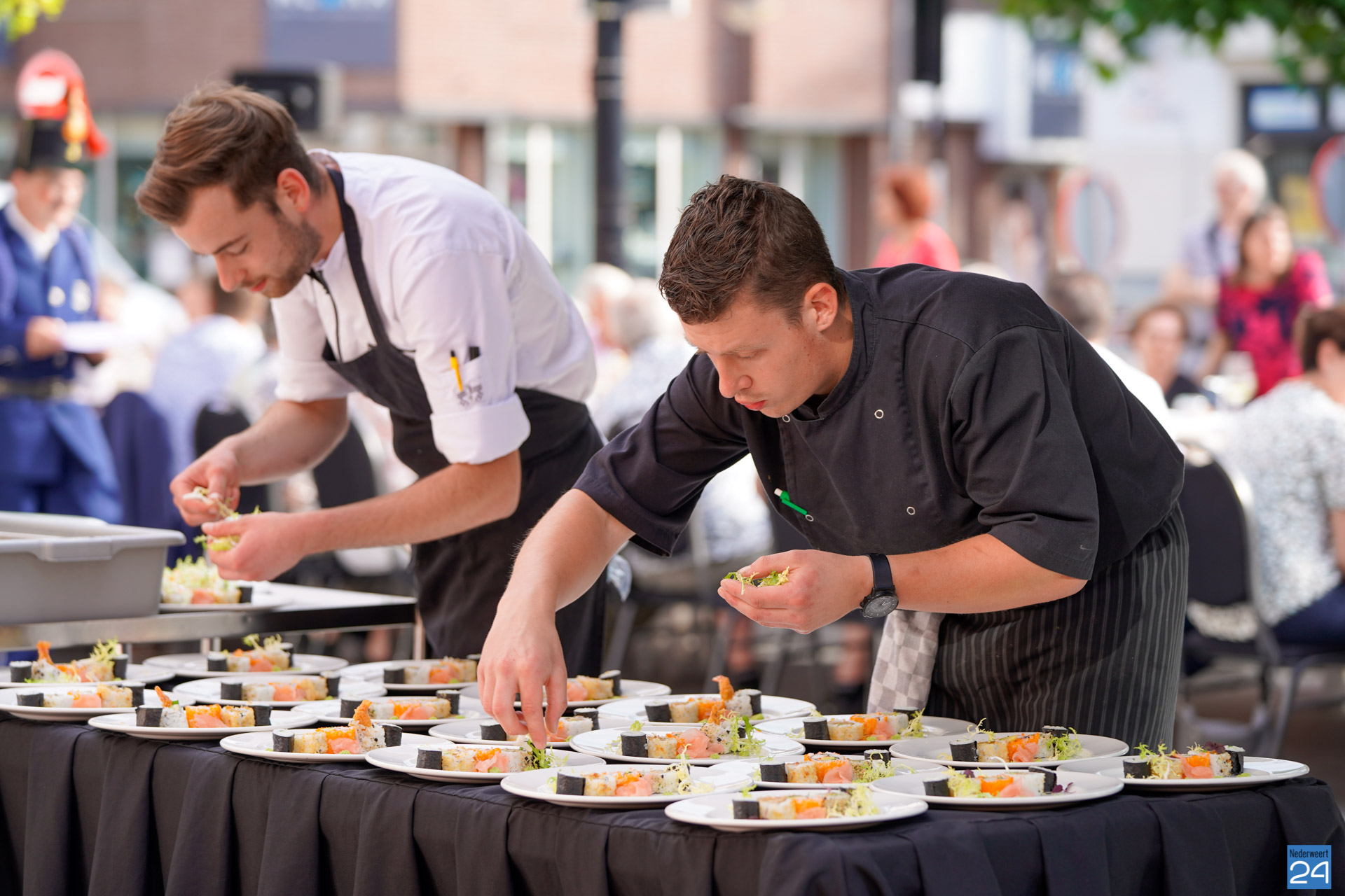 Aan een lange ‘tafel’ namen de gasten plaats. Deze tafel was zowel podium als tafel. Alle activiteit gebeurde in principe op het podium. Gasten werden vanuit het podium voorzien van de gerechten, van bovenaf dus. Het diner was een samenwerking van de restaurants Siem, Diverso en De Slak en ijssalon Florence. Toneelvereniging De Krottepoffers, The Hot Buskers, een operazangeres, Magic Herman en Bjorn Smits zorgden voor de entertainment.