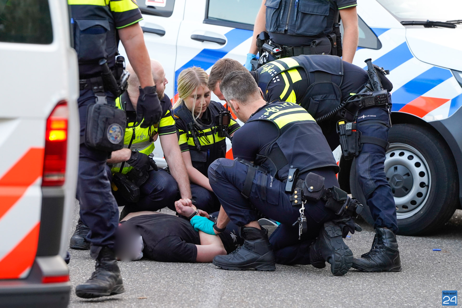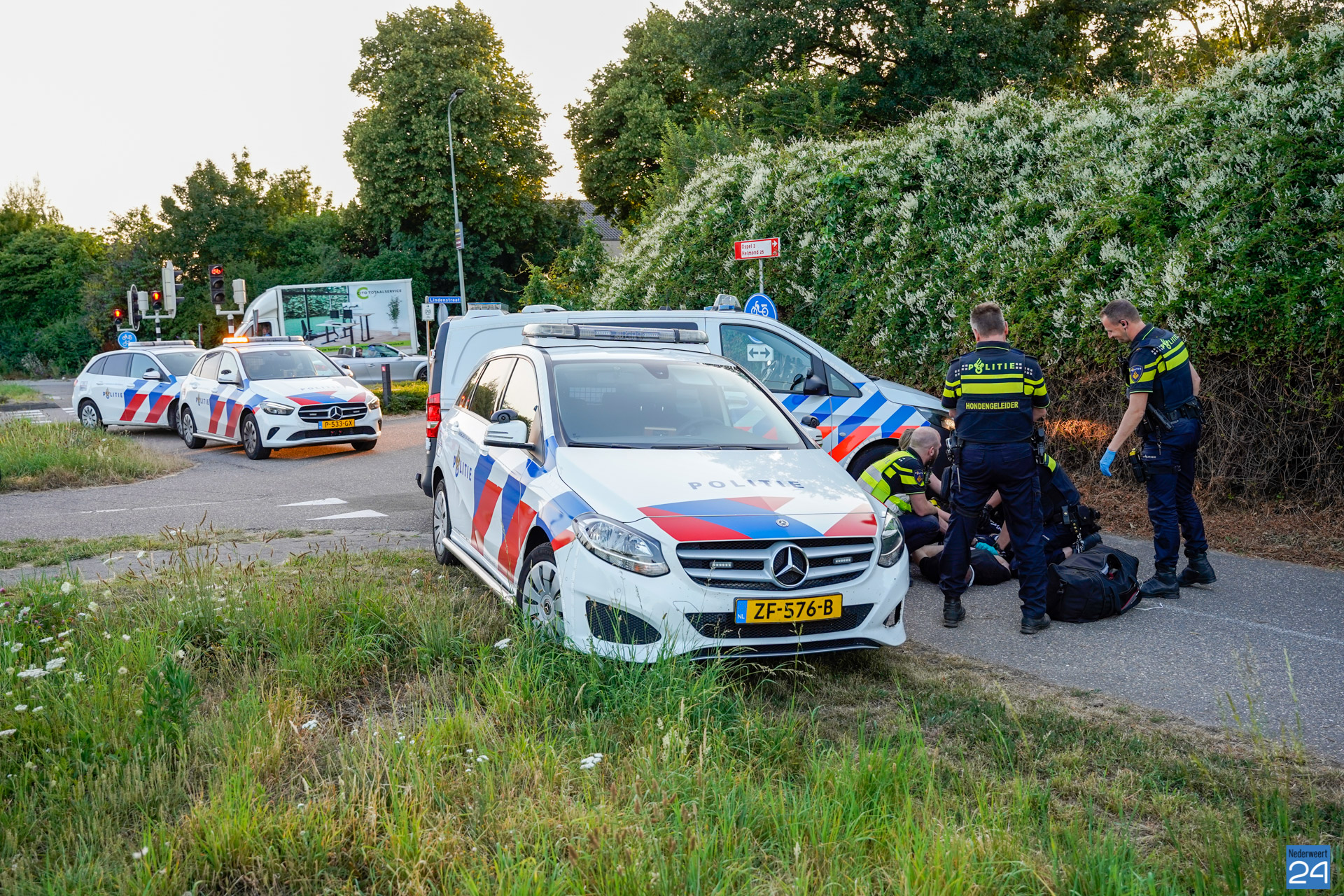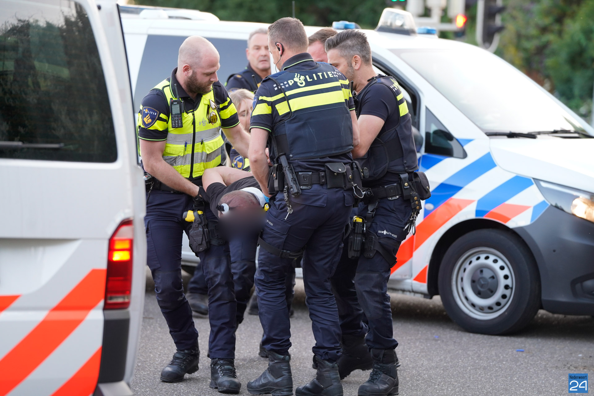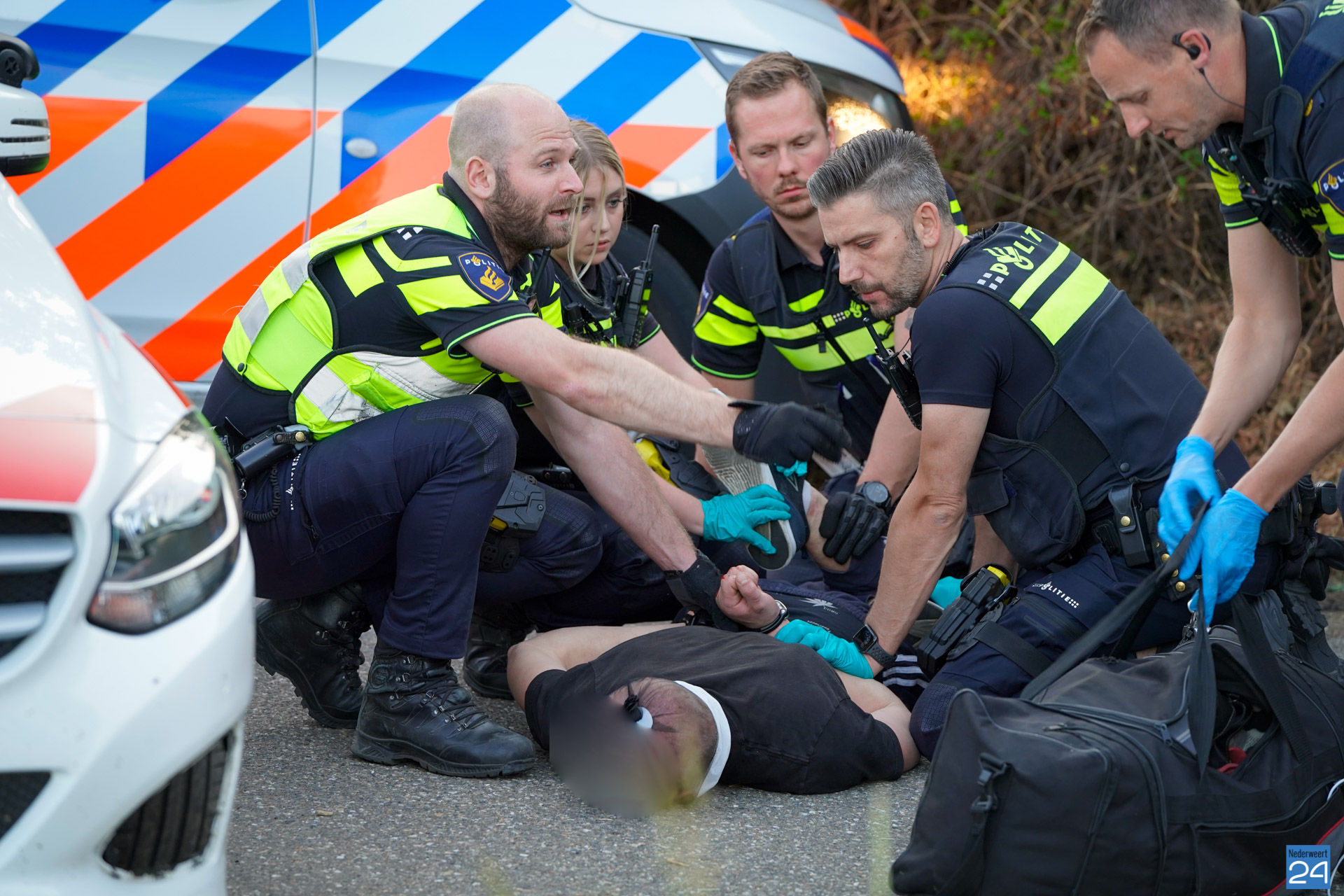 Zondagavond heeft de politie een agressieve man aangehouden op het fietspad naast de Randweg Zuid N275 in Nederweert.