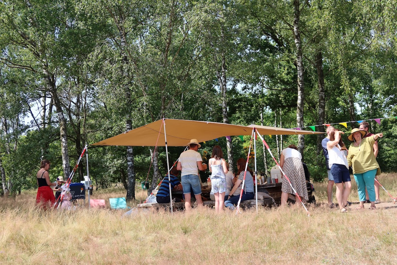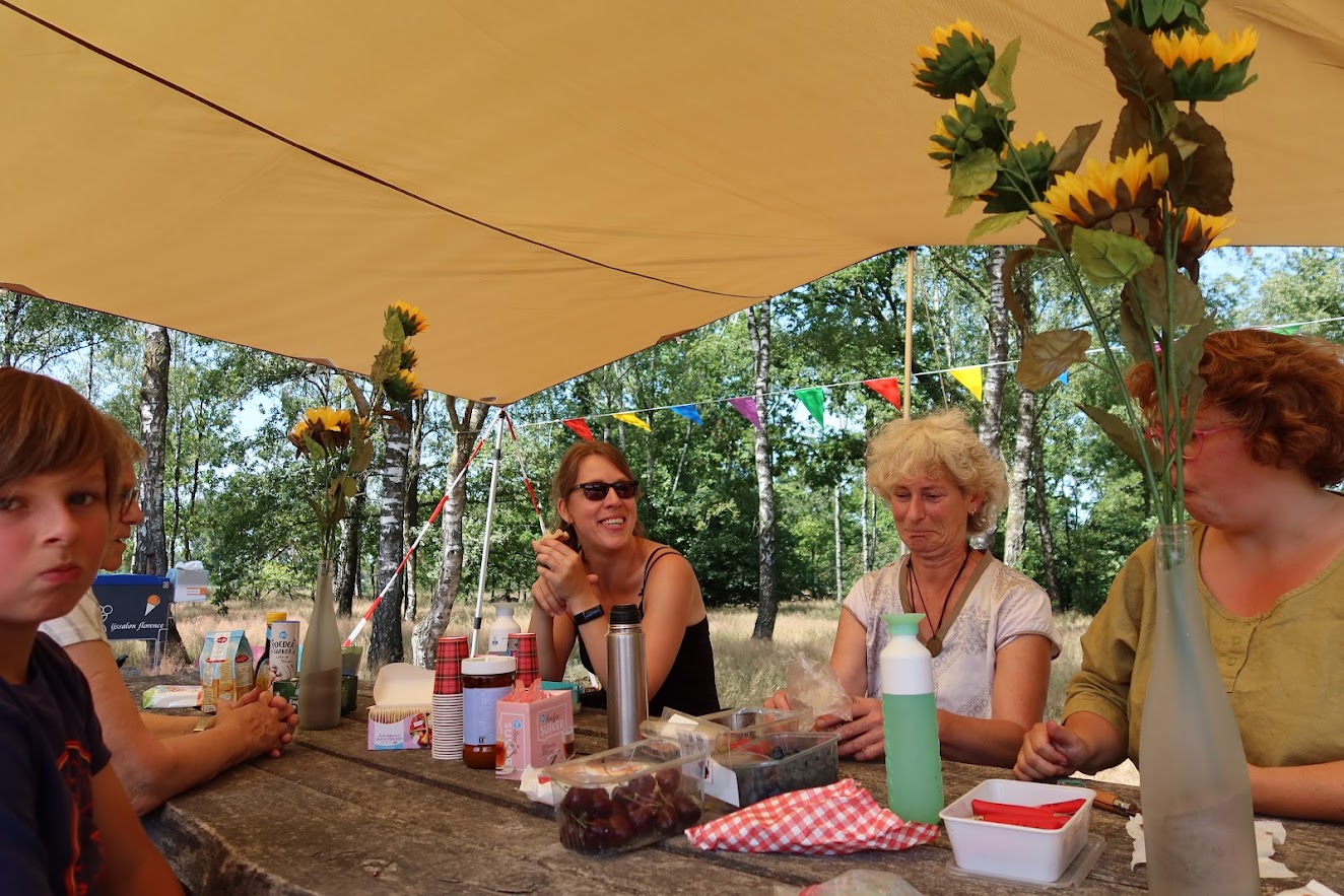 Het weer was goed gezind: in een zonovergoten Houtsberg werd er lekker gespeeld met modder, werden er ijsjes geschept en samen pannenkoeken gebakken. En er was vooral ruimte om elkaar te ontmoeten. Het was een hele gezellig middag, die muzikaal werd aangekleed met accordeonmuziek.