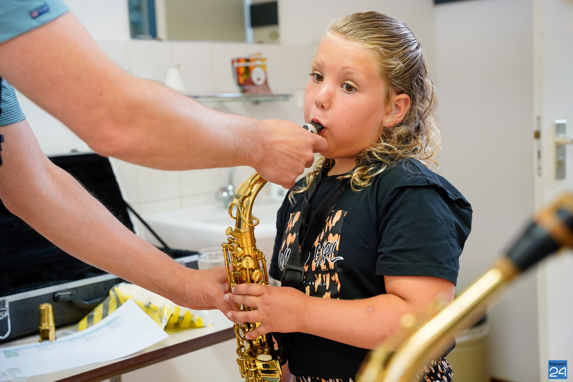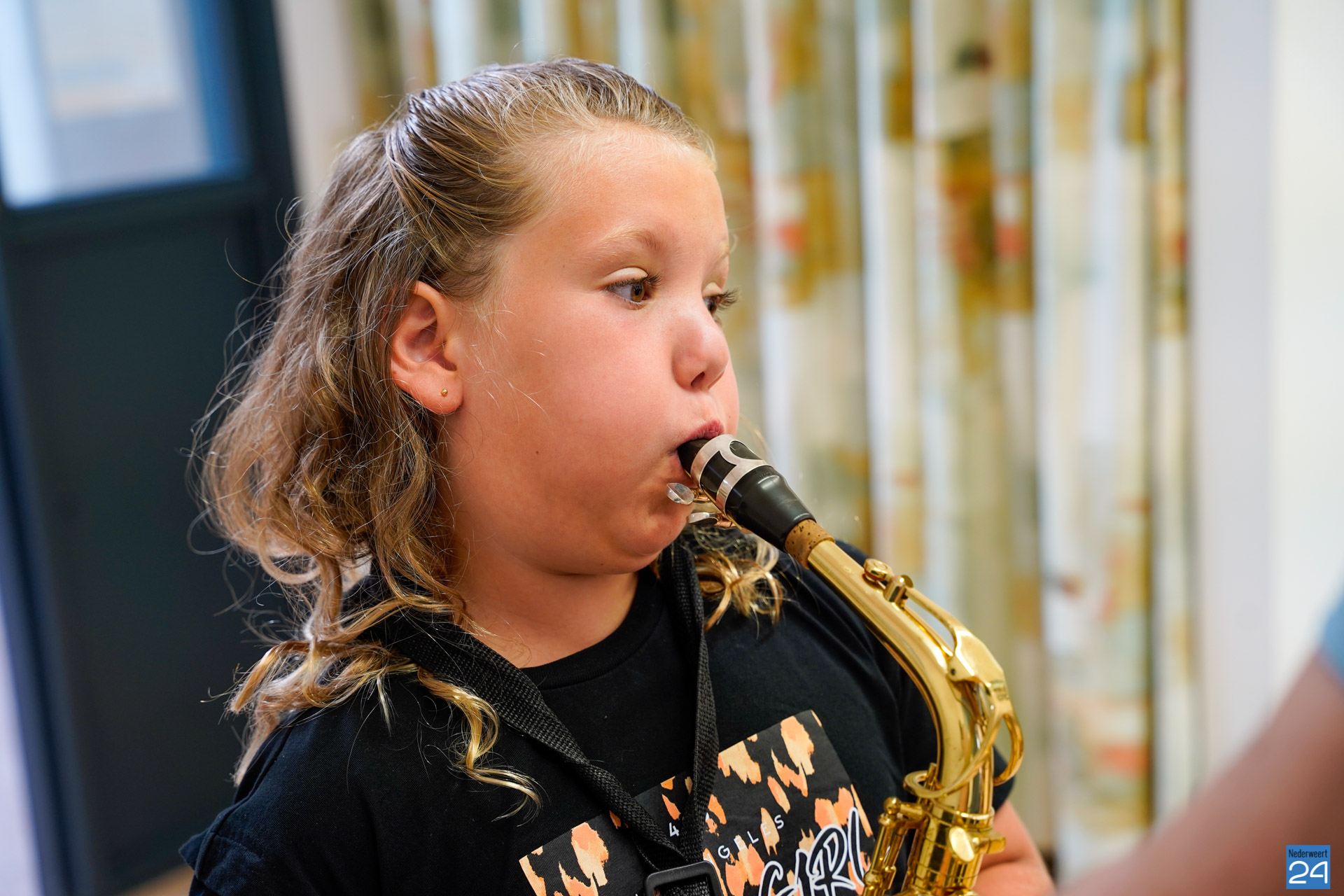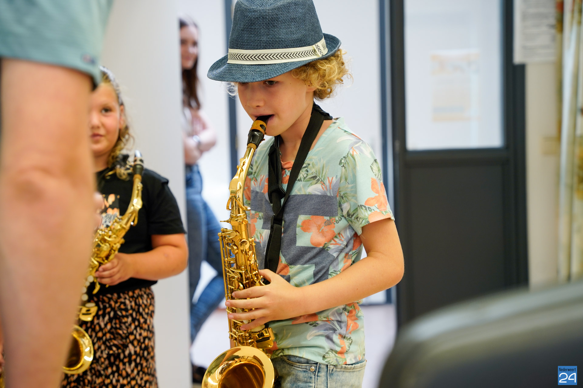Onder leiding van vakdocenten mochten alle deelnemers drie instrumenten naar keuze uitproberen. Zo konden ze ervaren hoe het is om les te krijgen op klarinet, dwarsfluit, trompet, trombone, saxofoon en slagwerk en ontdekken welk instrument het beste bij hem of haar past. Ook konden de kinderen op blokfluit een proefles Starten met muziek volgen. Het was gezellig druk. Ouders, broertjes en zusjes keken vol aandacht toe.