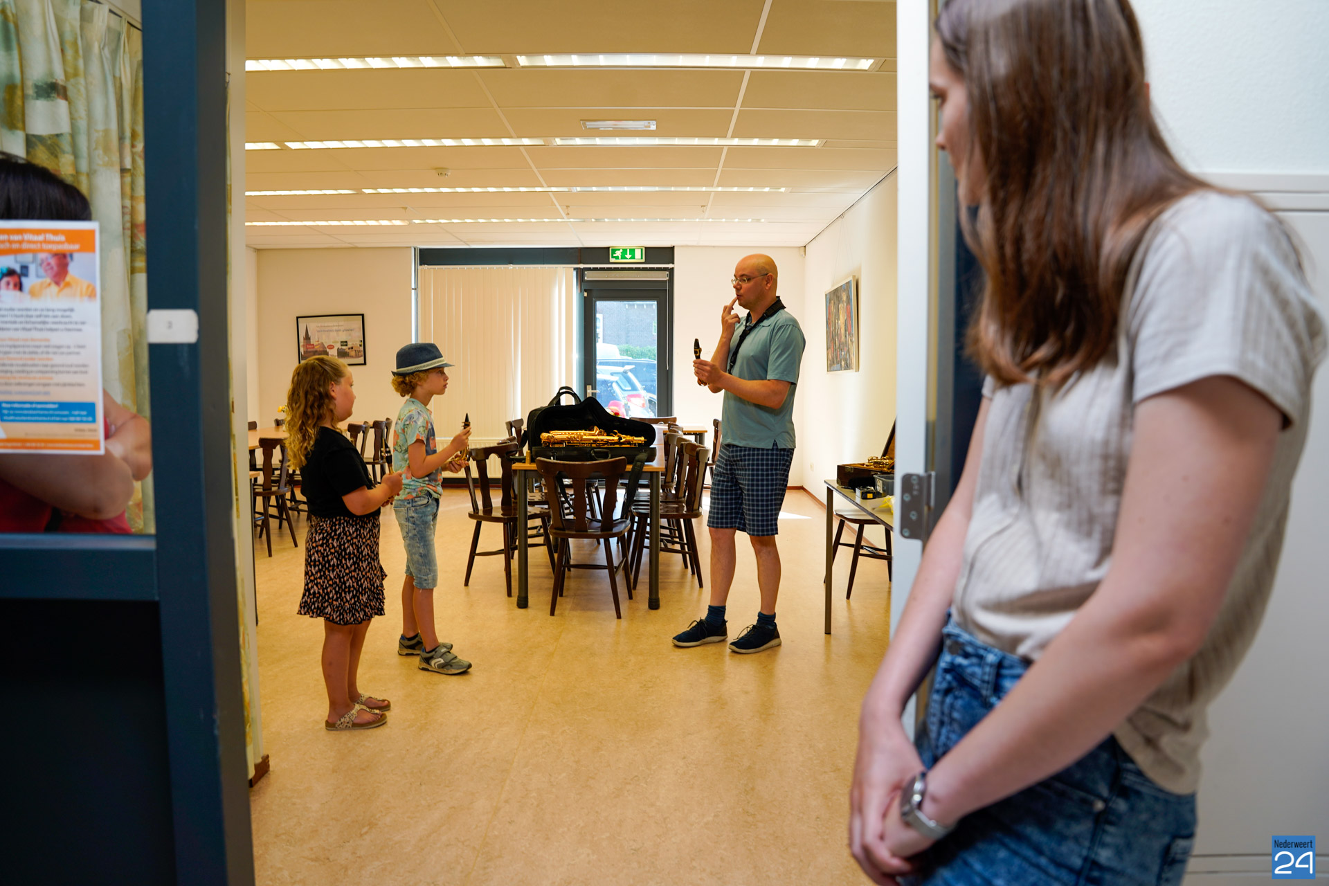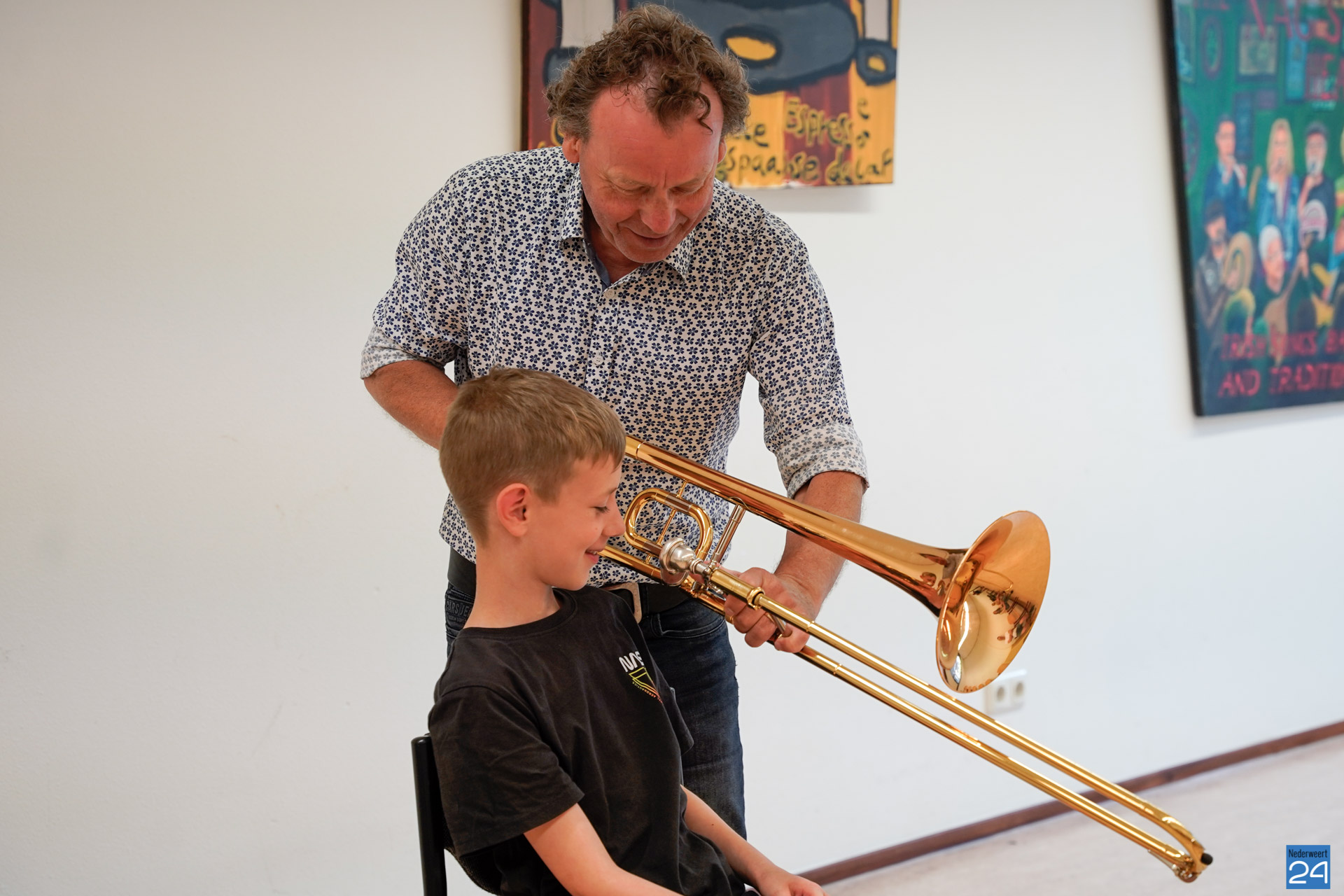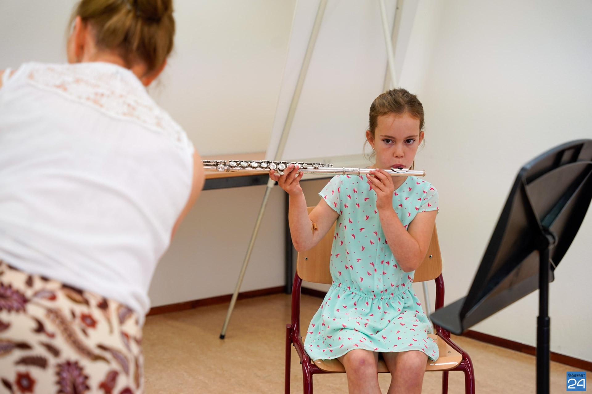 Onder leiding van vakdocenten mochten alle deelnemers drie instrumenten naar keuze uitproberen. Zo konden ze ervaren hoe het is om les te krijgen op klarinet, dwarsfluit, trompet, trombone, saxofoon en slagwerk en ontdekken welk instrument het beste bij hem of haar past. Ook konden de kinderen op blokfluit een proefles Starten met muziek volgen. Het was gezellig druk. Ouders, broertjes en zusjes keken vol aandacht toe.