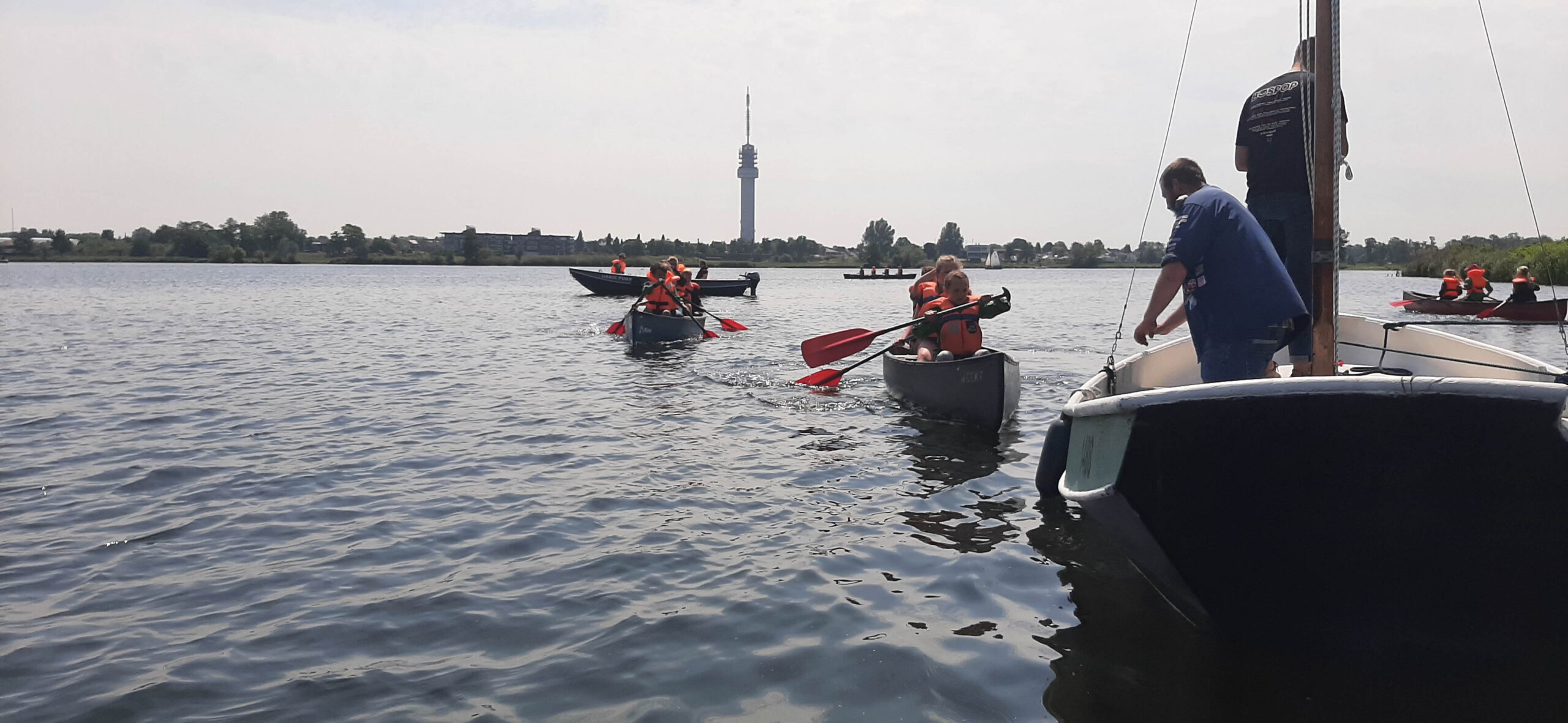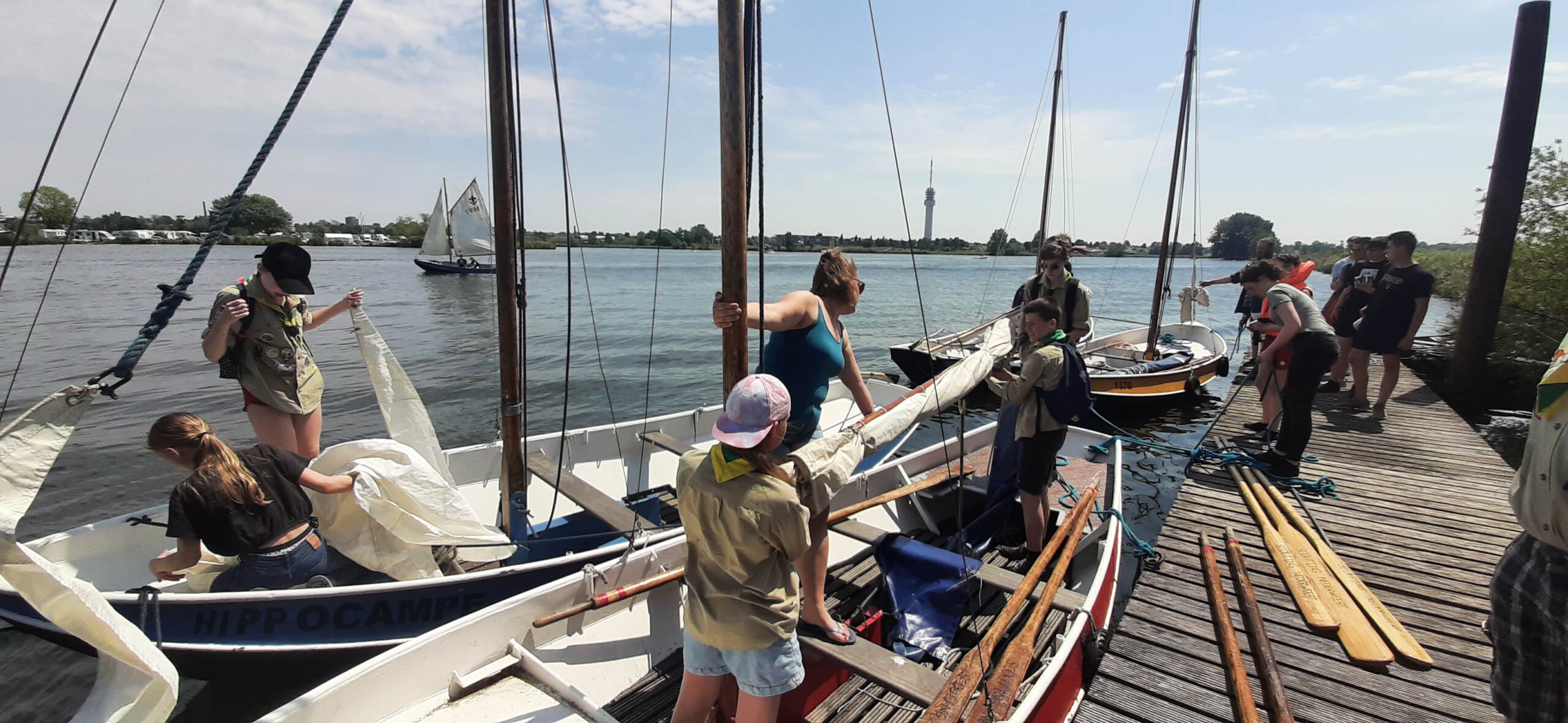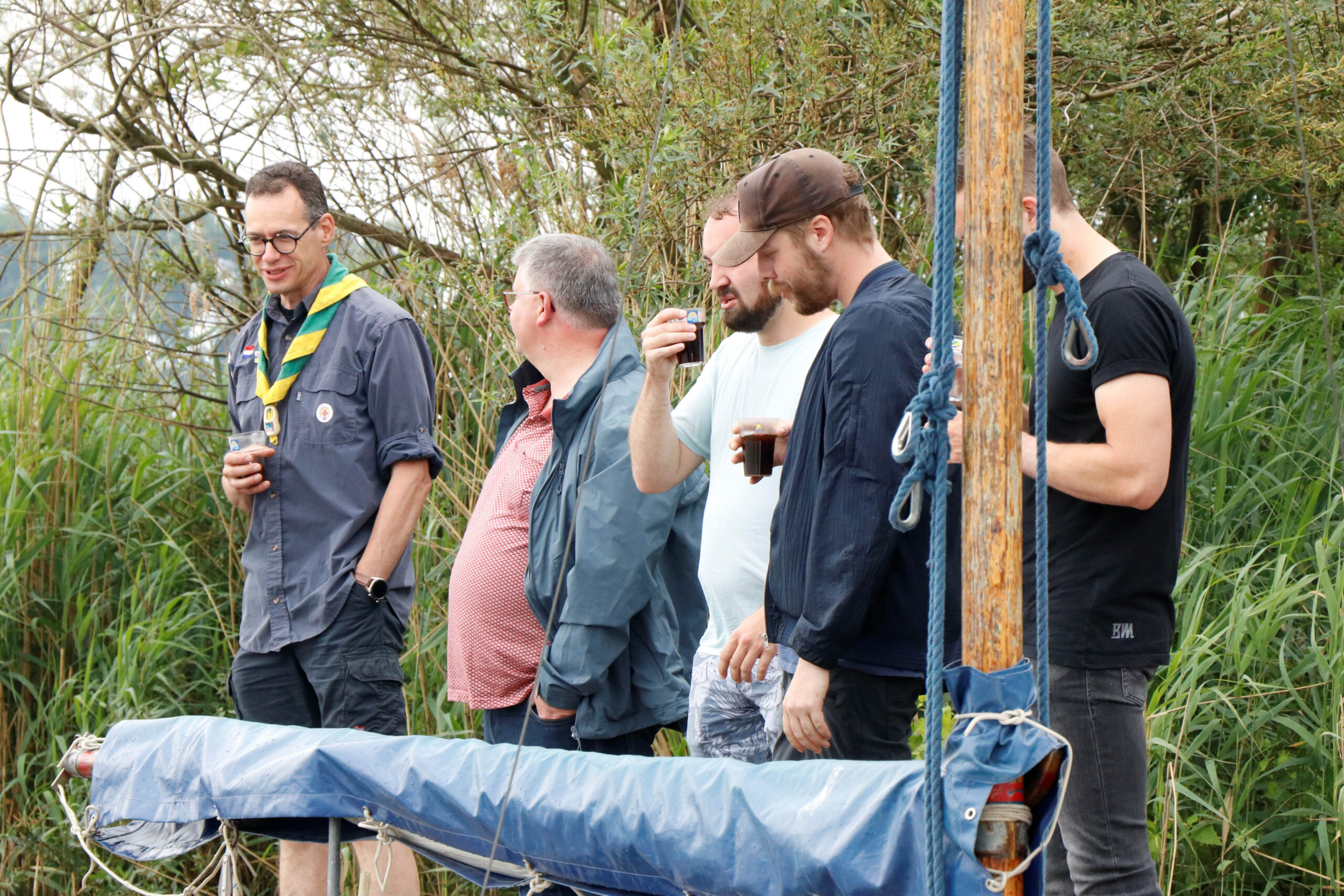 Na een goed verzorgde lunch door twee ouders van de dolfijnen, was het tijd voor de tweede ronde. De scouts, waterscouts, explorers en wilde vaart kozen ervoor om het water op te gaan met de lelievletten. Zwemmen, zeilen en surfen, daar hebben ze zich tijdens een rondje Hatenboer mee vermaakt. De middag vloog voorbij, waarna ook deze leden de badge voor op de Scoutfit kregen. Zaterdag werd afgesloten met warm aangeleverde zelfgemaakte babi pangang en bezoek van de admiraliteit.