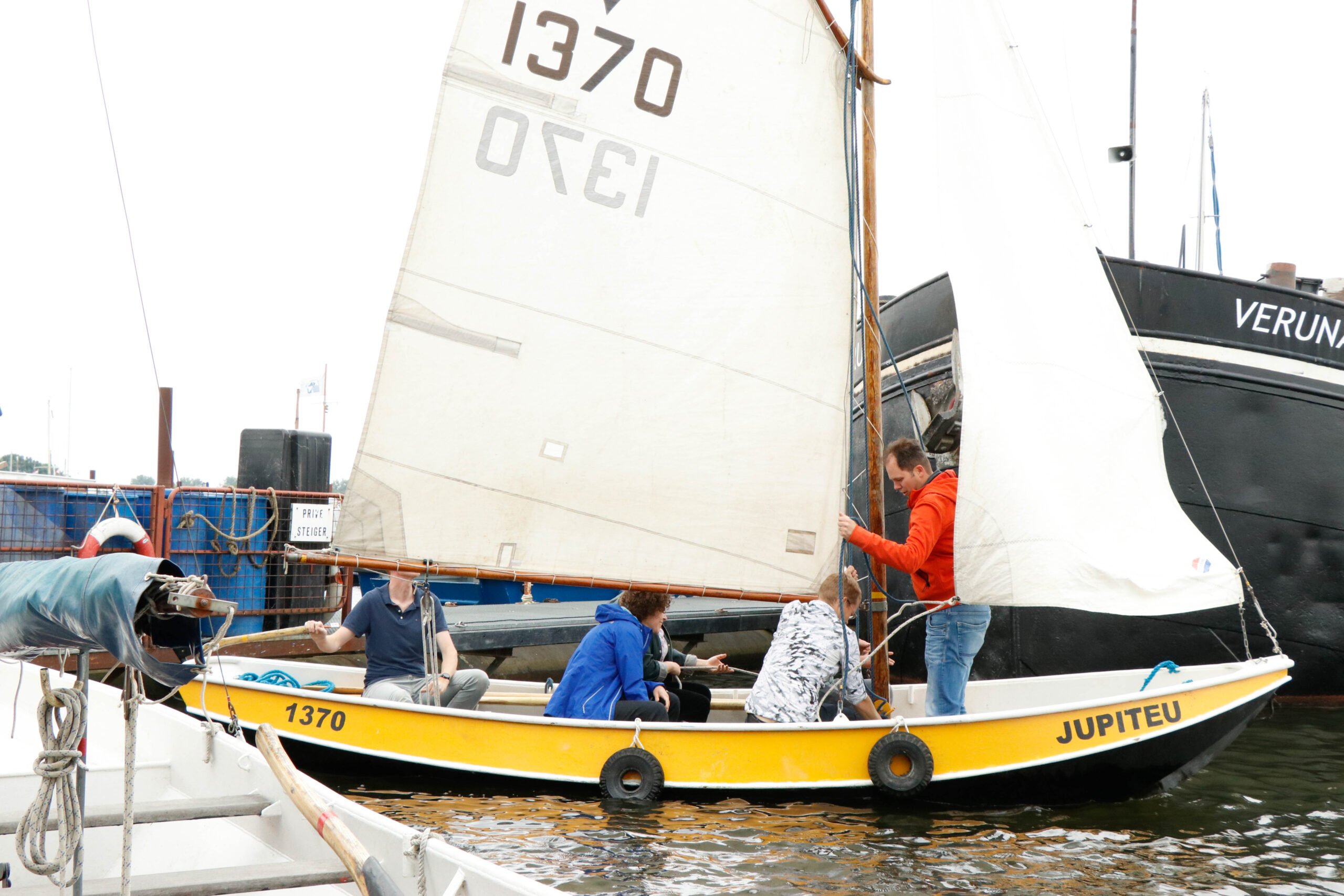Zondag stond in het teken van de reünie, speciaal georganiseerd voor oud leden, leiding en ouders. Vele bekenden gezichten zijn langsgekomen, variërend van het prille begin tot misschien wel lid in de toekomst. Aan de hand van vele foto’s en onder het genot van een kopje koffie en gebak kwamen verschillende herinneringen al gauw op tafel. Anderen durfden het, ondanks de aankomende regenbuien, aan om het water op te gaan. Zij gingen al zeilend voor een rondje Hatenboer, waarbij de regenpakken uiteindelijk goed van pas kwamen.