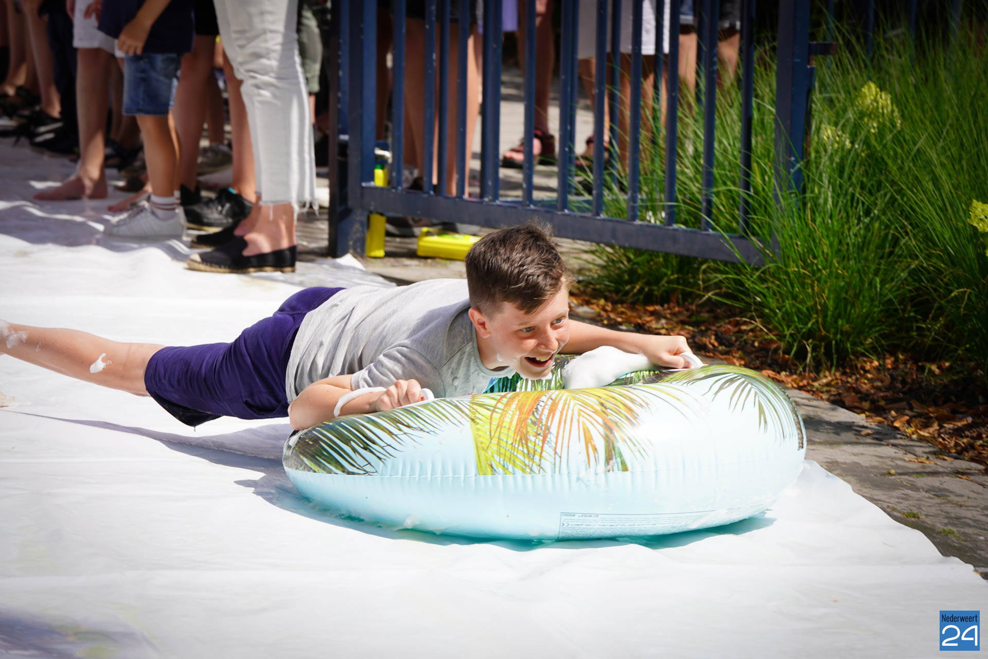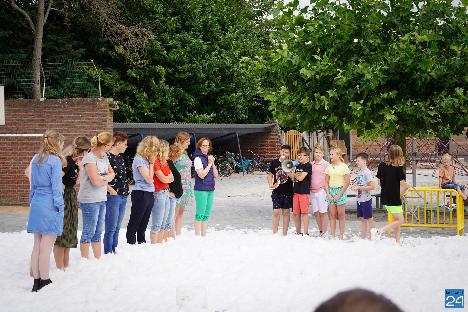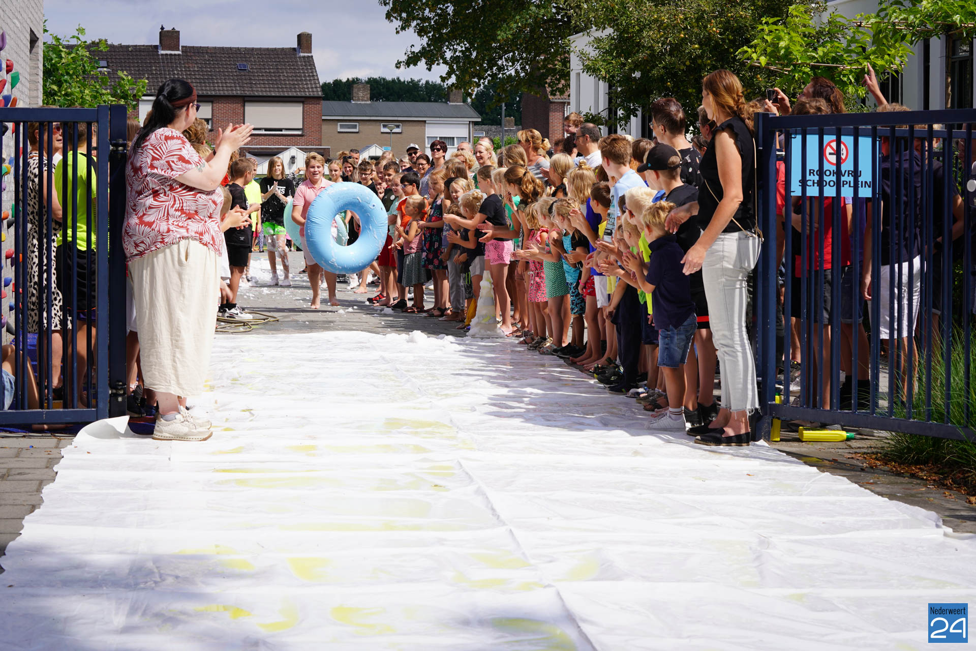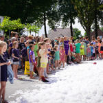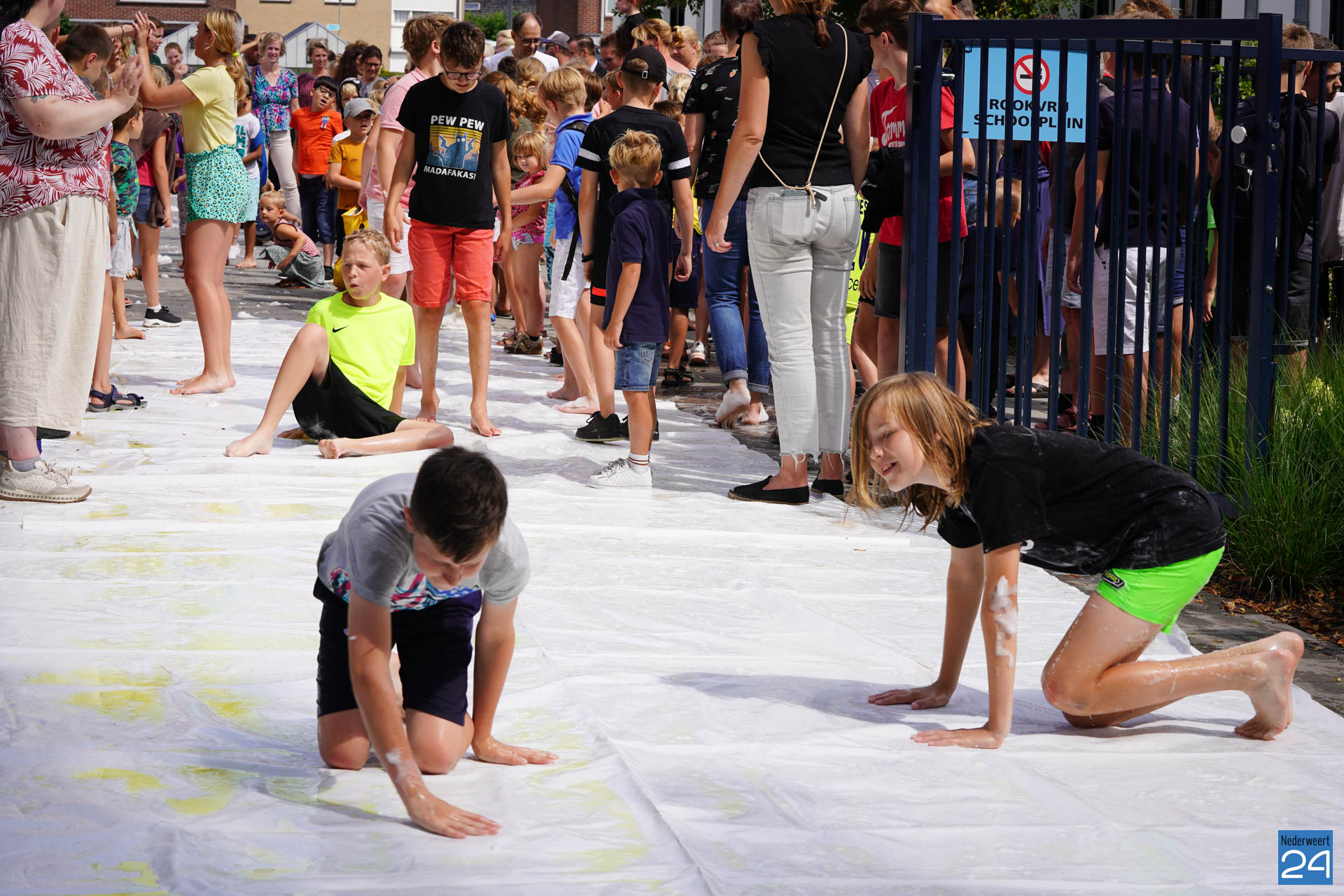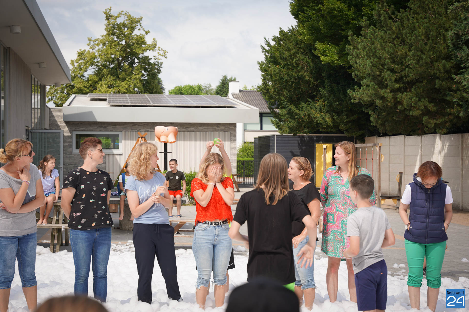 Na het ontbijt werd er afscheid genomen van de juf waarna er nog een spel gespeeld werd. De dag werd afgesloten met een schuimparty en inmiddels, volgens traditie, het uitglijden van groep 8!