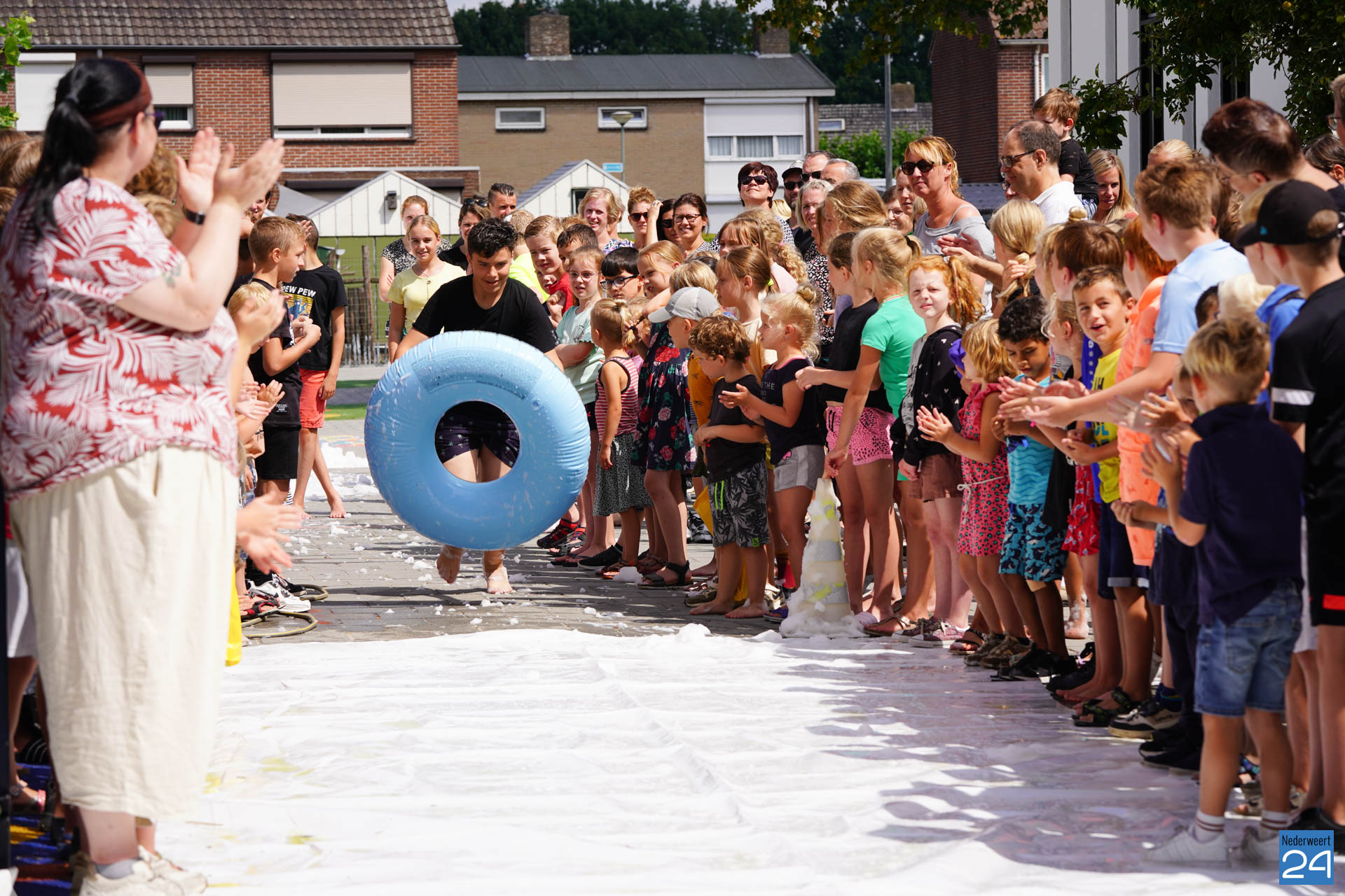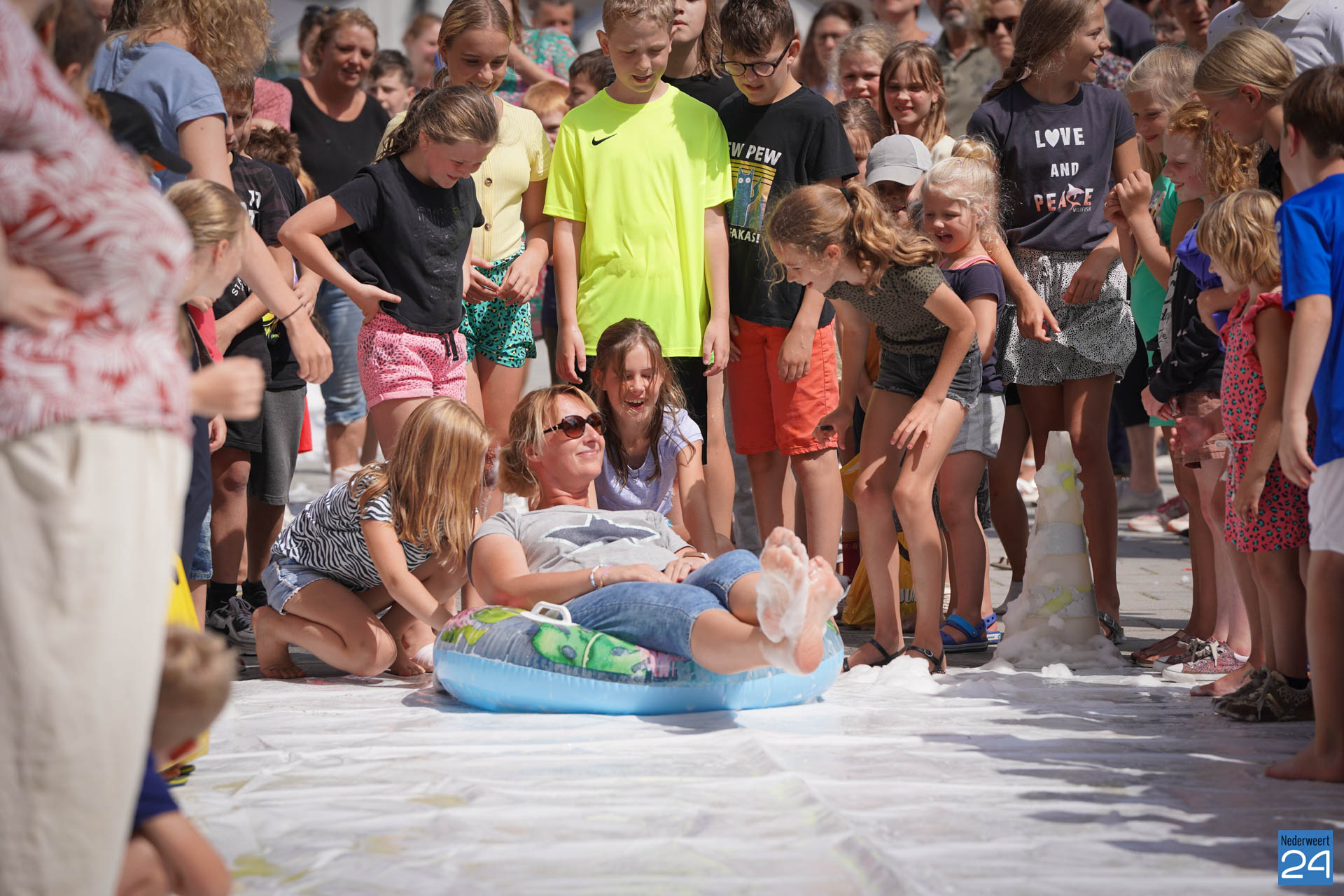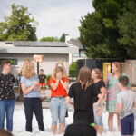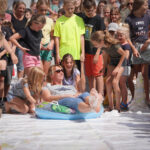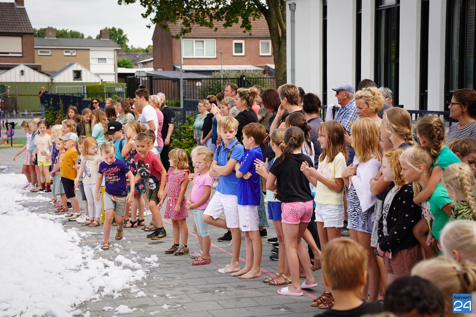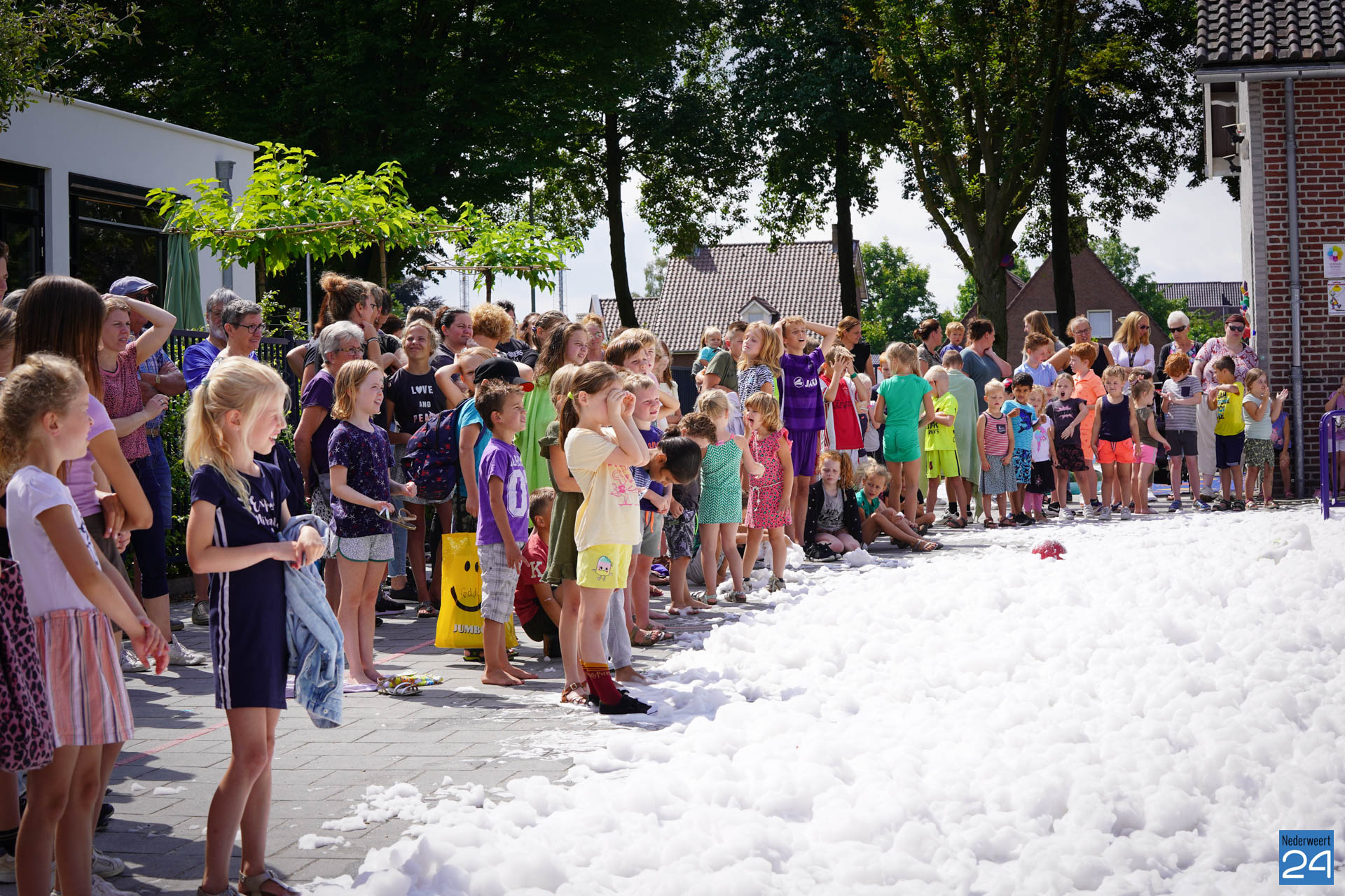 Na het ontbijt werd er afscheid genomen van de juf waarna er nog een spel gespeeld werd. De dag werd afgesloten met een schuimparty en inmiddels, volgens traditie, het uitglijden van groep 8!