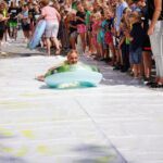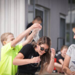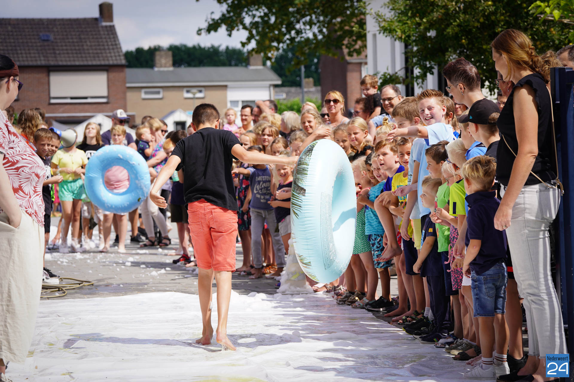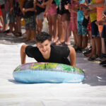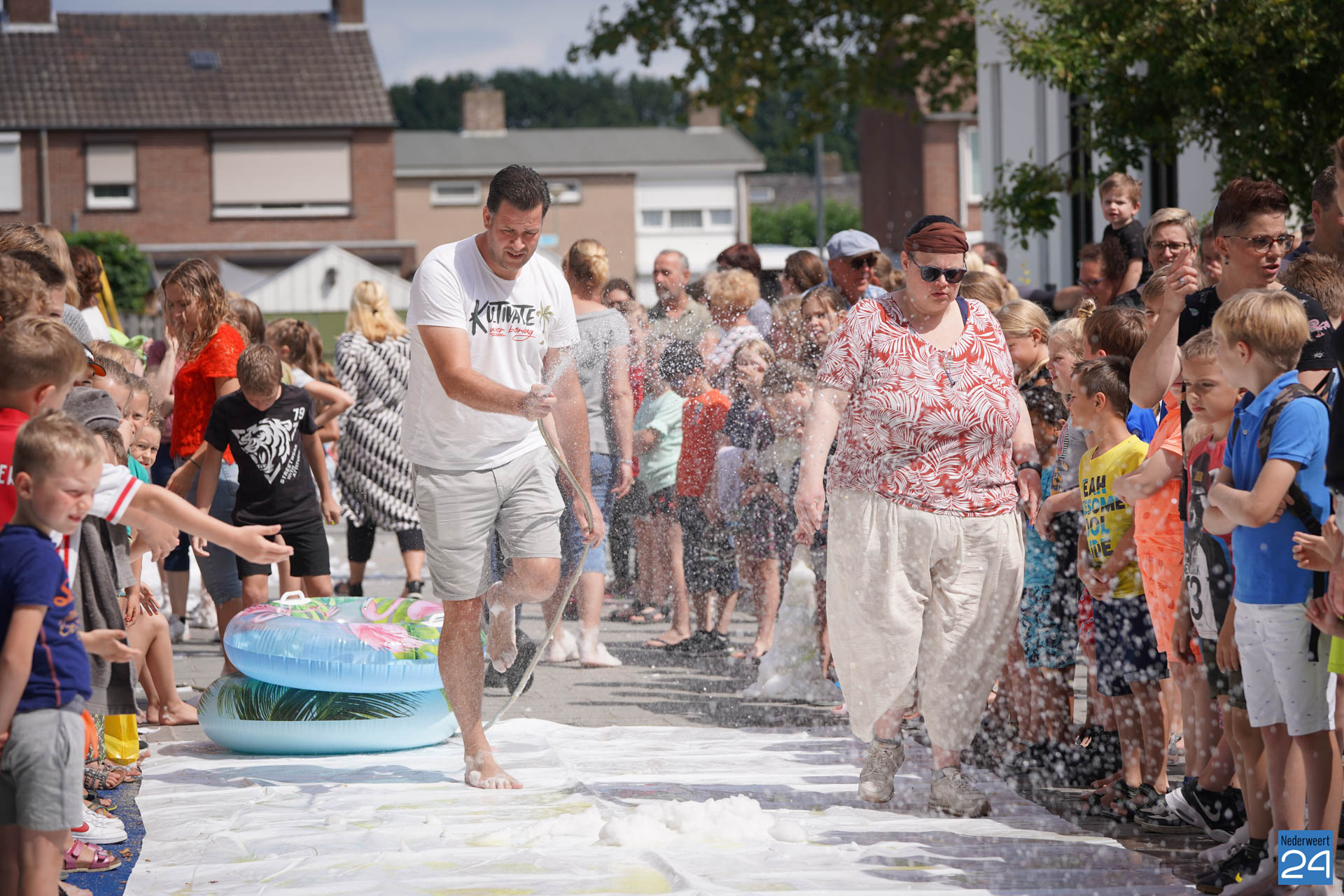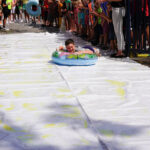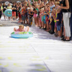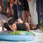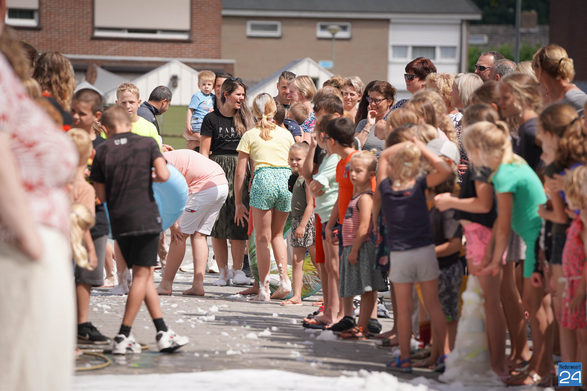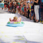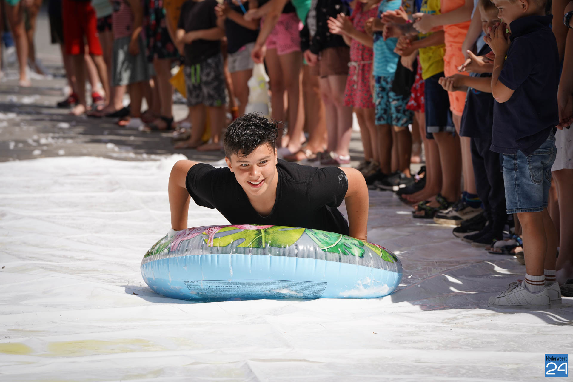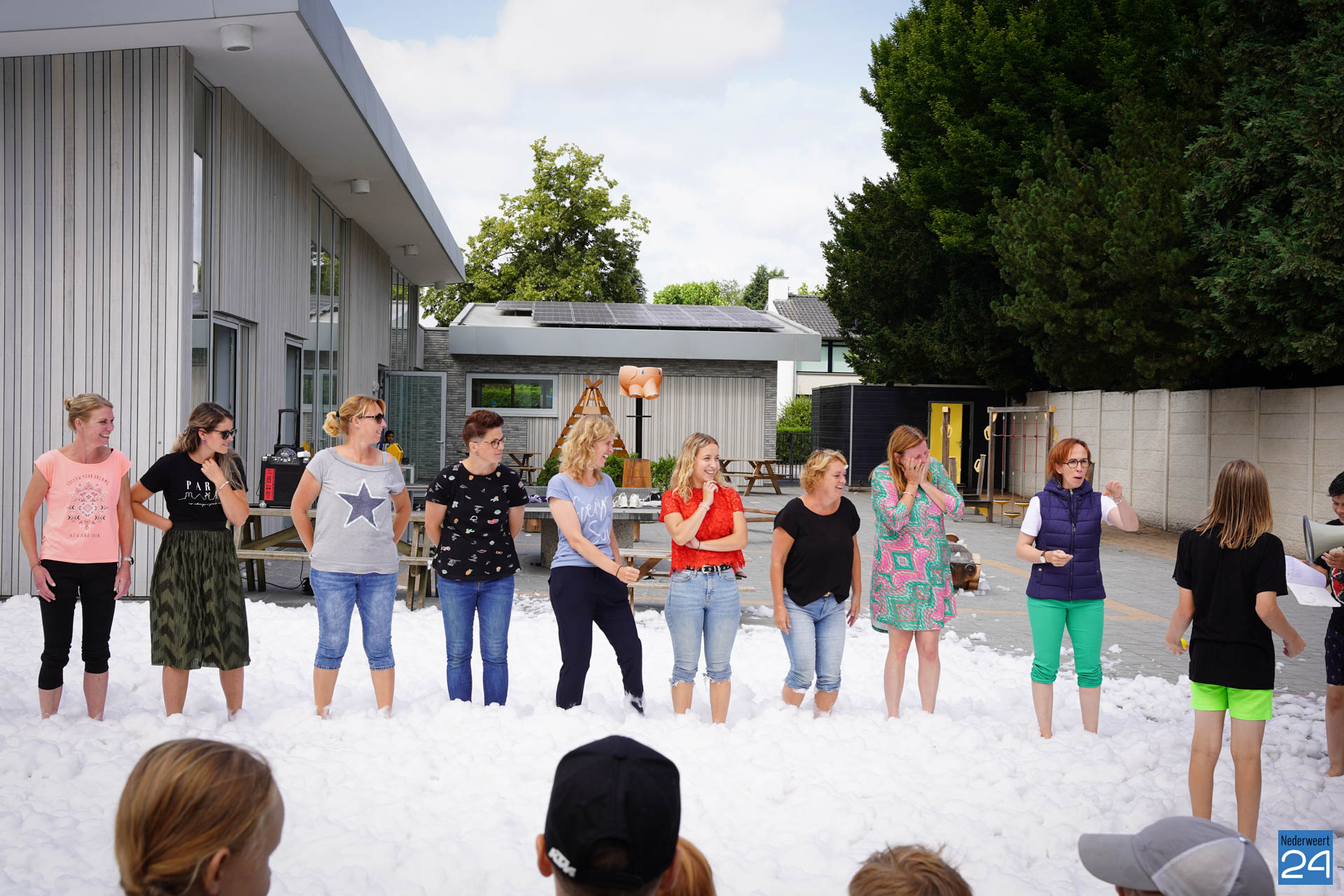 Na het ontbijt werd er afscheid genomen van de juf waarna er nog een spel gespeeld werd. De dag werd afgesloten met een schuimparty en inmiddels, volgens traditie, het uitglijden van groep 8!
