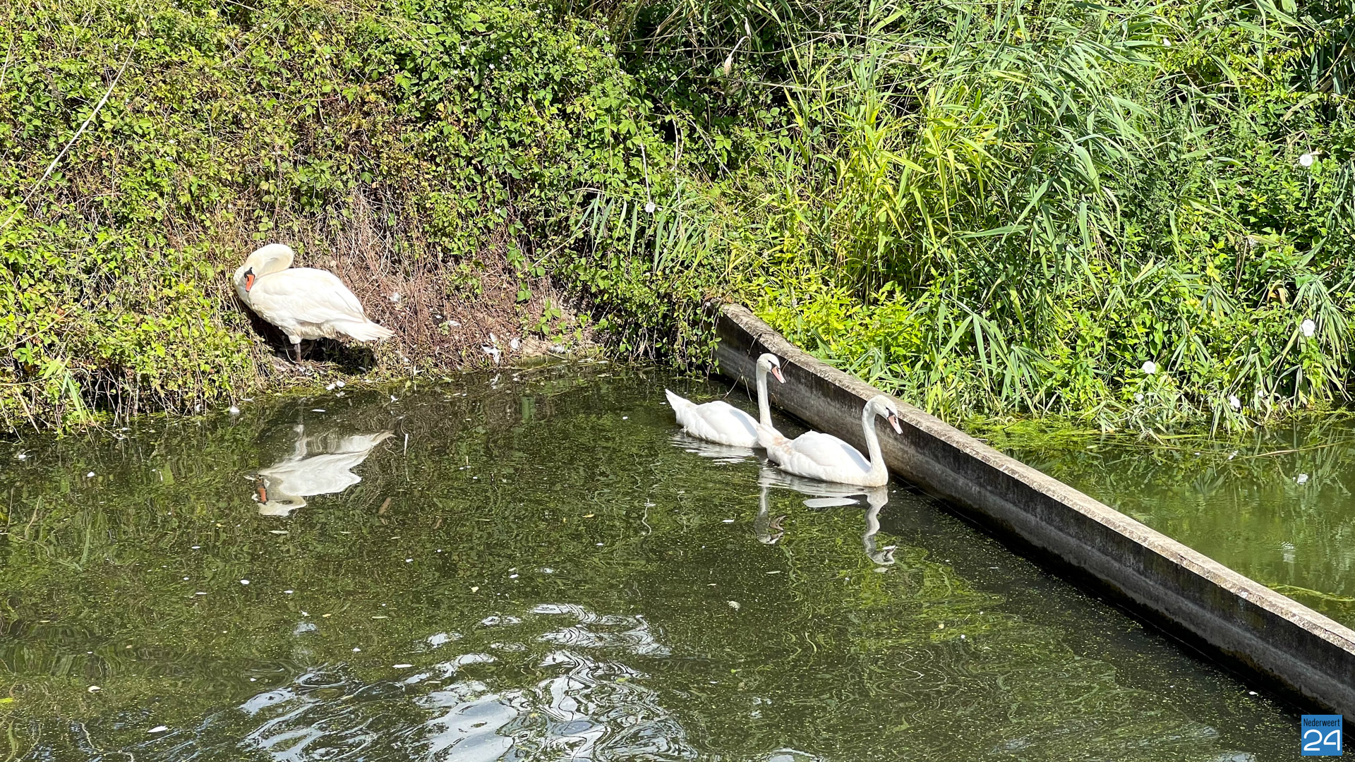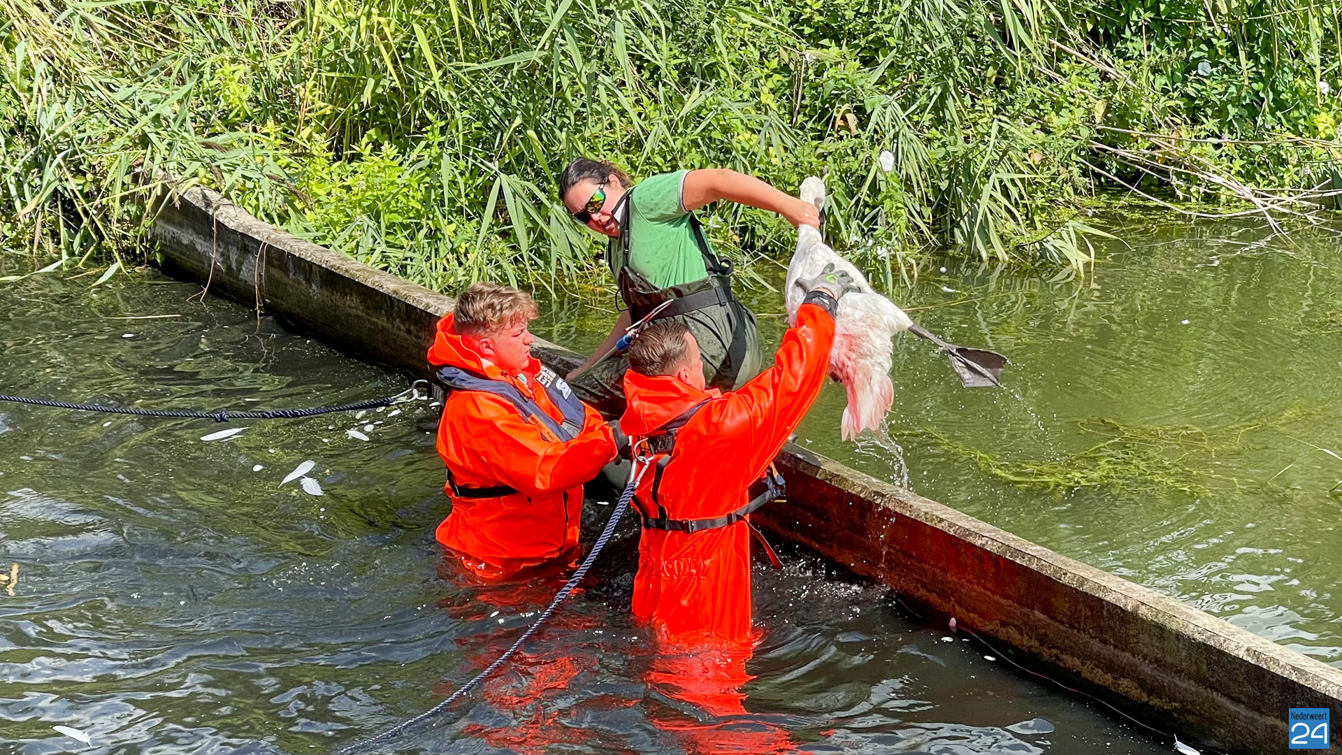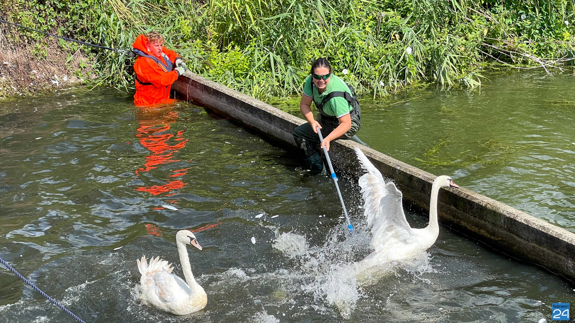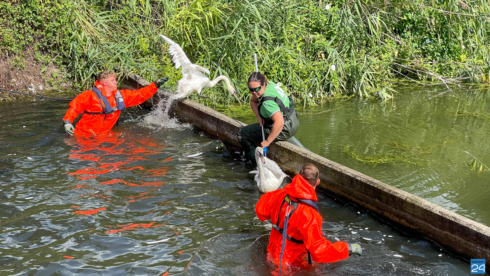 Drie zwanen zijn maandag rond de middag gered uit een, voor hen, moeilijk toegankelijke gedeelte van het voedingskanaal aan Hulsen in Nederweert. Ze zaten daar al vier dagen opgesloten.