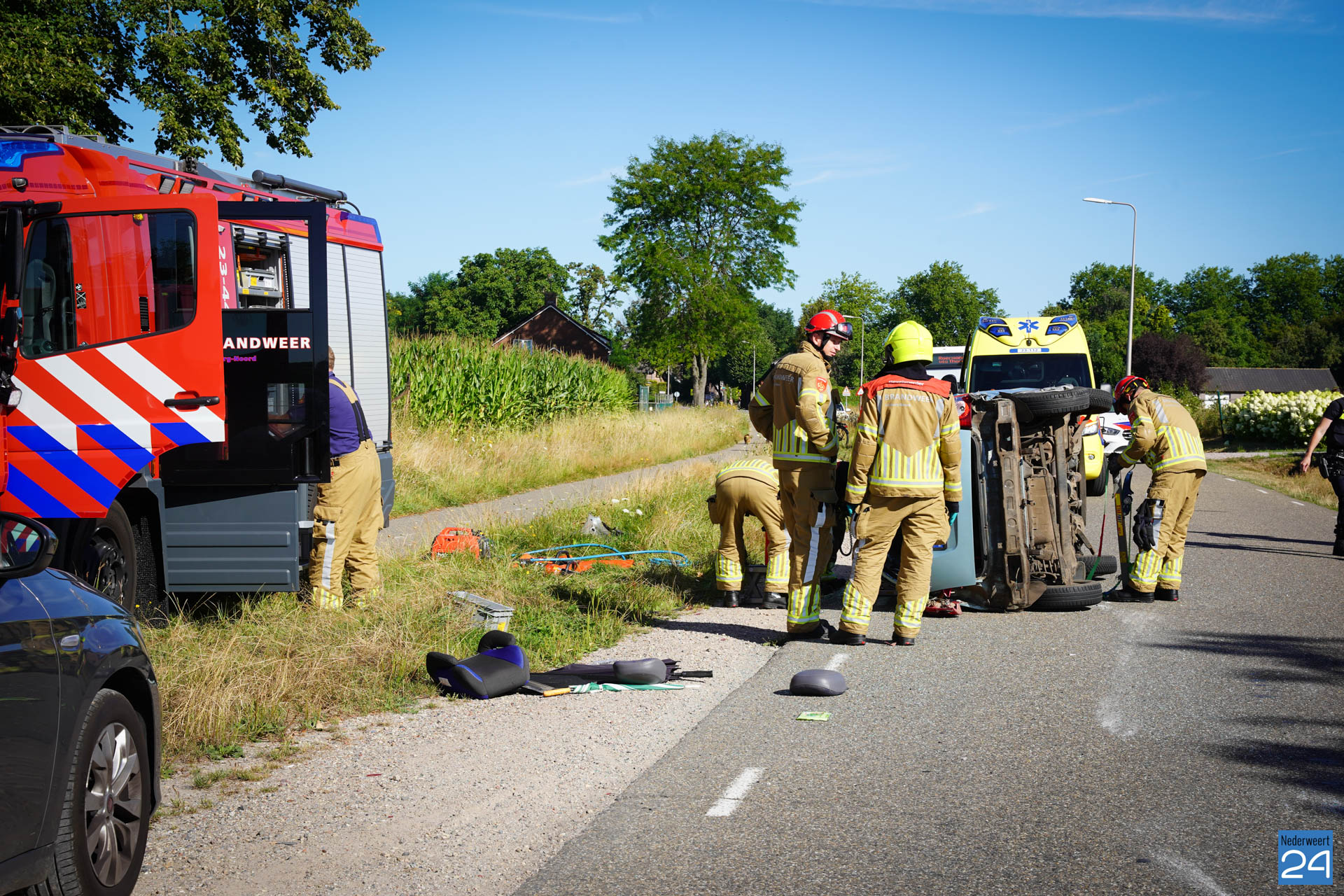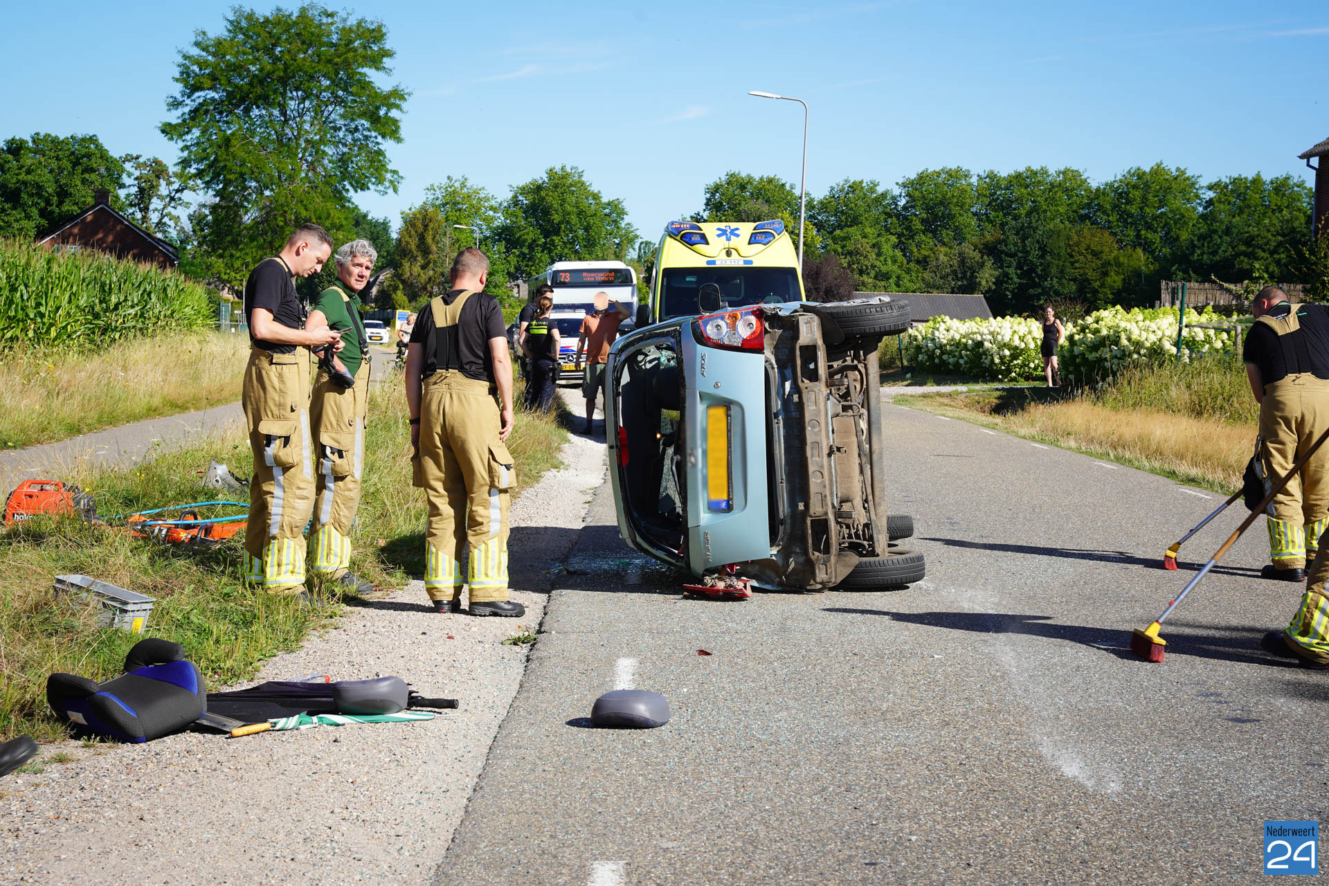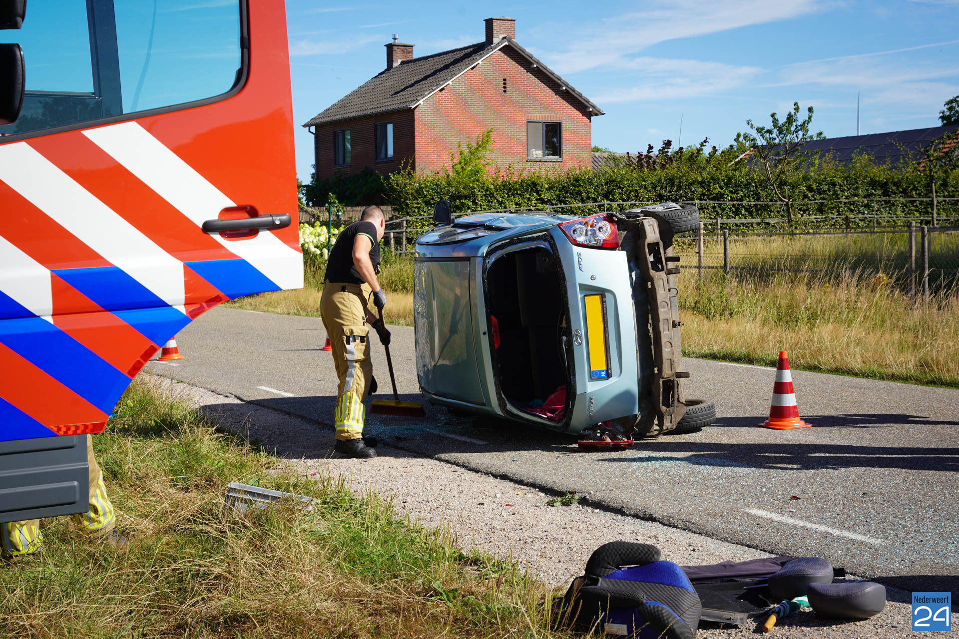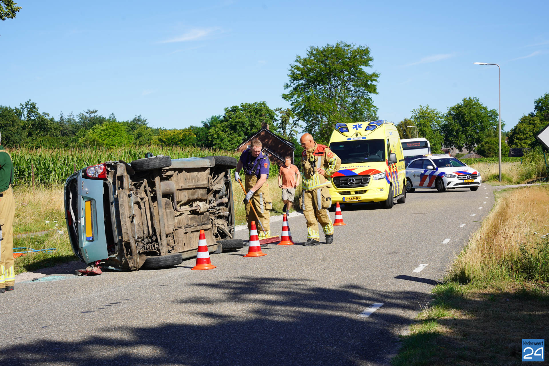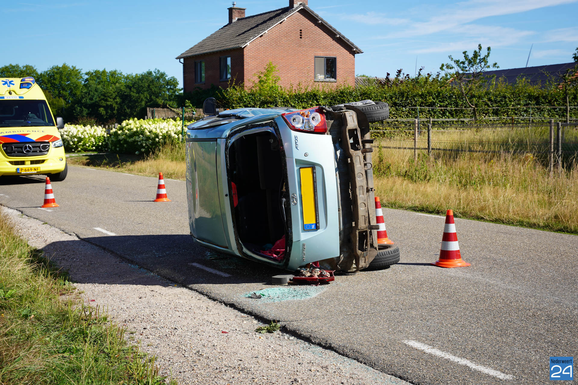 Woensdagmorgen heeft er rond 9.35 een ongeval plaatsgevonden op de Ittervoorterweg. Een auto botste met een bestelbusje. Hierbij belandde de auto op zijn kant op de weg.
