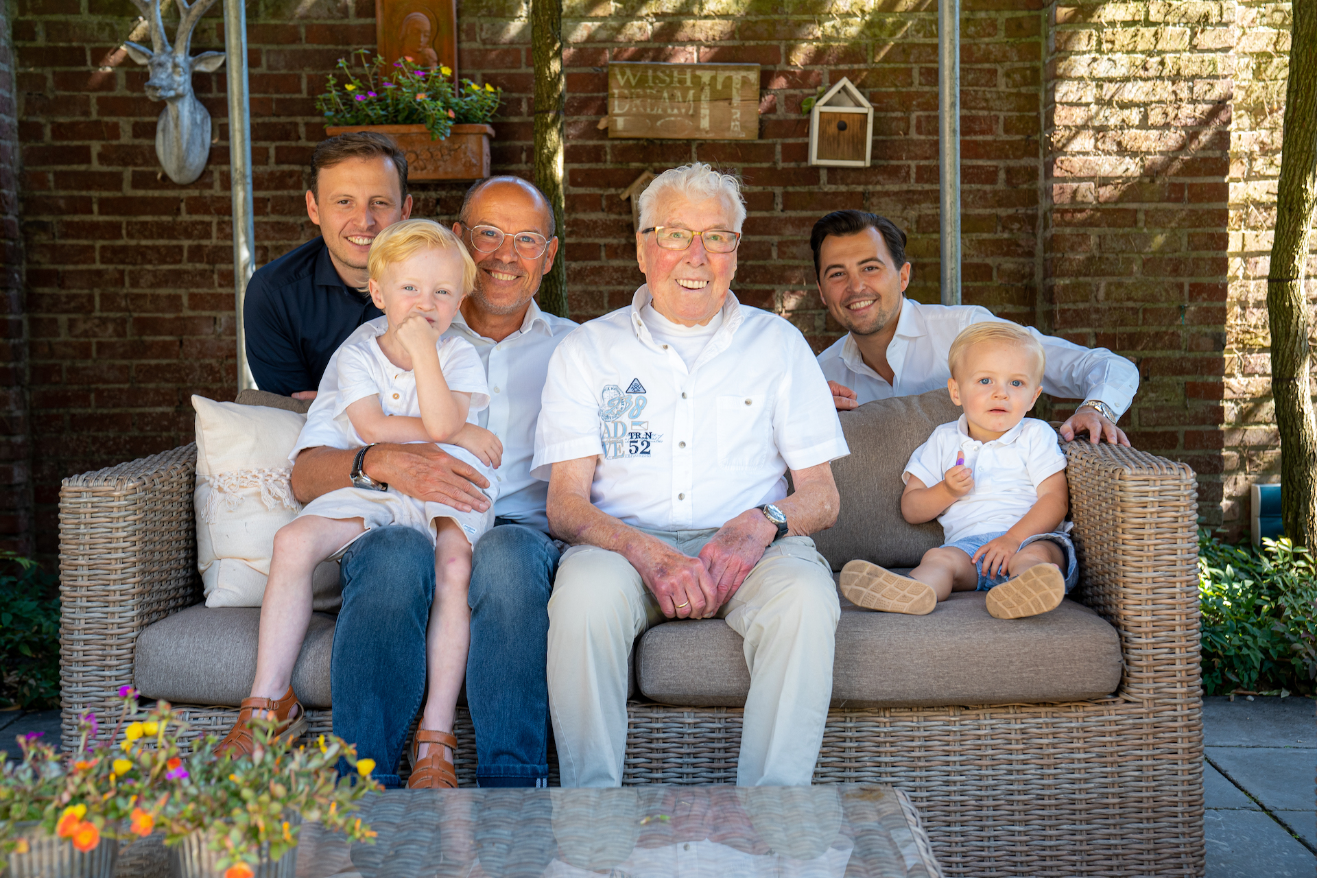 Op de foto staan overgroot opa Ad Geleijns, zijn zoon Dolf Geleijns (60), kleinzonen Bart-Jan (35) en Bram (29) en zijn achterkleinkinderen BenJa (4) en Bradley Geleijns (1).