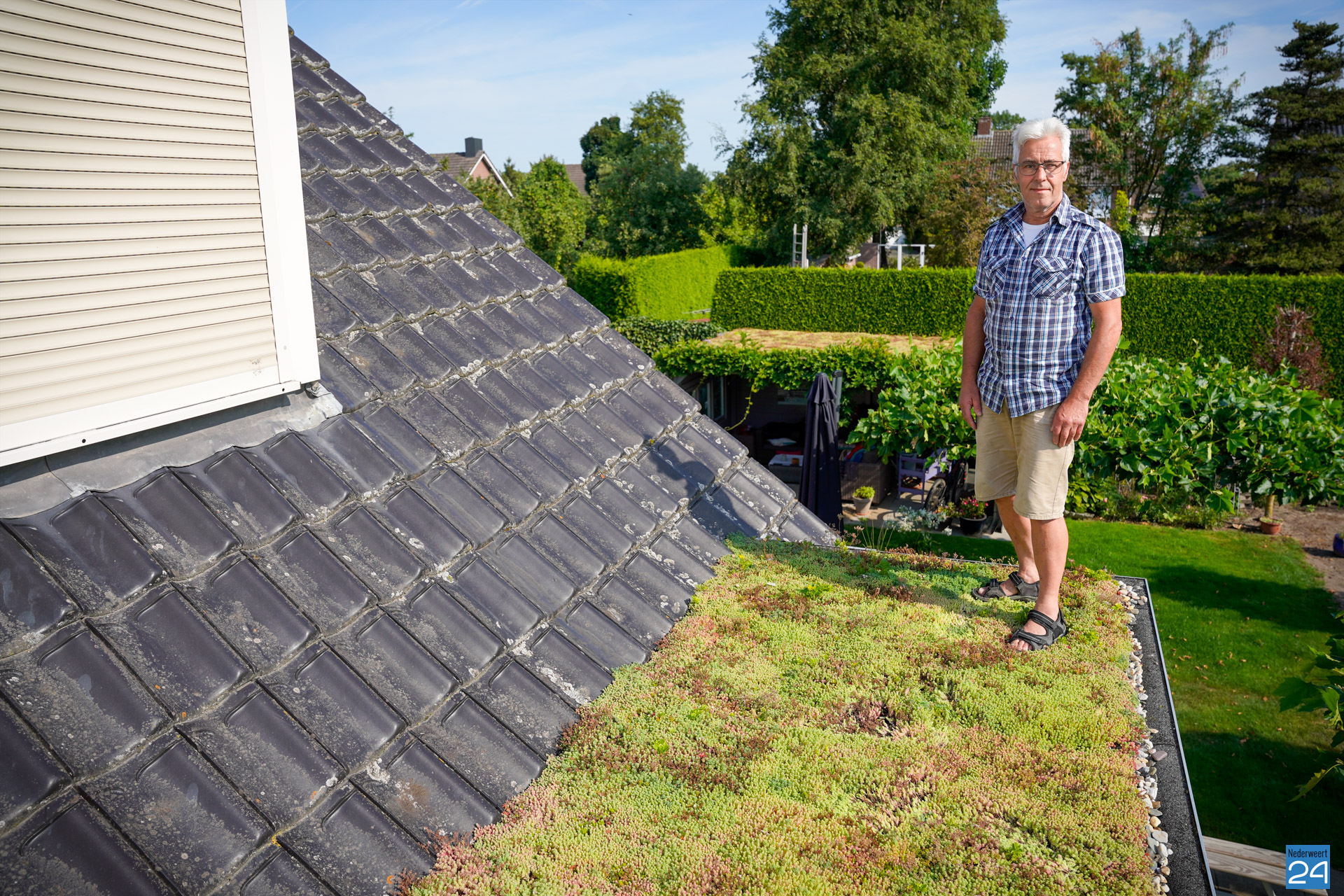 De gemeente heeft jaarlijks een budget beschikbaar van € 10.000,- voor de aanleg van groene daken. Op dit moment is ongeveer de helft van dit budget nog beschikbaar. Iemand die in 2021 gebruikmaakte van de gemeentelijke bijdrage is Toon van Haperen uit Ospel. Hij is bijzonder tevreden met het resultaat. “Het groene dak stond onlangs prachtig in bloei”, aldus Ton. De planten zorgen voor verkoeling van de dakkapel en de erker. Je hoeft niet altijd voor hele daken te gaan. Ook kleine stukken van een dak helpen.