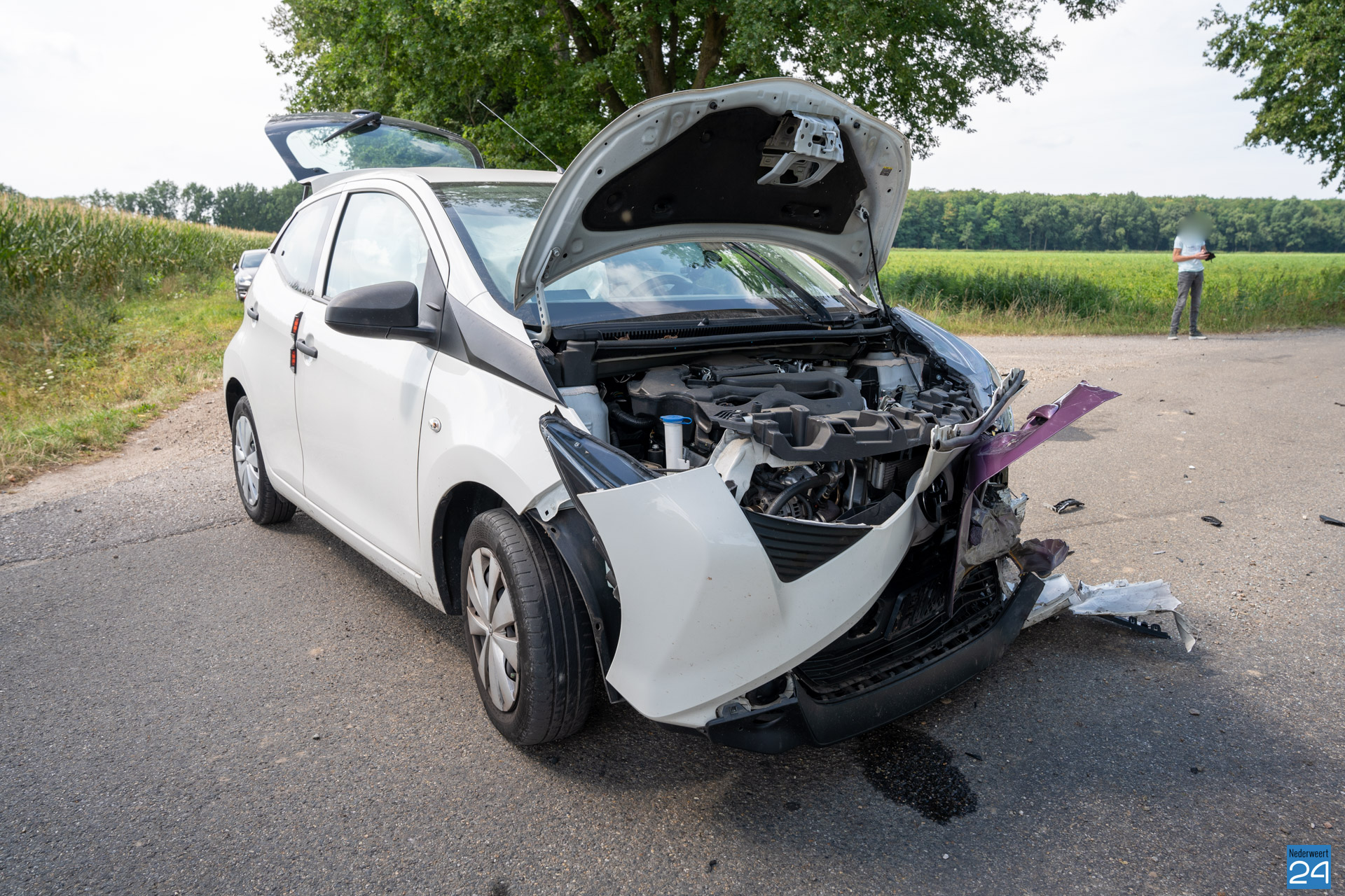 Twee personenauto’s zijn dinsdagmiddag hard met elkaar in botsing gekomen op de kruising Blenkert met de Grote Laak in Roggel. Twee personen raakten daarbij lichtgewond.