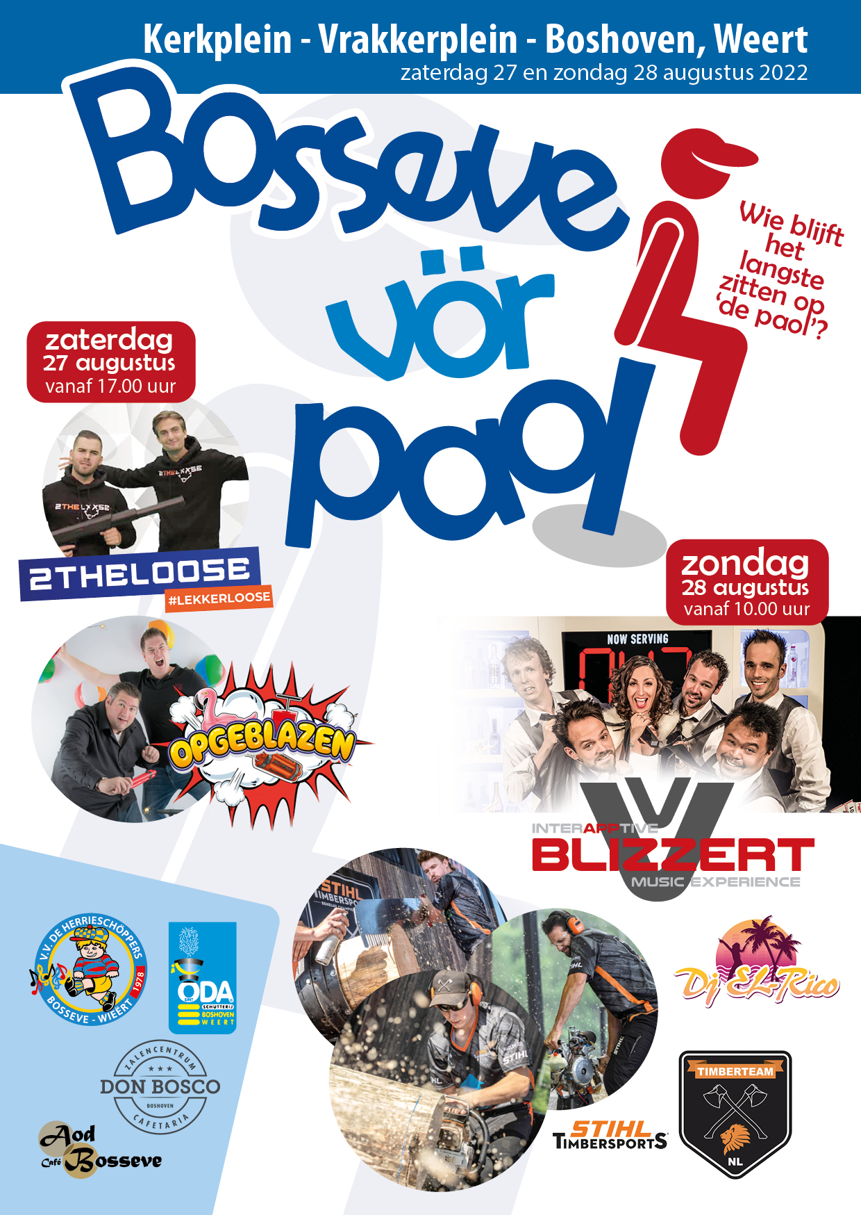 Op 27 en 28 augustus a.s. vindt de allereerste editie plaats van Bosseve vör Paol aan het Vrakkerplein in Boshoven, een initiatief van VV De Herrieschöppers en schutterij Sint Oda.