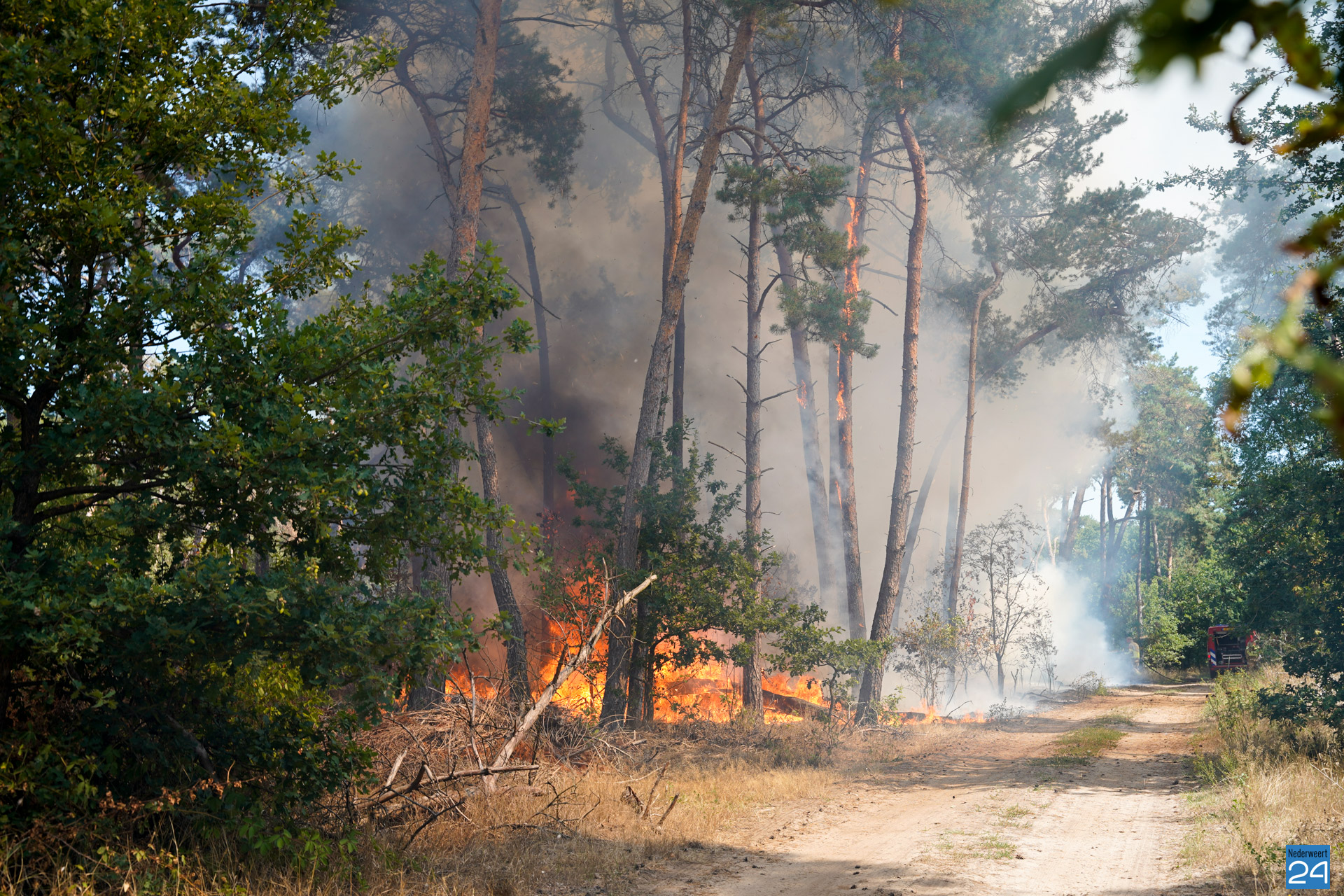 De brandweer is met verschillende blusvoertuigen en waterwagens uit de regio ter plaatse om het vuur te bestrijden. De rook was vanaf Nederweert al goed zichtbaar. De wind zorgde er voor dat de brand zich snel kon uitbreiden. Ook klom het vuur al snel de bomen in.