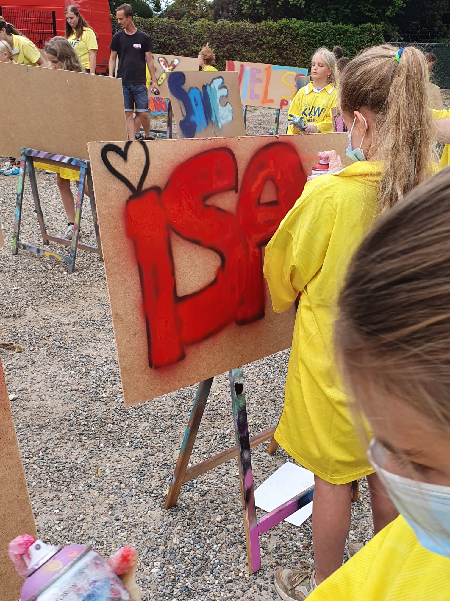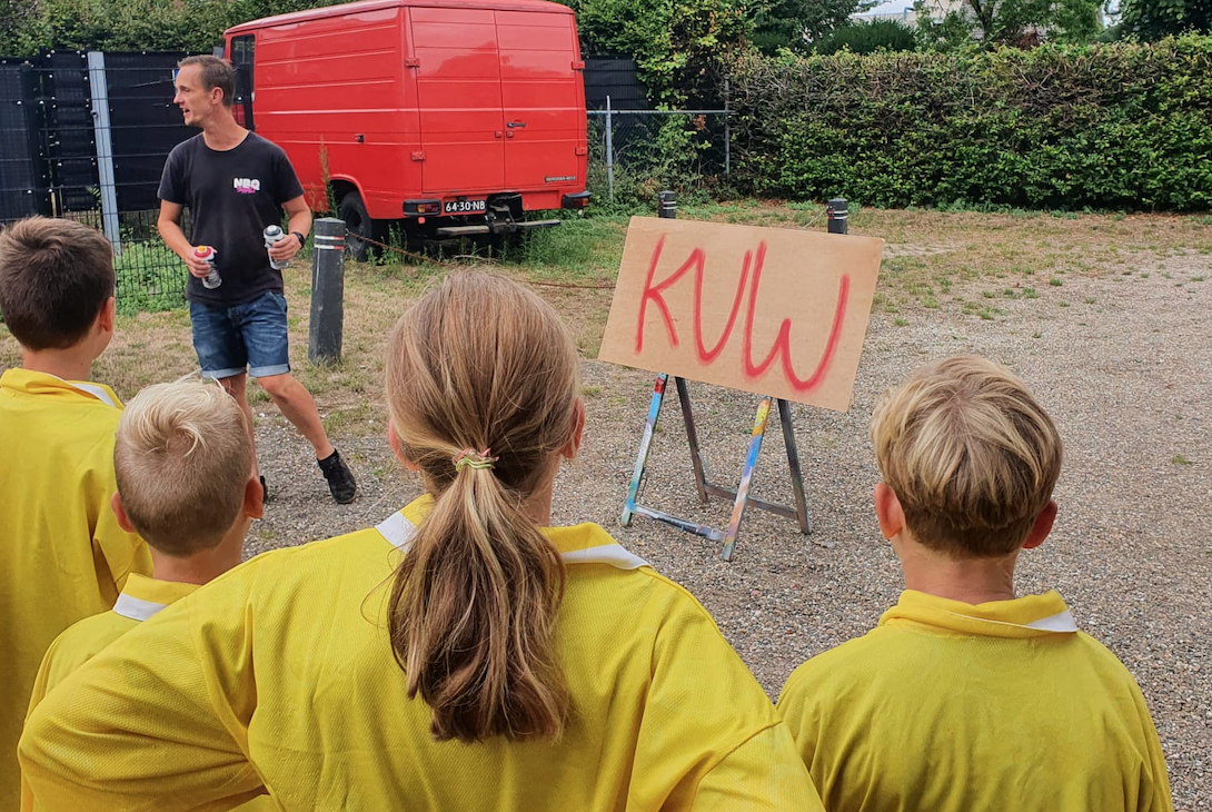 Al de hele week hebben de kinderen van KVW kunnen genieten van allerlei activiteiten. Zo is er al met lego gebouwd en op springkussens gespeeld. Vandaag stond de dag in het teken van graffiti. De kinderen konden tijdens het volgen van een workshop hun eigen naam in graffiti spuiten. Zo hebben ze een mooi kunstwerk om te bewaren als aandenken aan de KVW week van 2022.