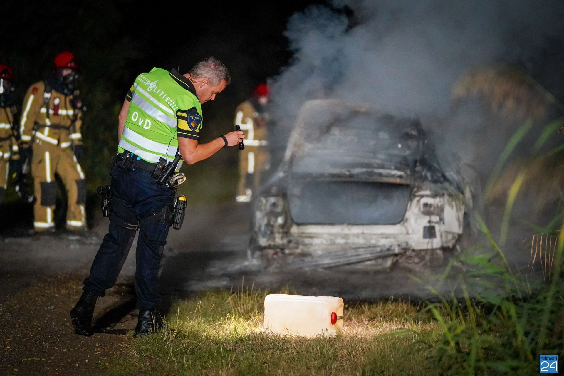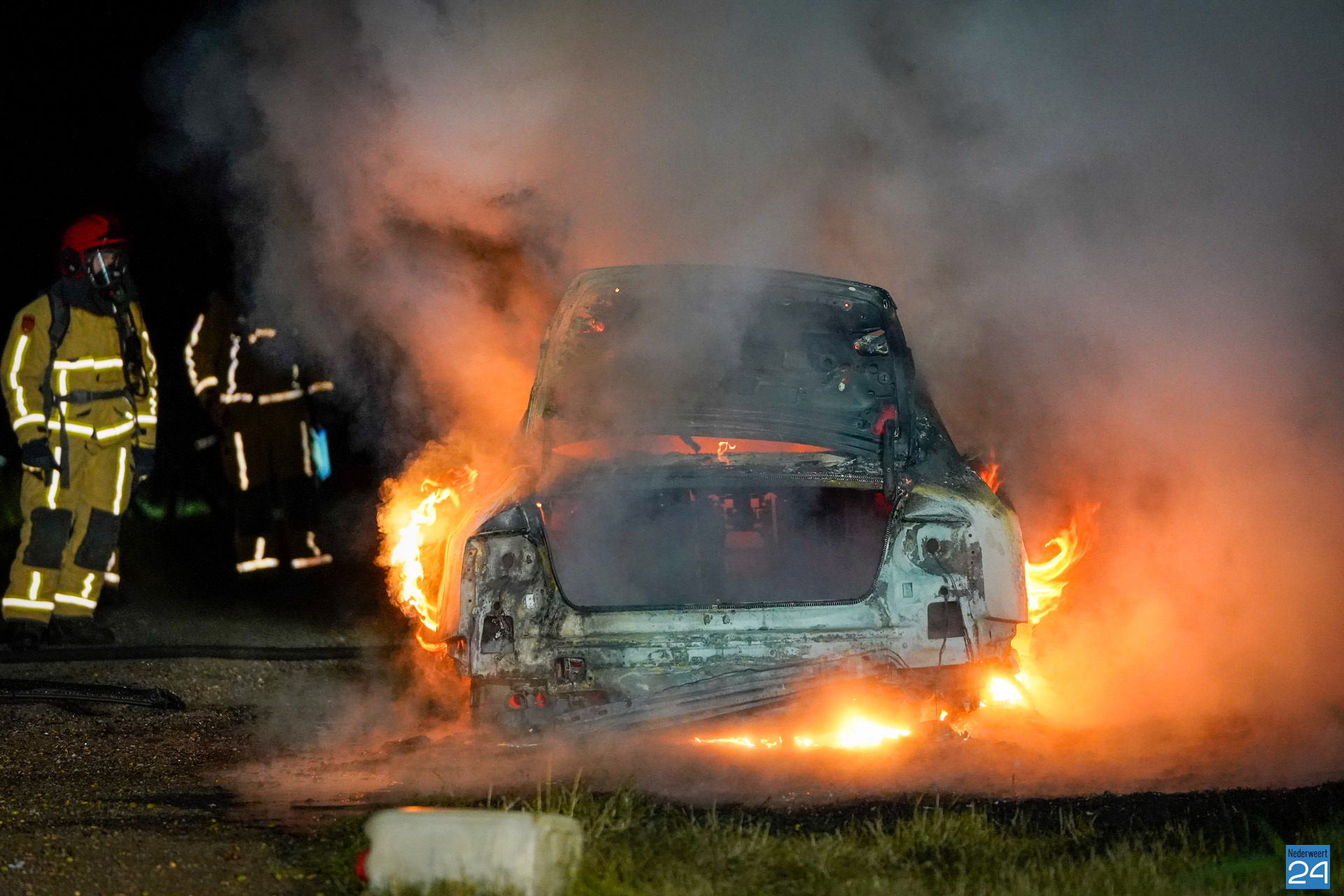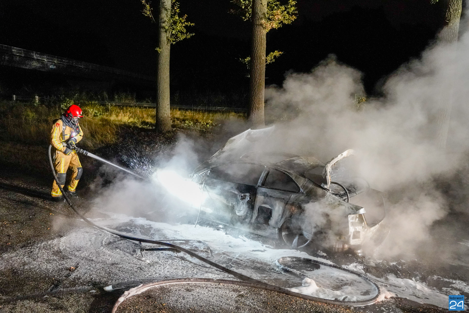 Een auto is in de vroege maandagmorgen volledig uitgebrand naast de Kanaaldijk Zuid N266 in Someren-Eind.