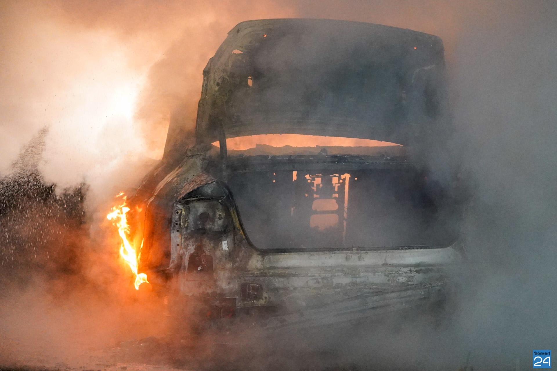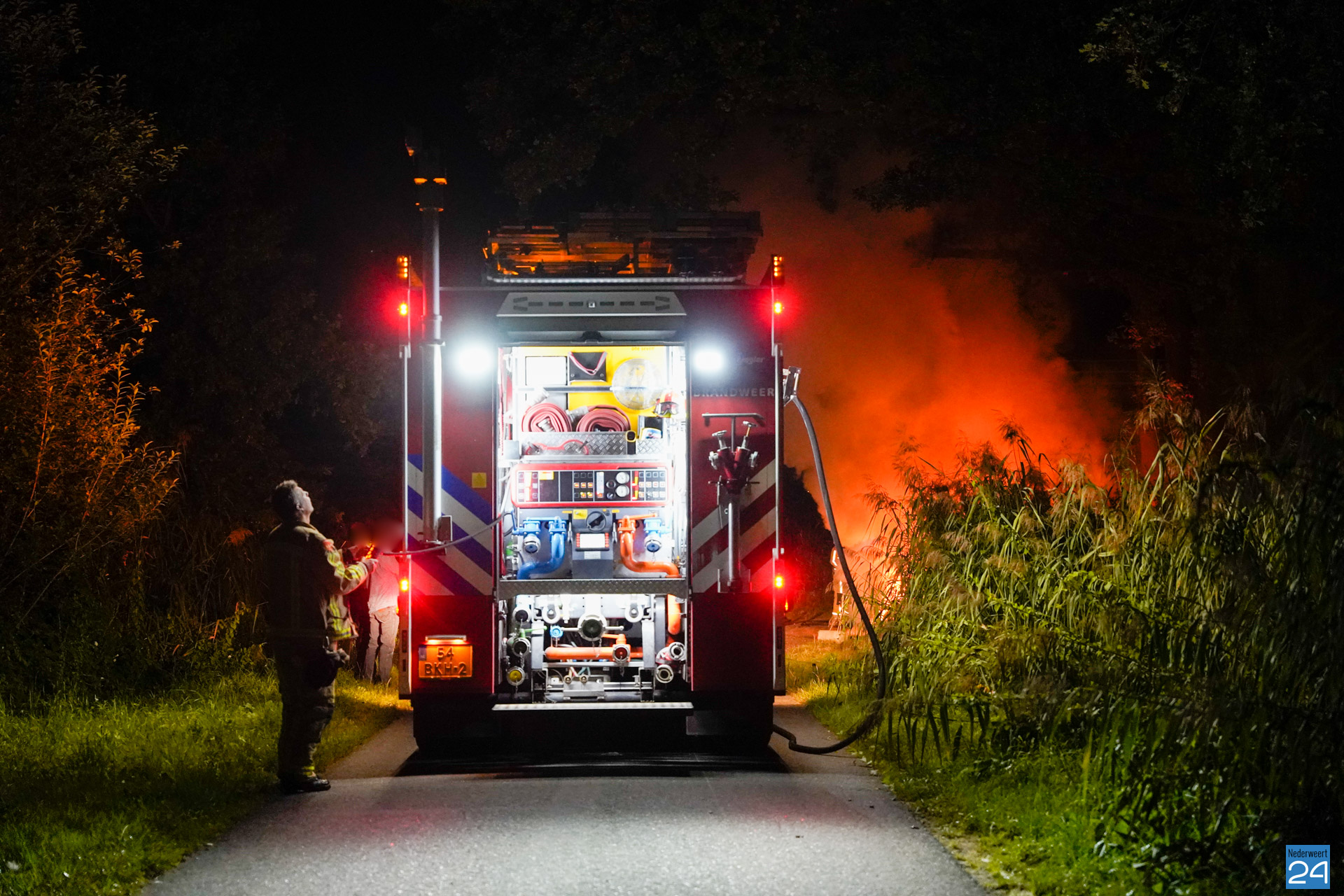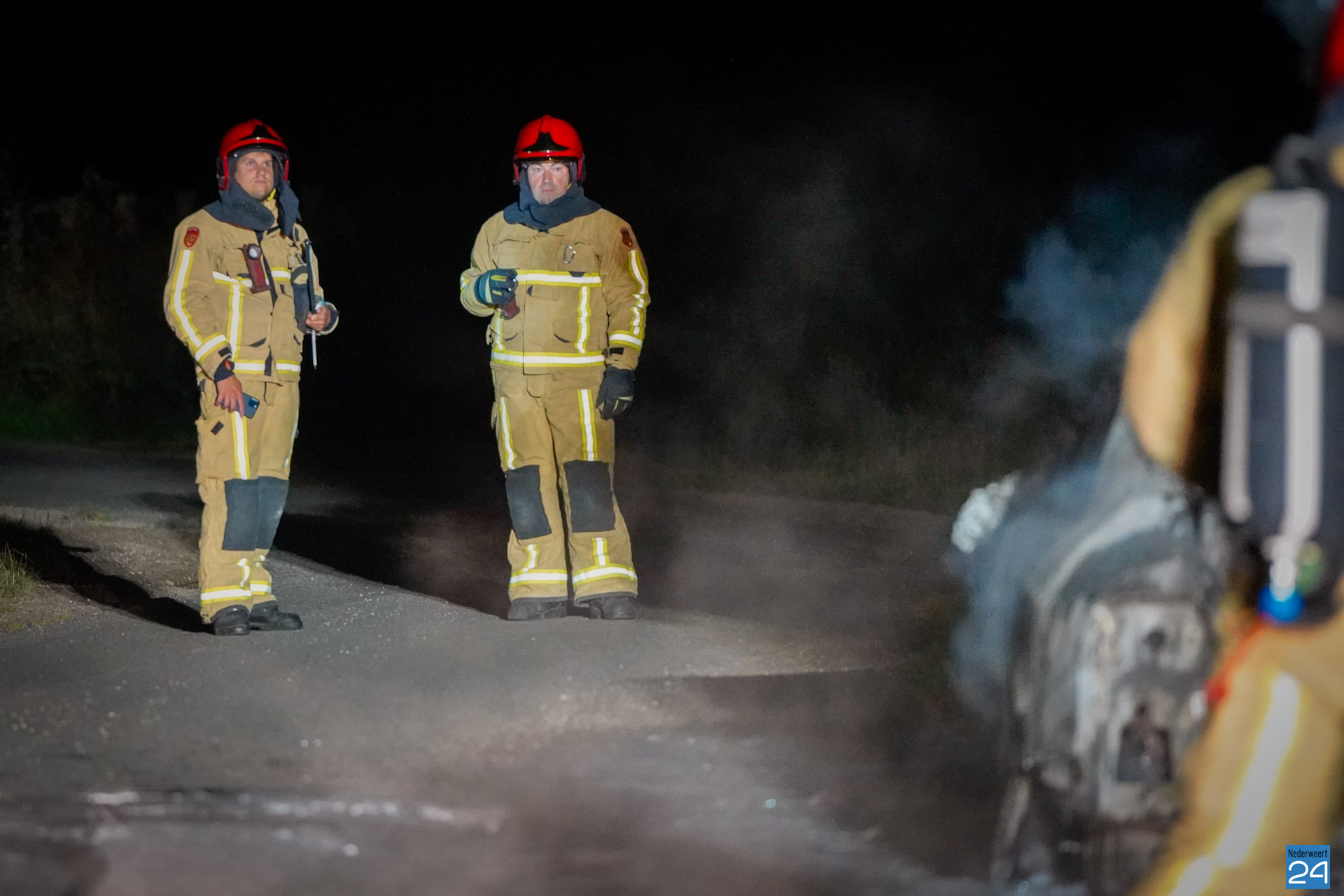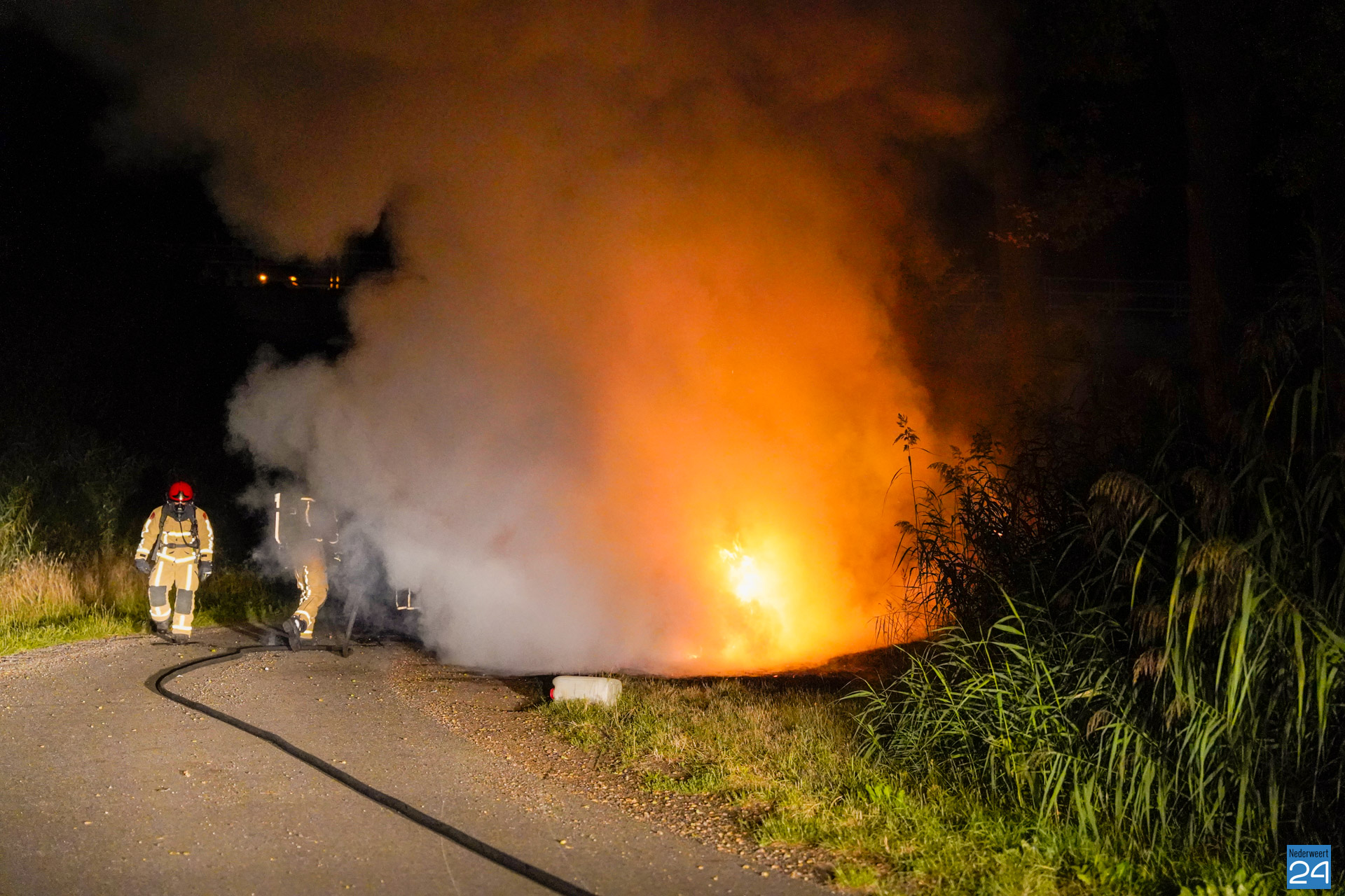 Een auto is in de vroege maandagmorgen volledig uitgebrand naast de Kanaaldijk Zuid N266 in Someren-Eind.