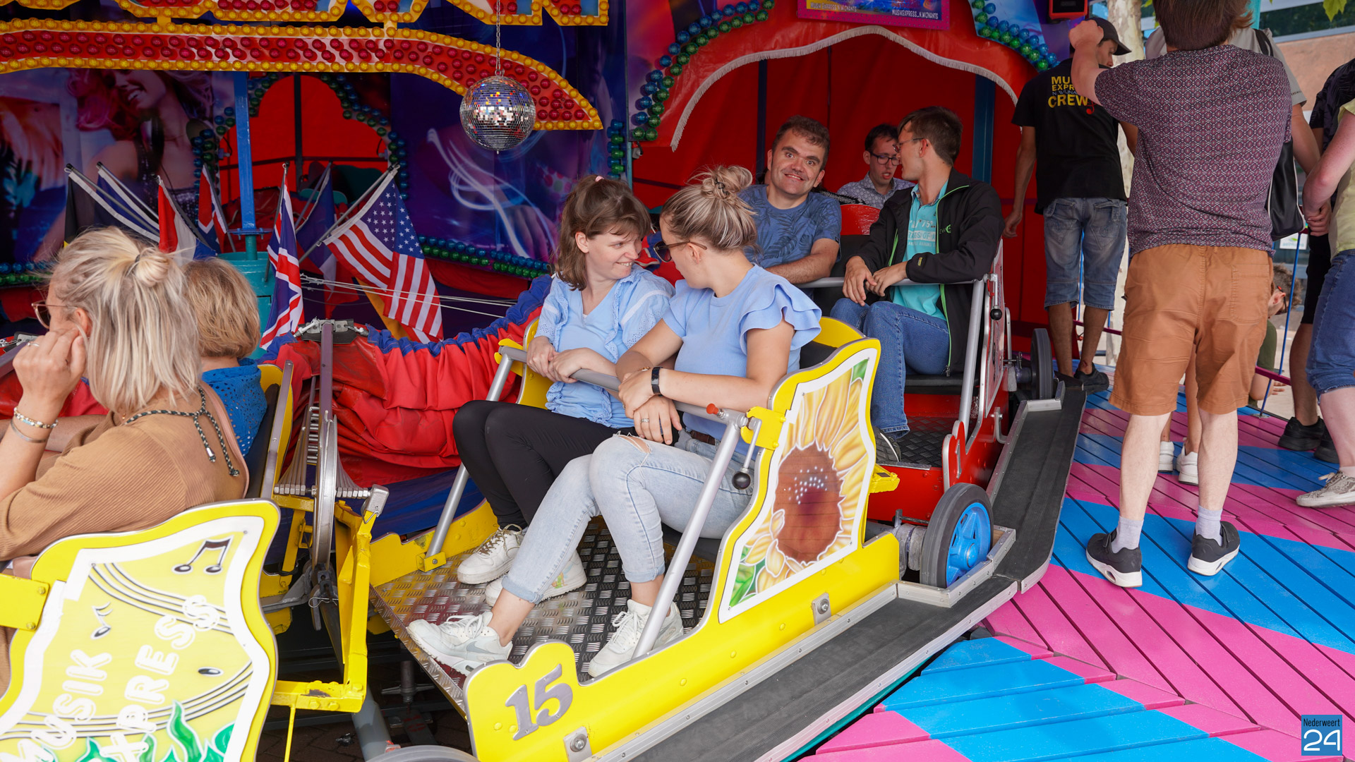 Dinsdagmiddag kon er net als voorgaande jaren ook van de kermis worden genoten op een prikkelarme manier. Speciaal voor alle mensen die niet goed tegen hard geluid, felle lichten en snel draaiende attracties kunnen. Wethouder Dieteren gaf het startsignaal voor de prikkelarme kermis.