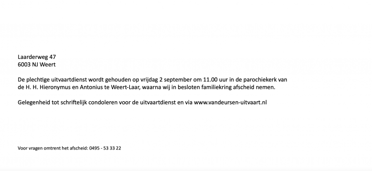 Gecondoleerd en heel veel sterkte ook namens Jan en Annie Driessen
