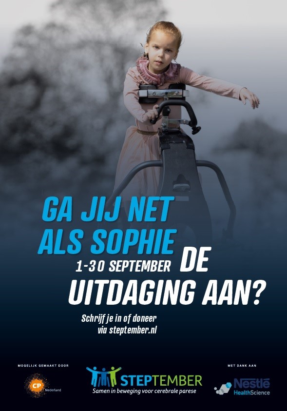 Sophie, voor wie haar nog niet kent; een vrolijke en energieke meid van 7 jaar. Woonachtig op Hoebenakker met haar vader Tim, moeder Monique en zusje Lize. Een dametje die weet wat ze wilt, enorm veel doorzettingsvermogen heeft en houdt van muziek, dansen en zingen. Als gevolg van een ernstige cerebrale parese is Sophie fysiek sterk beperkt. Voor de Landelijke Vereniging Cerebrale Parese is Sophie een inspirerend voorbeeld, wat maakt dat ze is gevraagd als boegbeeld voor de jaarlijkse Steptember campagne.