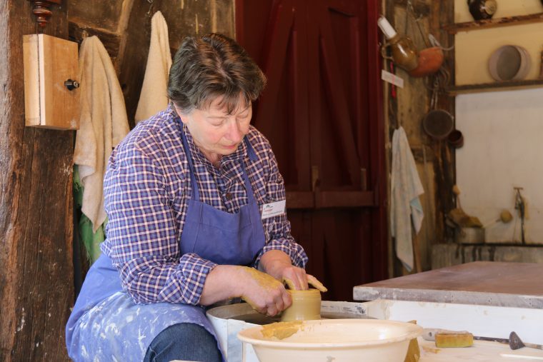 Het is niet noodzakelijk dat je al potten kunt draaien, de vrijwilligers van Eynderhoof leren je graag hoe het moet. “In ons gezellige team zijn er altijd mensen die je deze verslavende hobby, want dat is het, willen leren. Met je handen in de klei en dan al draaiend een leuk potje, schaaltje of beker toveren. Want zo kijken de bezoekers er tegenaan: het lijkt wel magie. Eerst heb je alleen een bolletje klei en dat verandert langzaam in een gebruiksvoorwerp.”