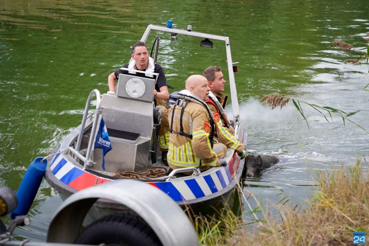 De brandweer heeft dinsdagmorgen een wild zwijn uit de Zuid Willemsvaart gehaald in Weert.