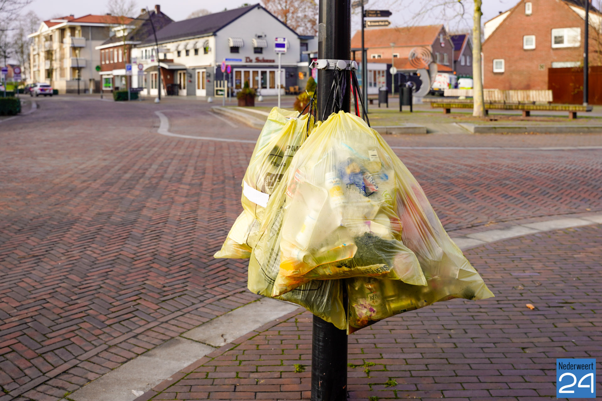 Er hangen nu vaak zakken de hele week aan de straatlantarens te bungelen wat het beeld op straat er niet mooier op maakt.