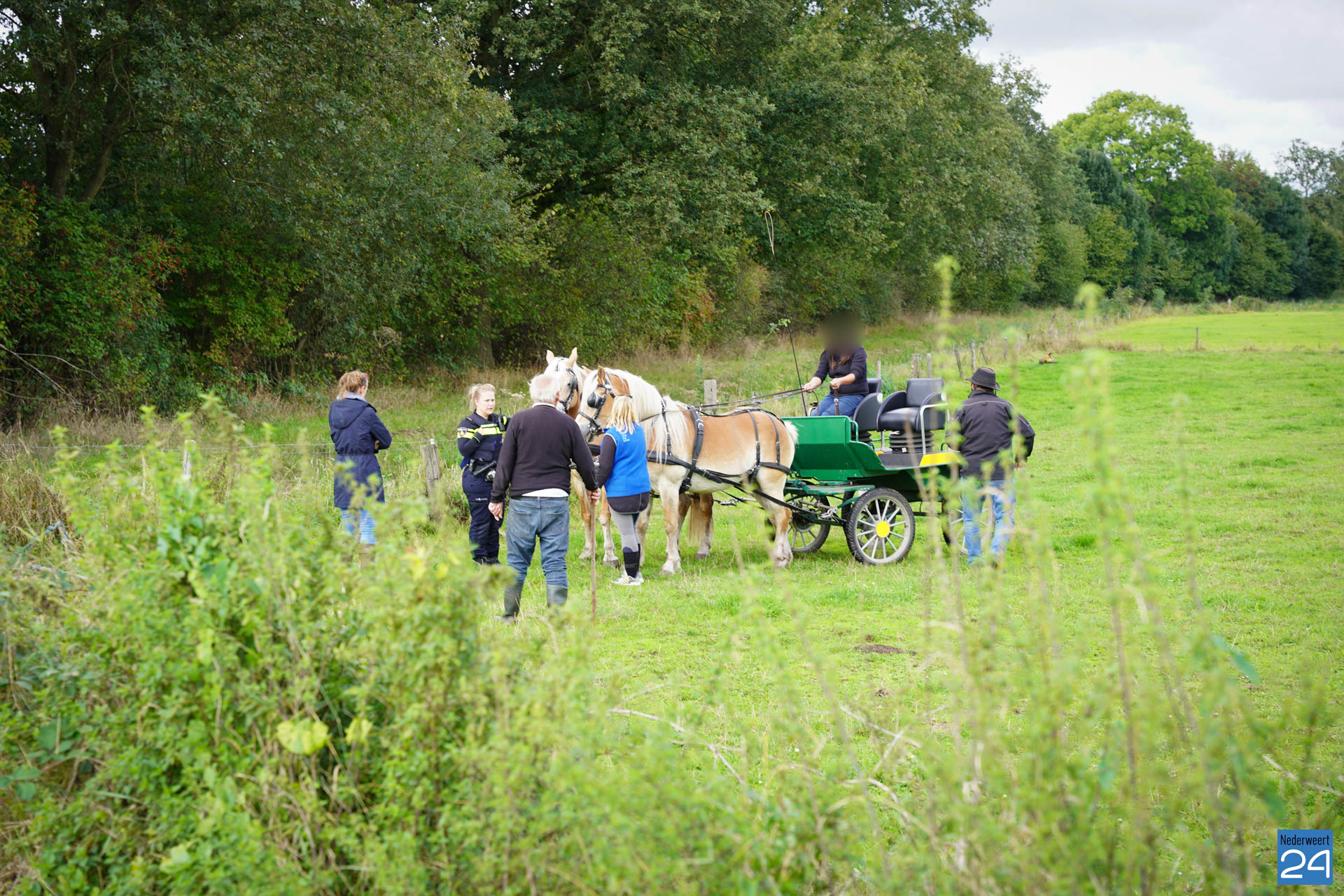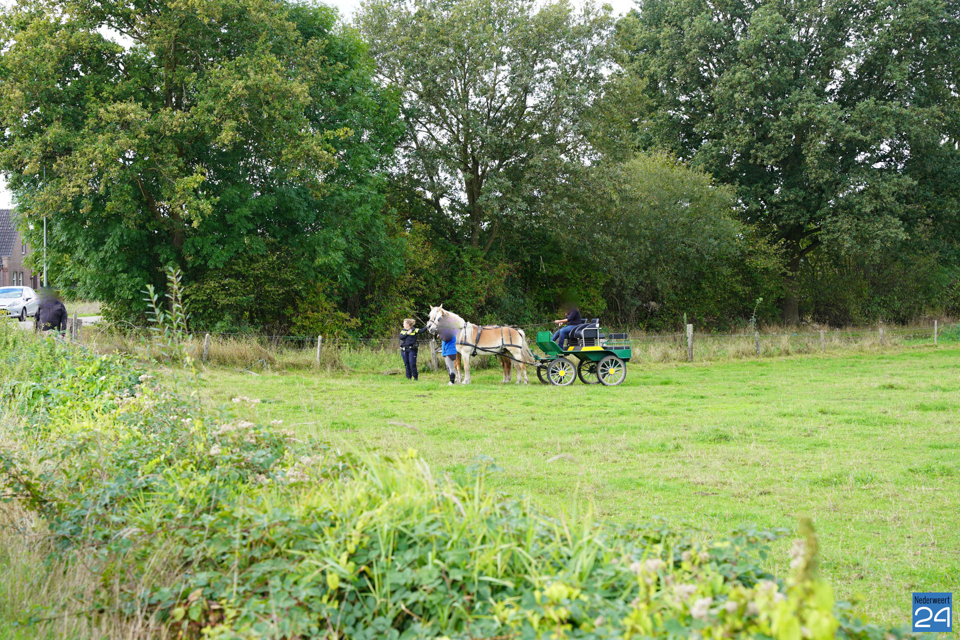 Op dinsdagmorgen werden rond 11.40 de hulpdiensten opgeroepen vanwege een ongeval op de Kruisstraat in Nederweert-Eind. Hier was een paardenkar met 2 opzittenden in de sloot langs de weg beland.