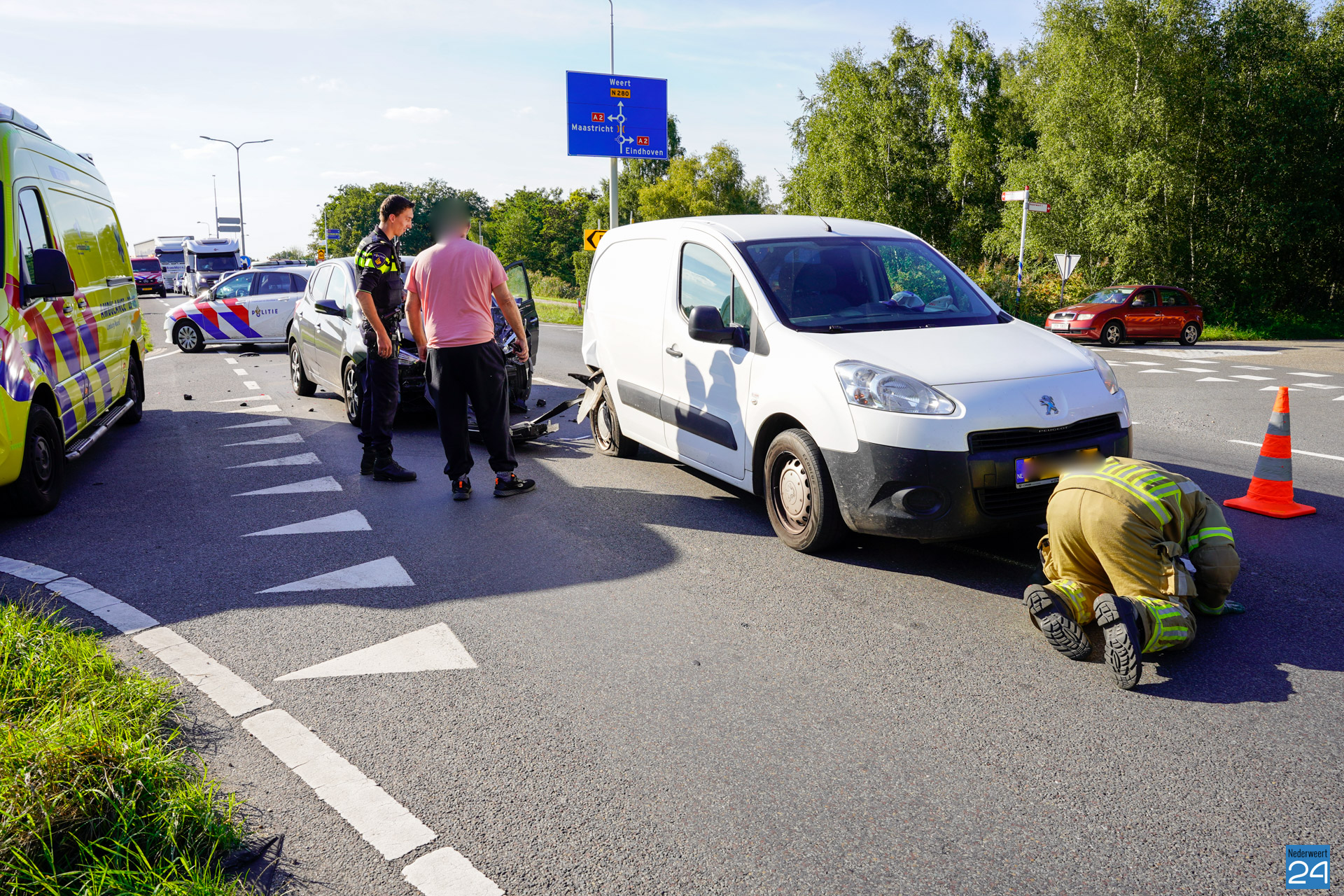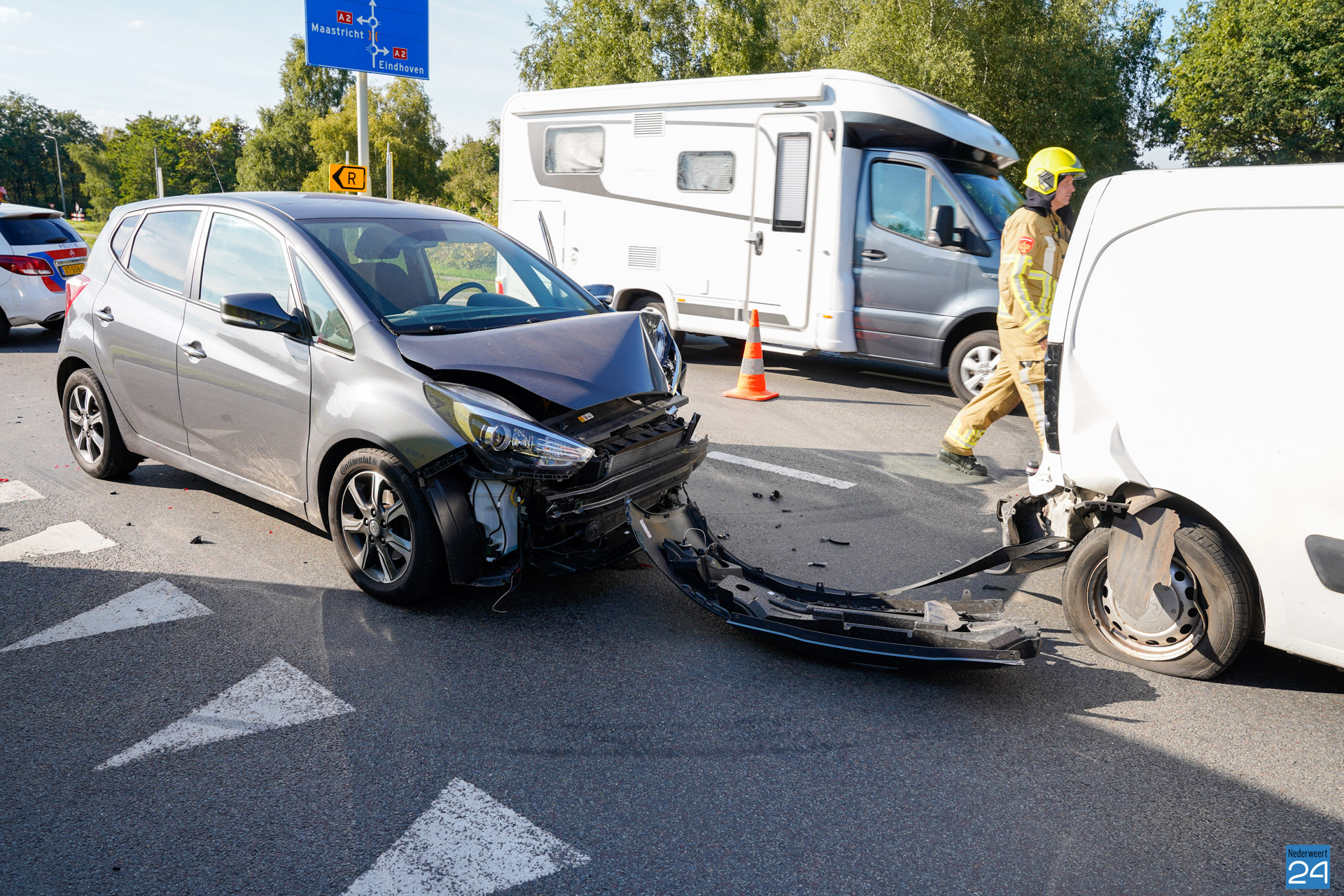 De bestuurder van de bestelbus kwam met de schrik vrij. Het verkeer ondervond enige hinder door het ongeval. De beschadigde voertuigen zijn door een berger opgehaald.