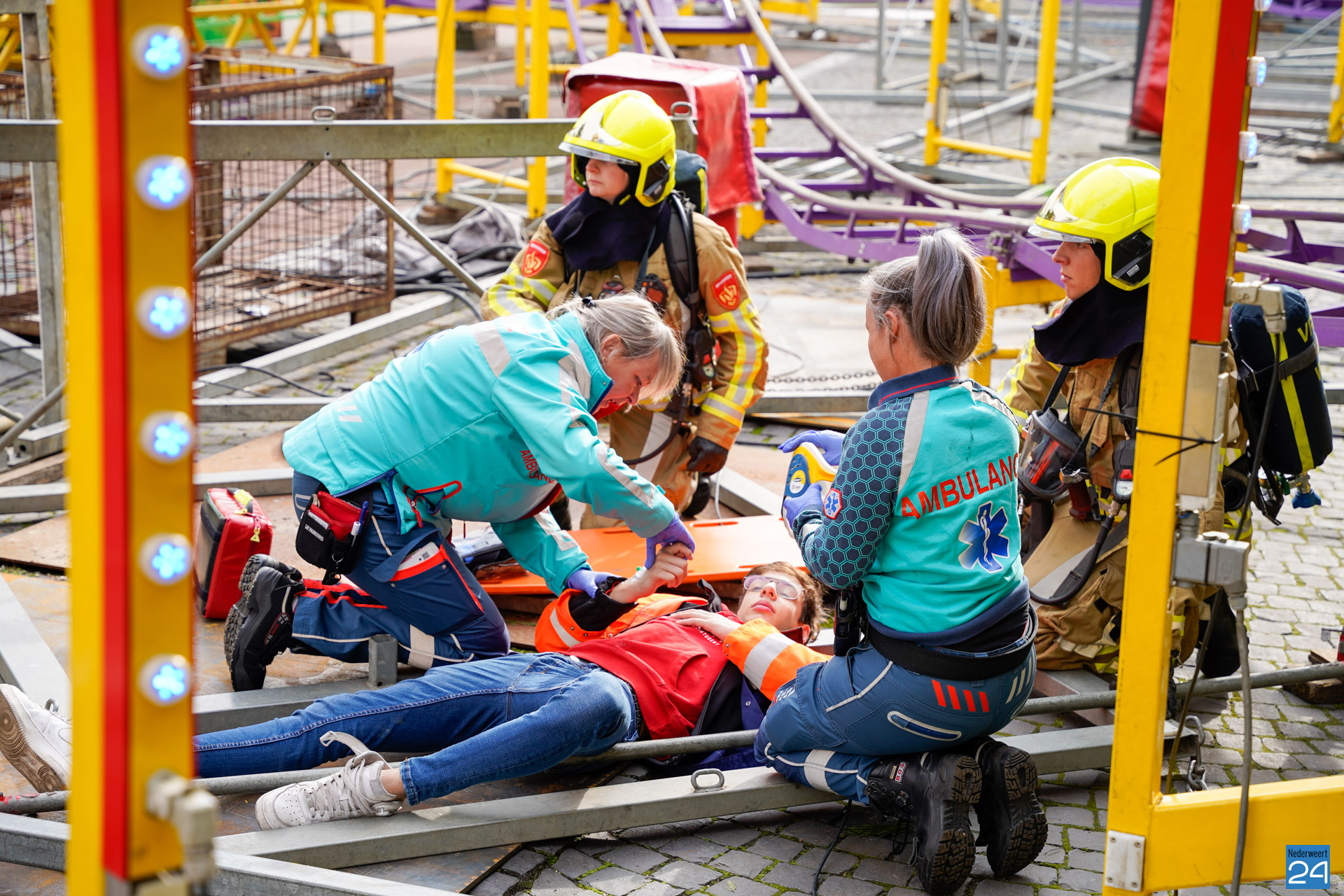 Al jarenlang is het een traditie voor de hulpverleners om op vrijdagochtend een oefening te houden bij één van de tientallen aanwezige attracties. Dit jaar was er een scenario bedacht bij de familieachtbaan aan de Langpoort. Er was brand ontstaan bij de naastgelegen oliebollenkraam. Niet veel later stopte de achtbaan met bewegen. De kinderen zaten vast in de attractie. Eén van de medewerkers kwam ongelukkig ten val.