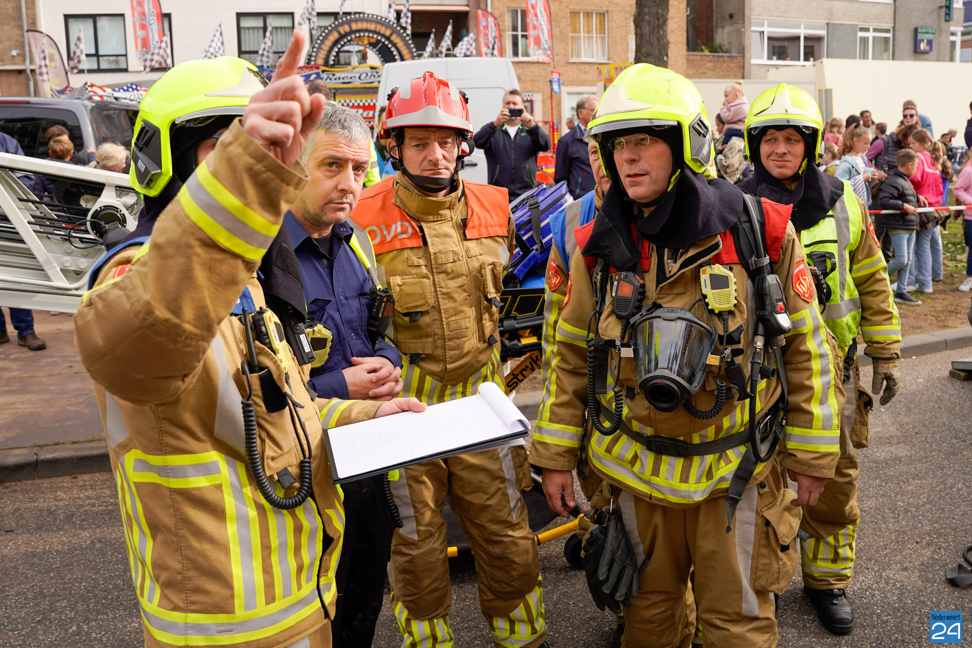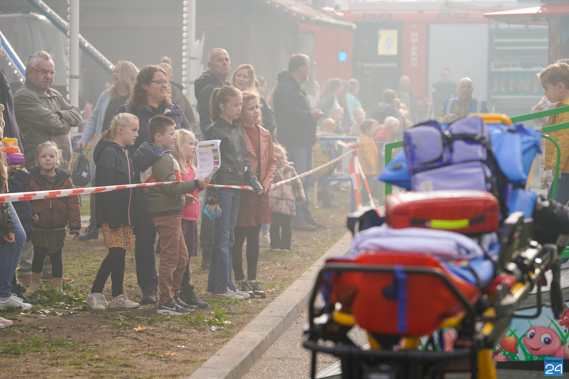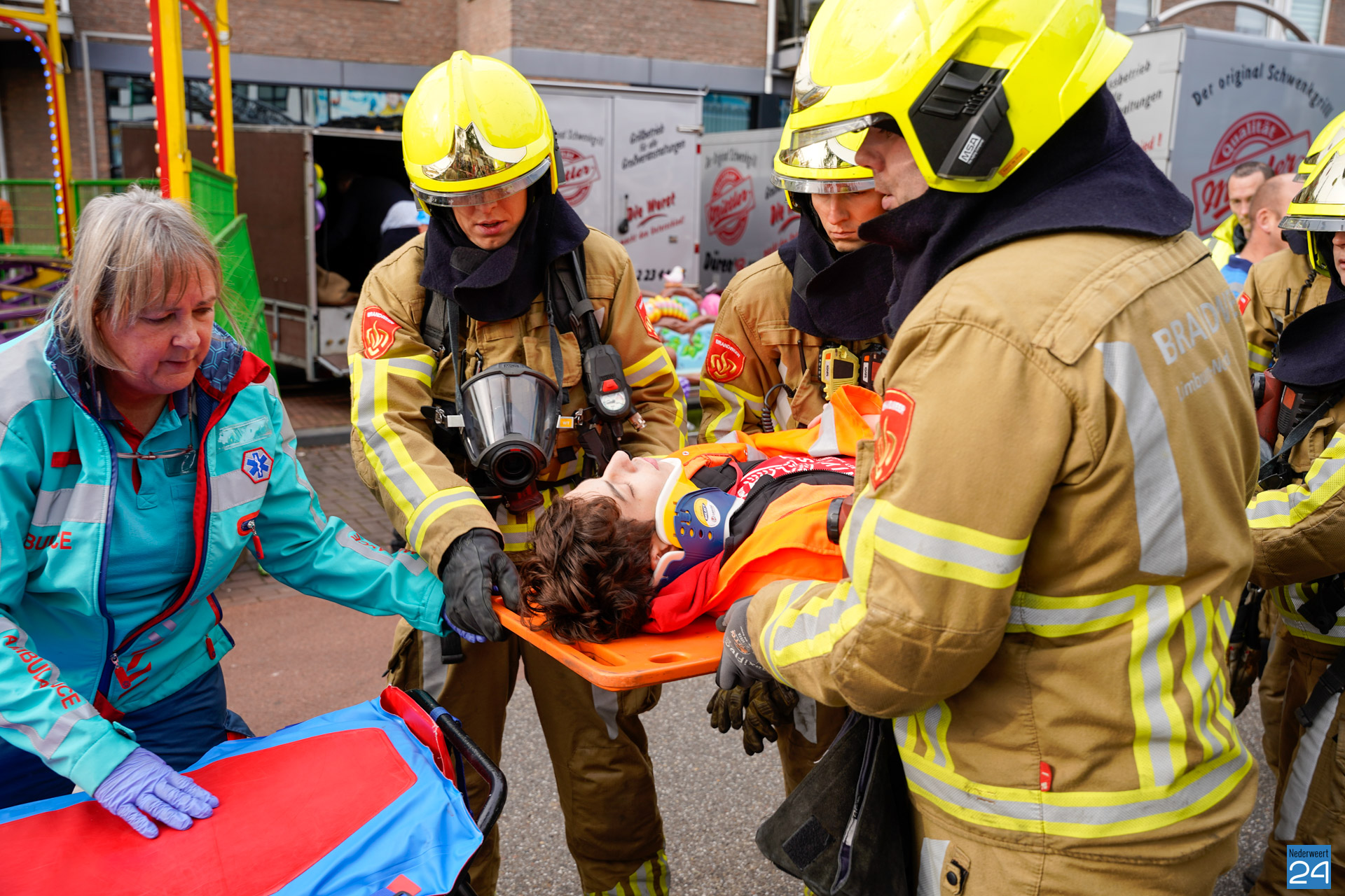 De brandweer en ambulancedienst hielden vrijdagochtend een oefening op het kermisterrein aan de Langpoort in Weert. Leerlingen van de Brede School Moesel mochten hieraan deelnemen als slachtoffers.