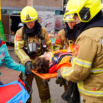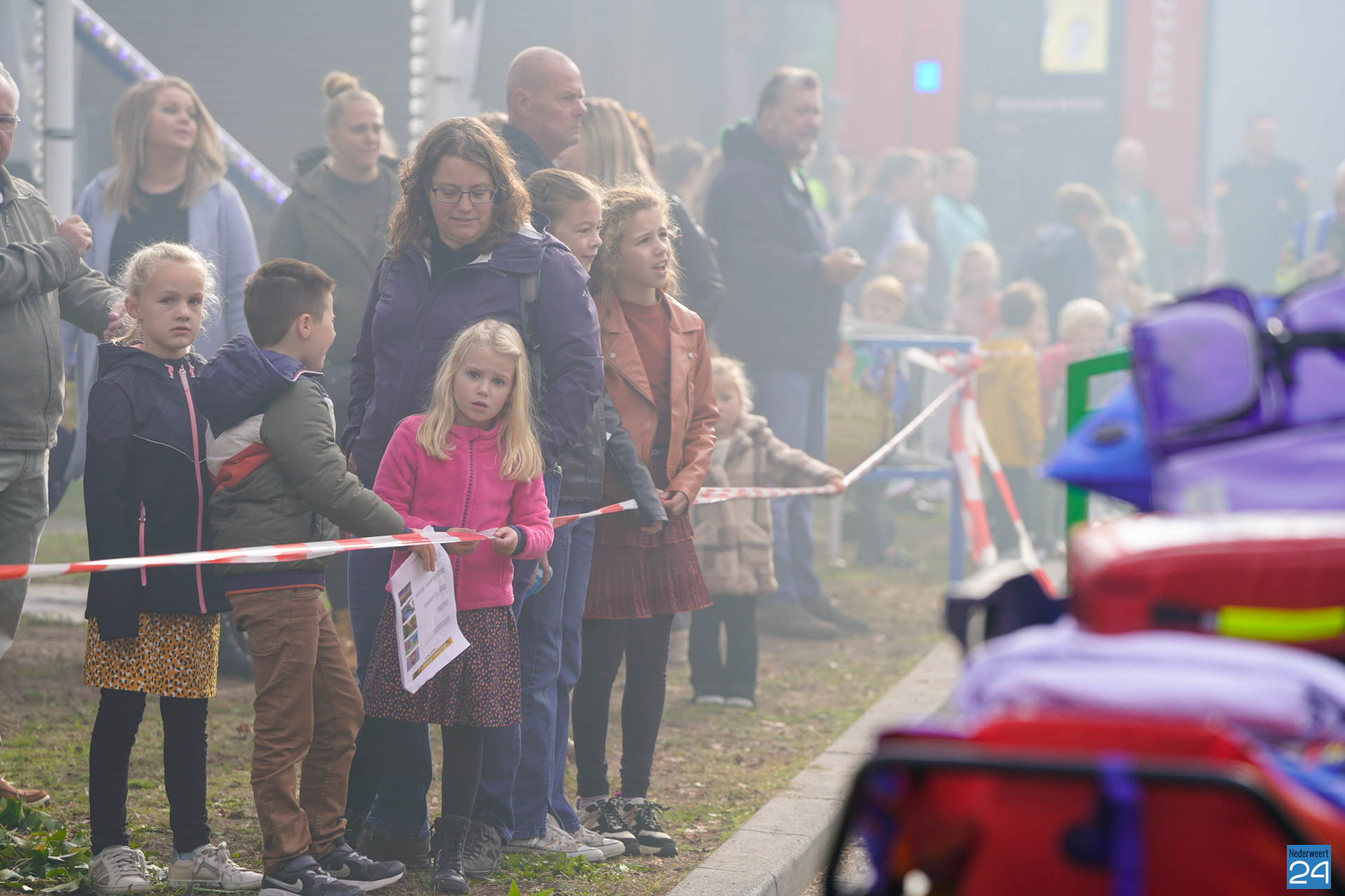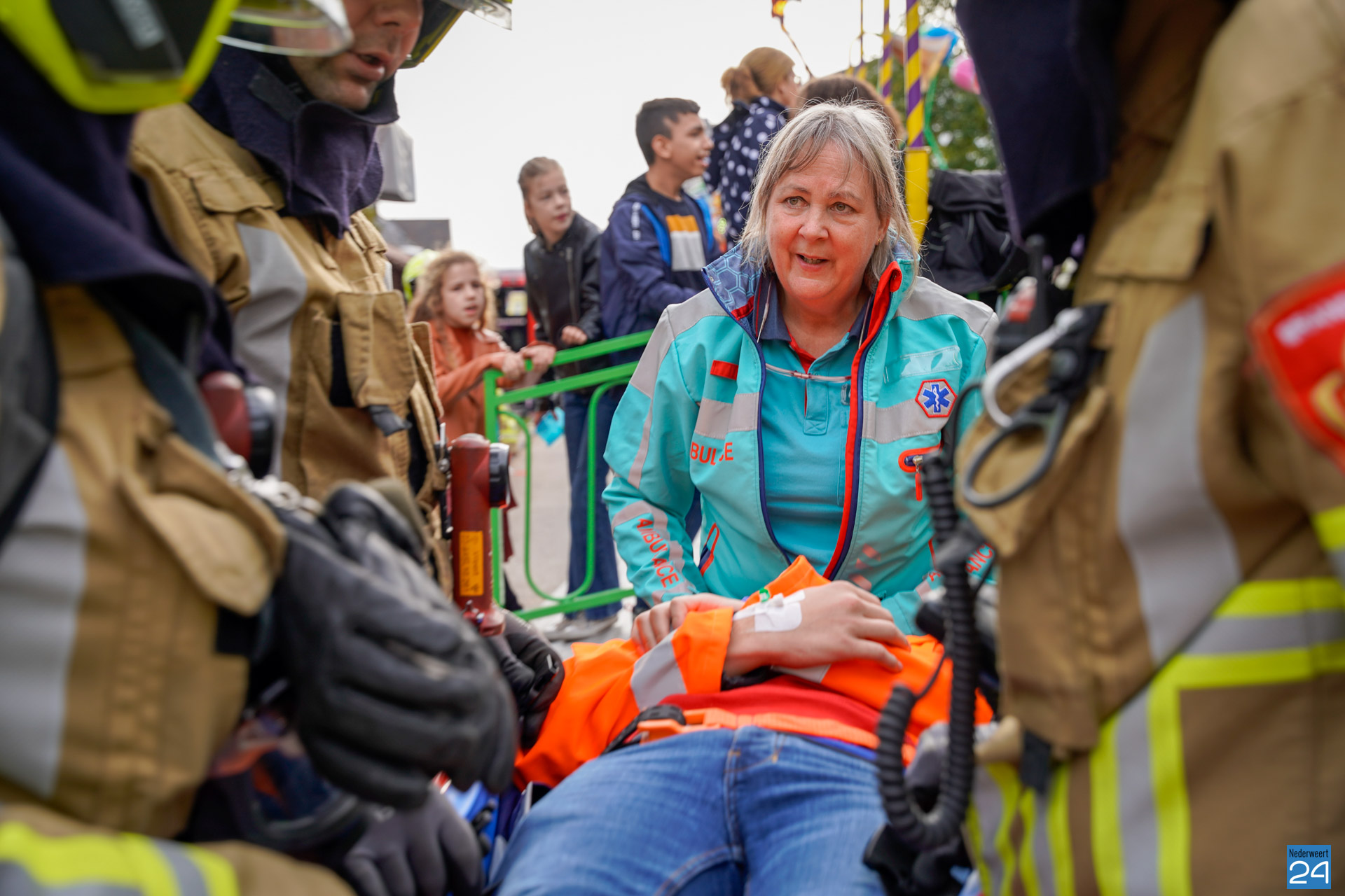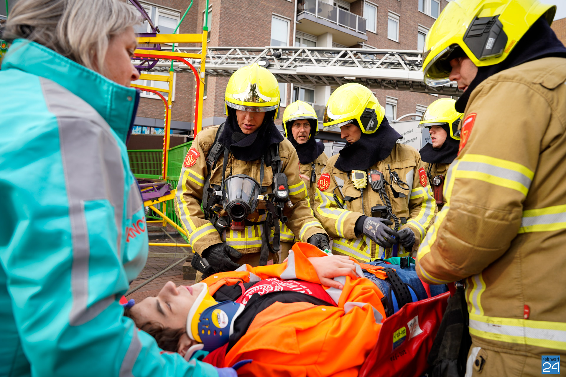 De brandweer en ambulancedienst hielden vrijdagochtend een oefening op het kermisterrein aan de Langpoort in Weert. Leerlingen van de Brede School Moesel mochten hieraan deelnemen als slachtoffers.