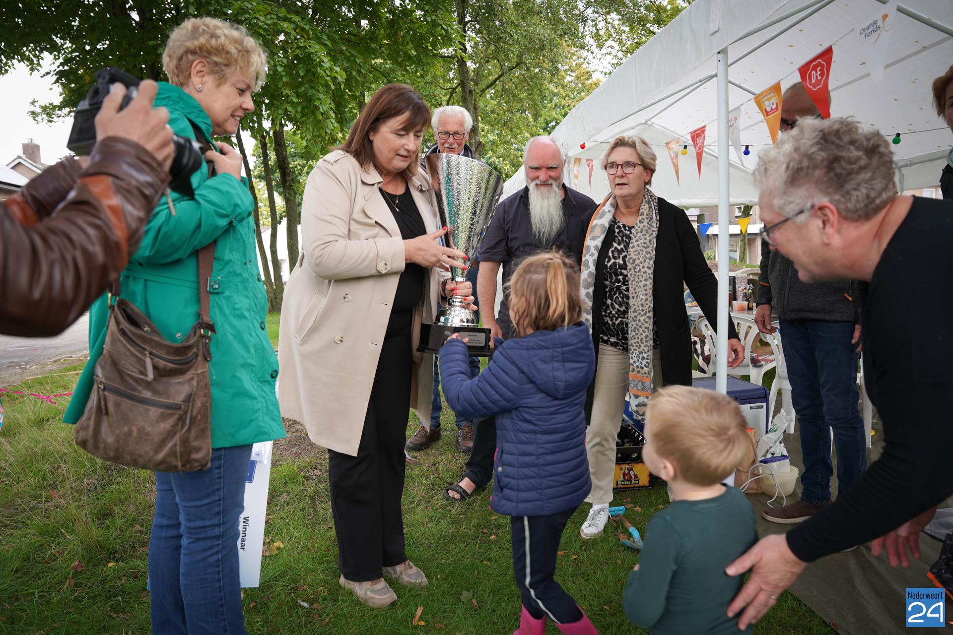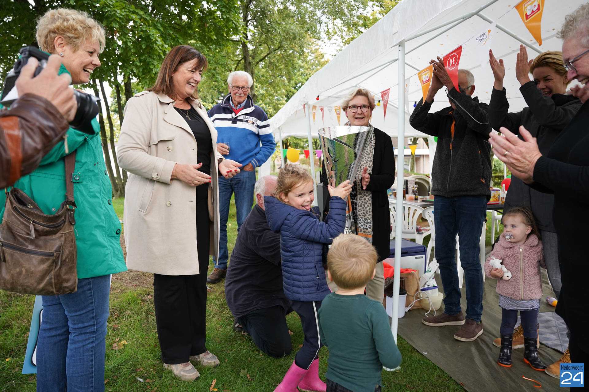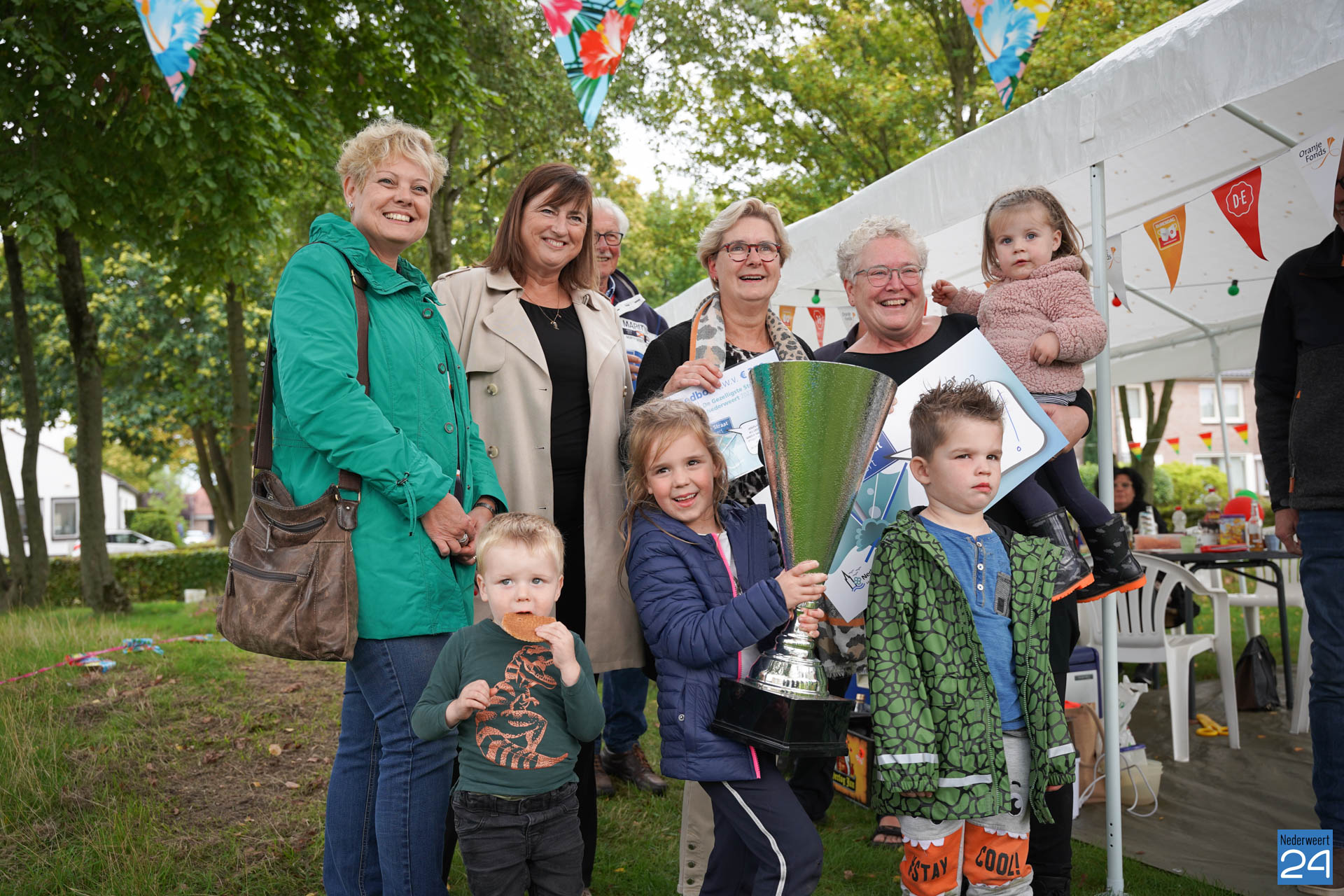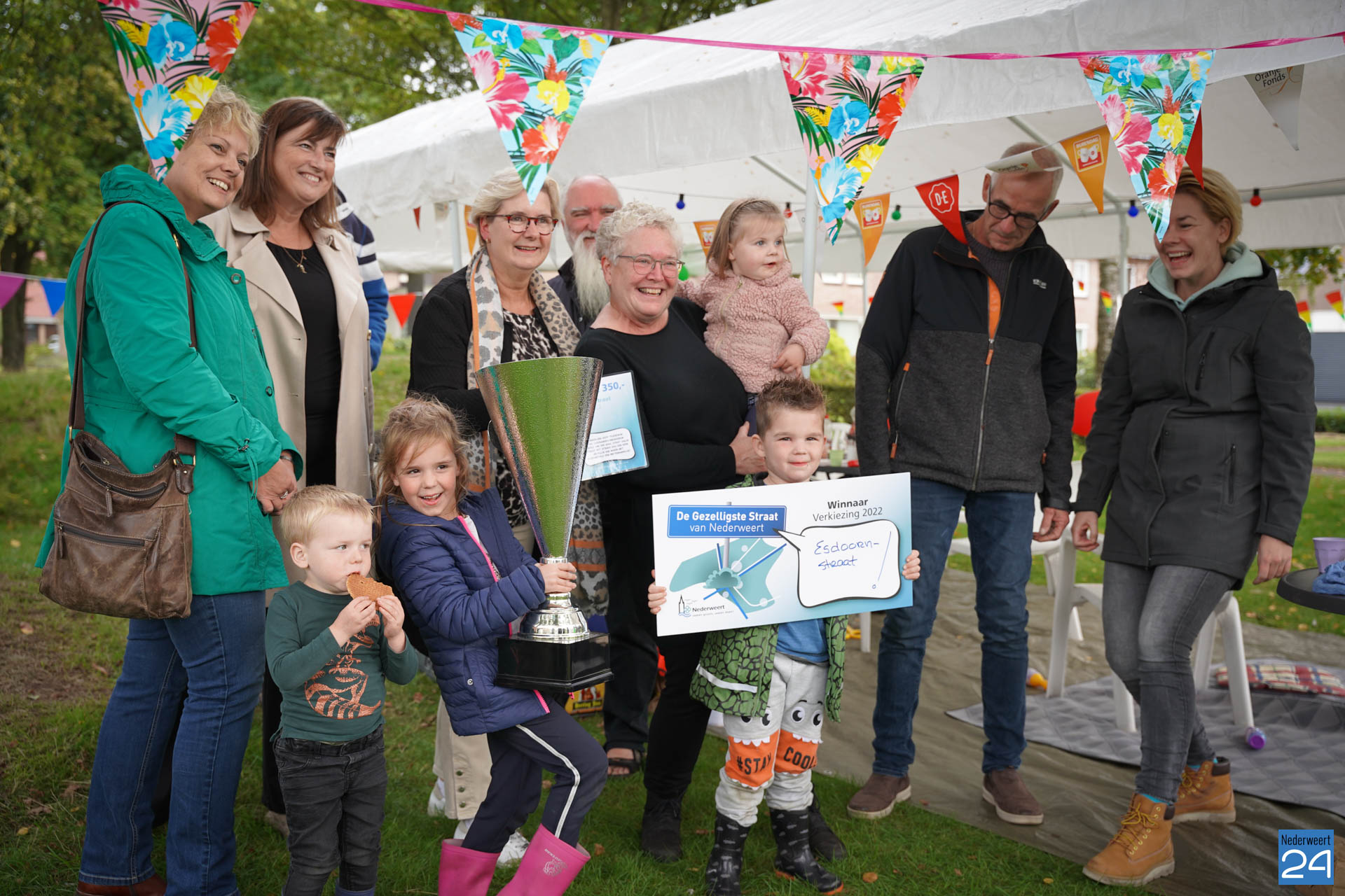 De straat die dit jaar de titel ‘De Gezelligste Straat van Nederweert 2022’ mag dragen, is de Esdoornstraat. Meerdere generaties treffen elkaar wekelijks op de groene speelplaats voor de deur. Bewoners letten op elkaars (klein)kinderen en buurten en eten er regelmatig samen. Vandaag lieten ze zien hoe gezellig dat eraan toe gaat. Kortom: een terechte winnaar!