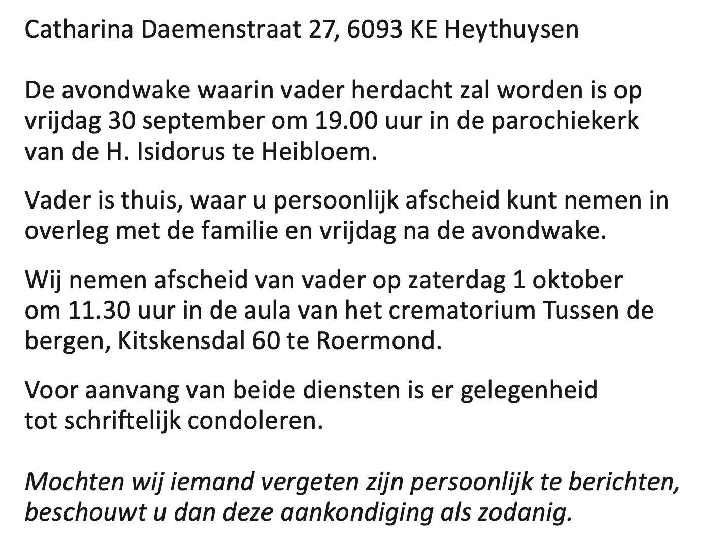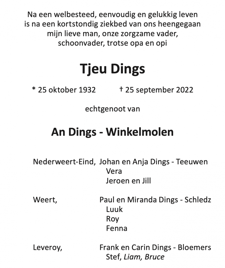 Verdrietig om te lezen dat jullie vader, schoonvader en opa is overleden.