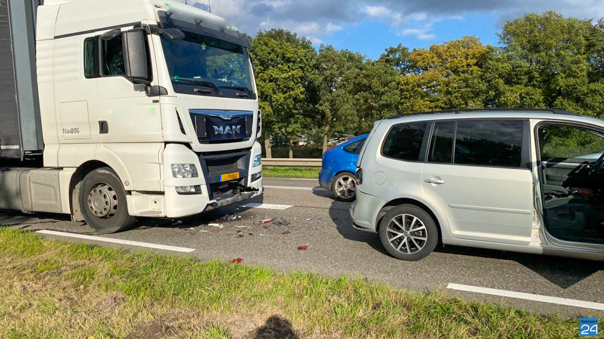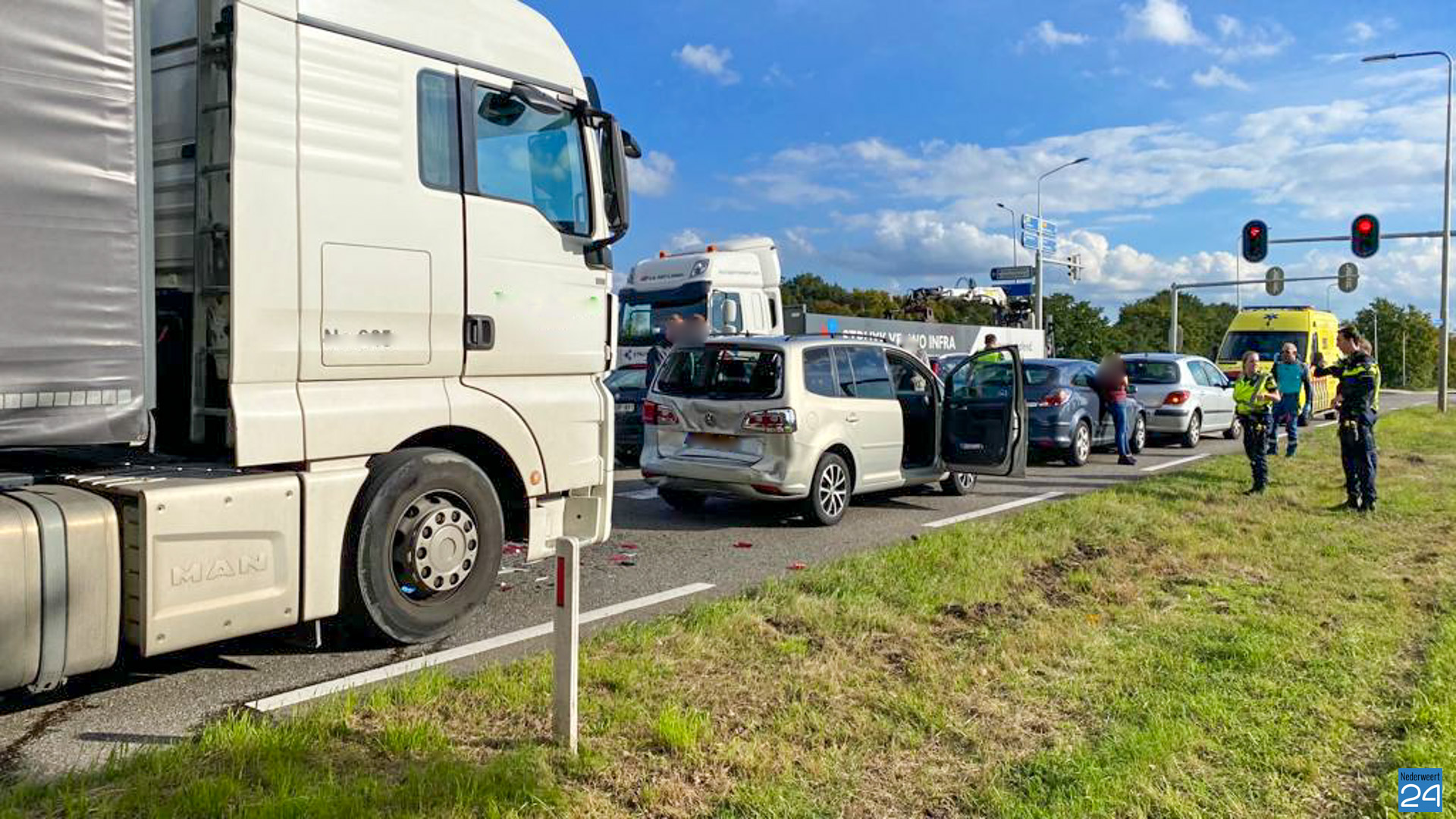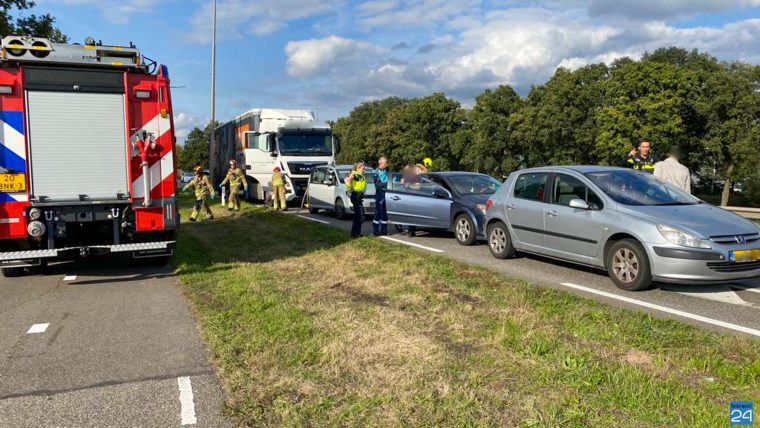Op vrijdagmiddag zijn rond 16.25 uur drie personenauto’s en een vrachtwagen met elkaar in botsing gekomen op de N266 ter hoogte van de verkeerslichten bij Brug 14. De vrachtwagen botste als laatste op de auto’s voor zich.