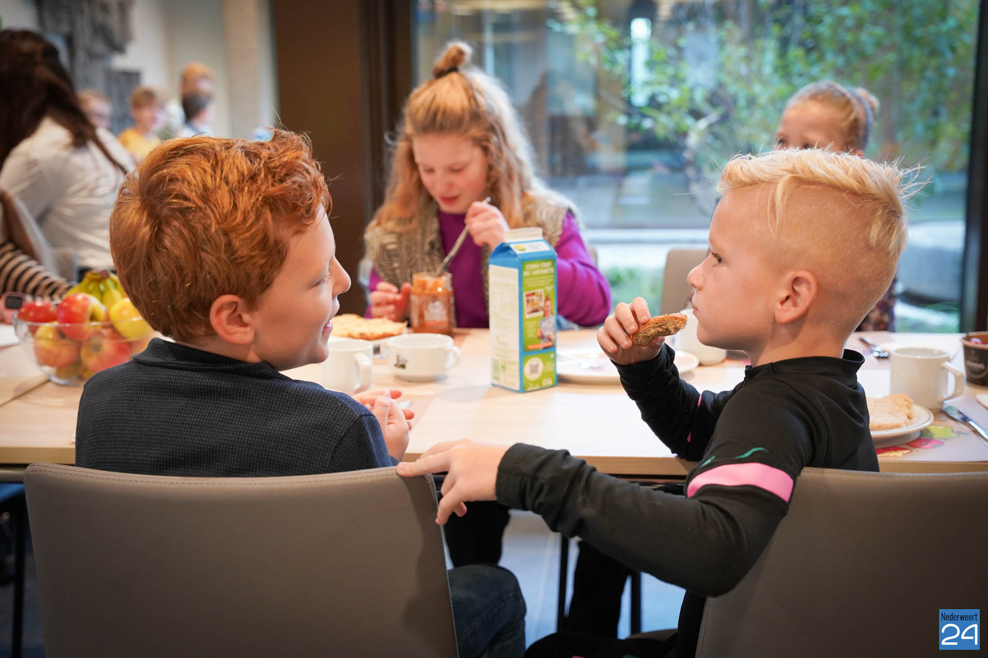 Om het belang van een gezond ontbijt te benadrukken schoven in de eerste oktoberweek zo’n 200 burgemeesters in heel Nederland, samen met lokale bakkers en basisscholen aan tafel. Zo ook in Nederweert. Daar smulden burgemeester Op de Laak en de leerlingen van groep 6/7 van basisschool de Schrank uit Ospel op dinsdag 4 oktober samen van een heerlijk gezond ontbijt. Het Burgemeestersontbijt is een onderdeel van het Nationaal Schoolontbijt en werd in Nederweert verzorgd door de Albert Heijn Heerschap Nederweert.