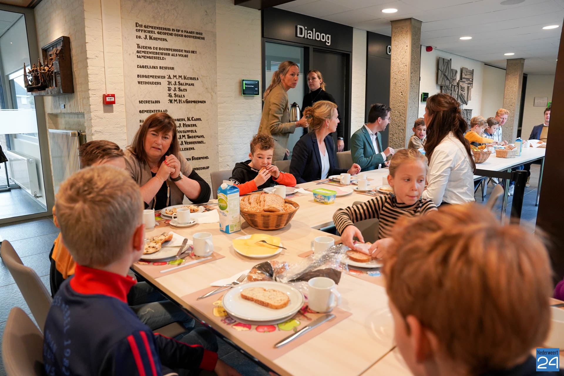 “Het belang van een goed en gezond ontbijt staat meer dan ooit op de agenda,” geeft burgemeester Op de Laak aan. “Niet alleen ik maar ook mijn collega-wethouders zaten daarom aan de ontbijttafel. De 24 leerlingen kwamen met de fiets naar het gemeentehuis en hebben zo ook nog een ‘buitenbeweegles’ gehad met een heerlijk herfstzonnetje. Het was gezellige maar bovenal leerzame ochtend, waarbij we samen met de kinderen gepraat hebben over het belang van ontbijten. Wordt het ontbijt genuttigd, wat eten de kinderen het liefste en waarom is deze maaltijd zo belangrijk?“
