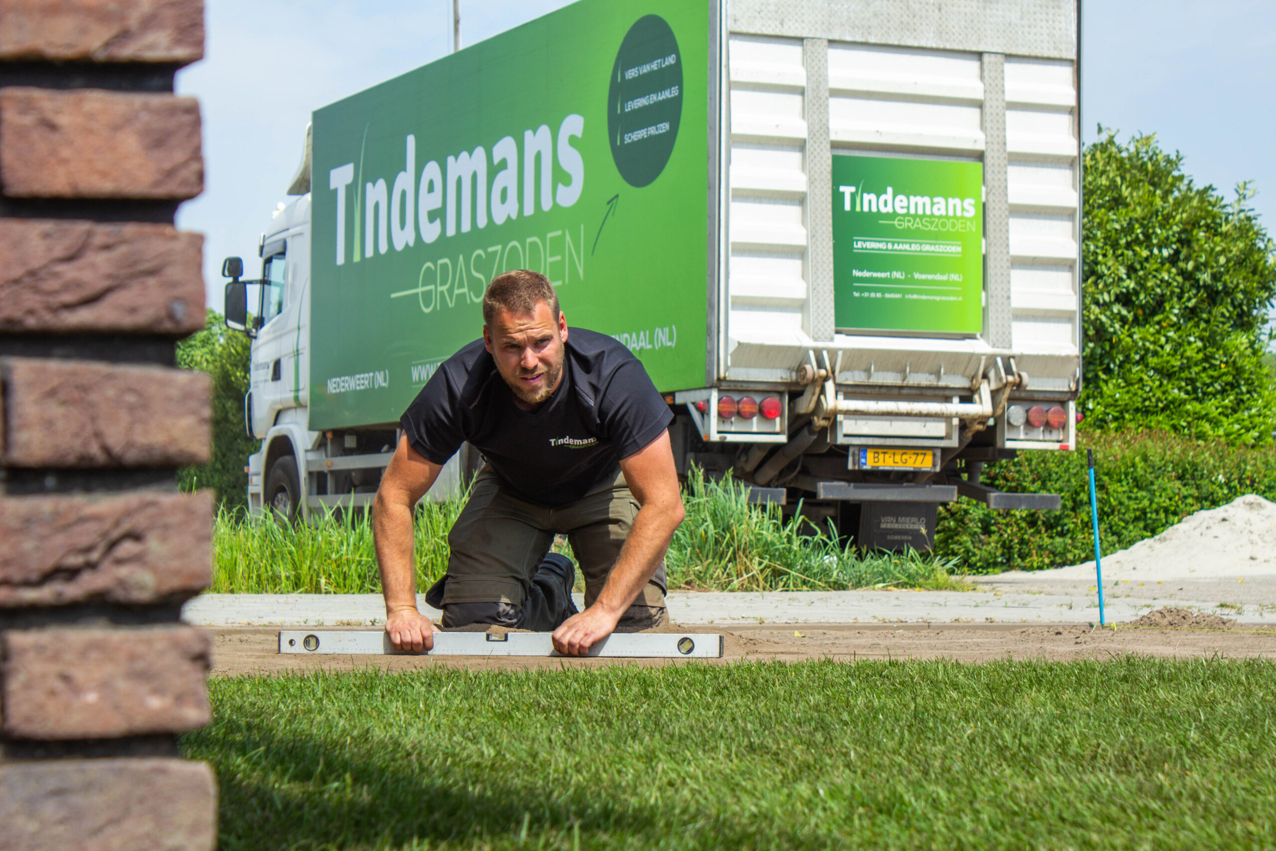Ik kreeg al snel enkele klanten. Van de eerst verdiende centen kocht ik een aanhanger. Vrienden leenden mij hun auto met trekhaak. Vanaf toen kon ik de rollen graszoden met eigen vervoer naar de klant brengen. Soms vroegen klanten me of ik ook graszoden legde. Nope, toen nog niet. Als ze mij destijds gevraagd hadden ‘Kunnen graszoden op gele zand gelegd worden?’, dan had ik waarschijnlijk ‘ja’ gezegd. Maar goed, de vraag bleef komen, dus leerde ik mezelf via YouTube hoe het moest en schafte ik de benodigde materialen aan. Na wat oefenen lukte het.”