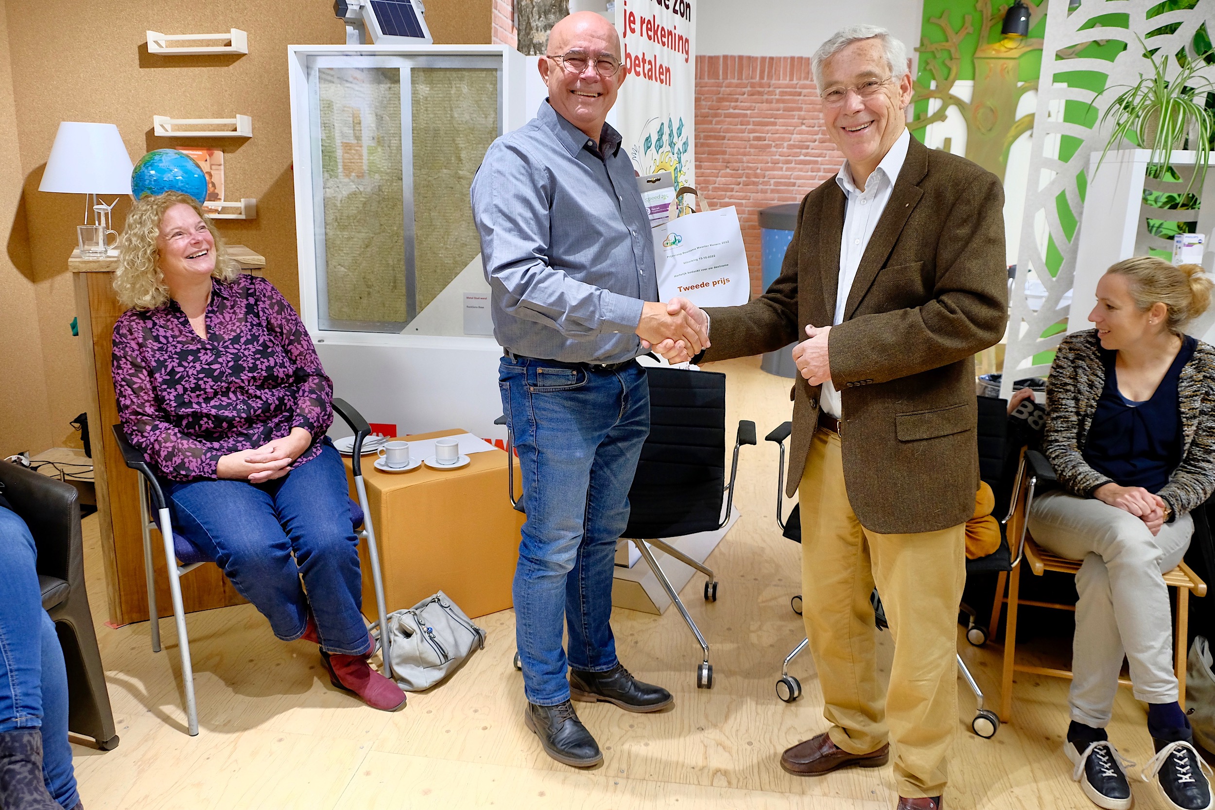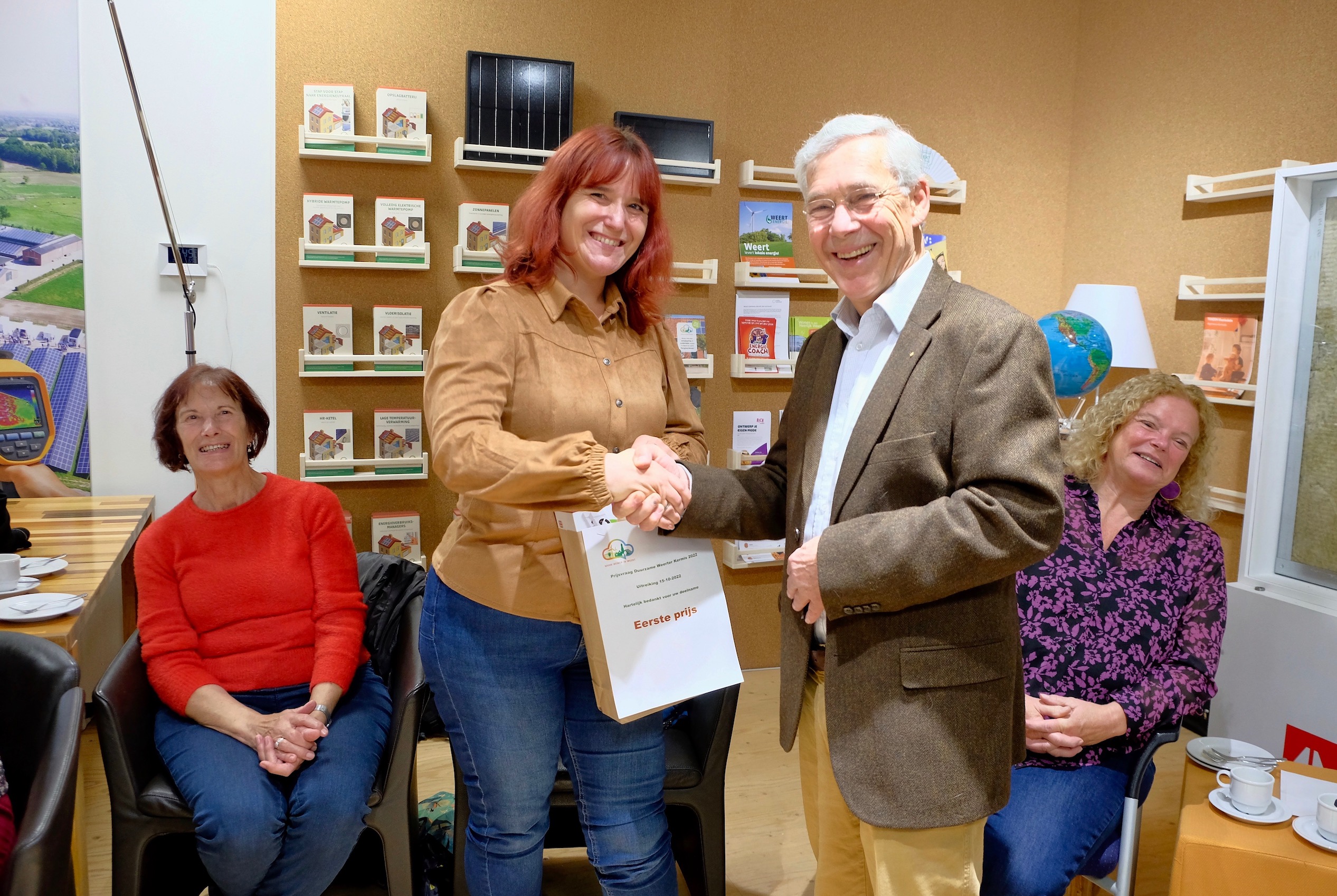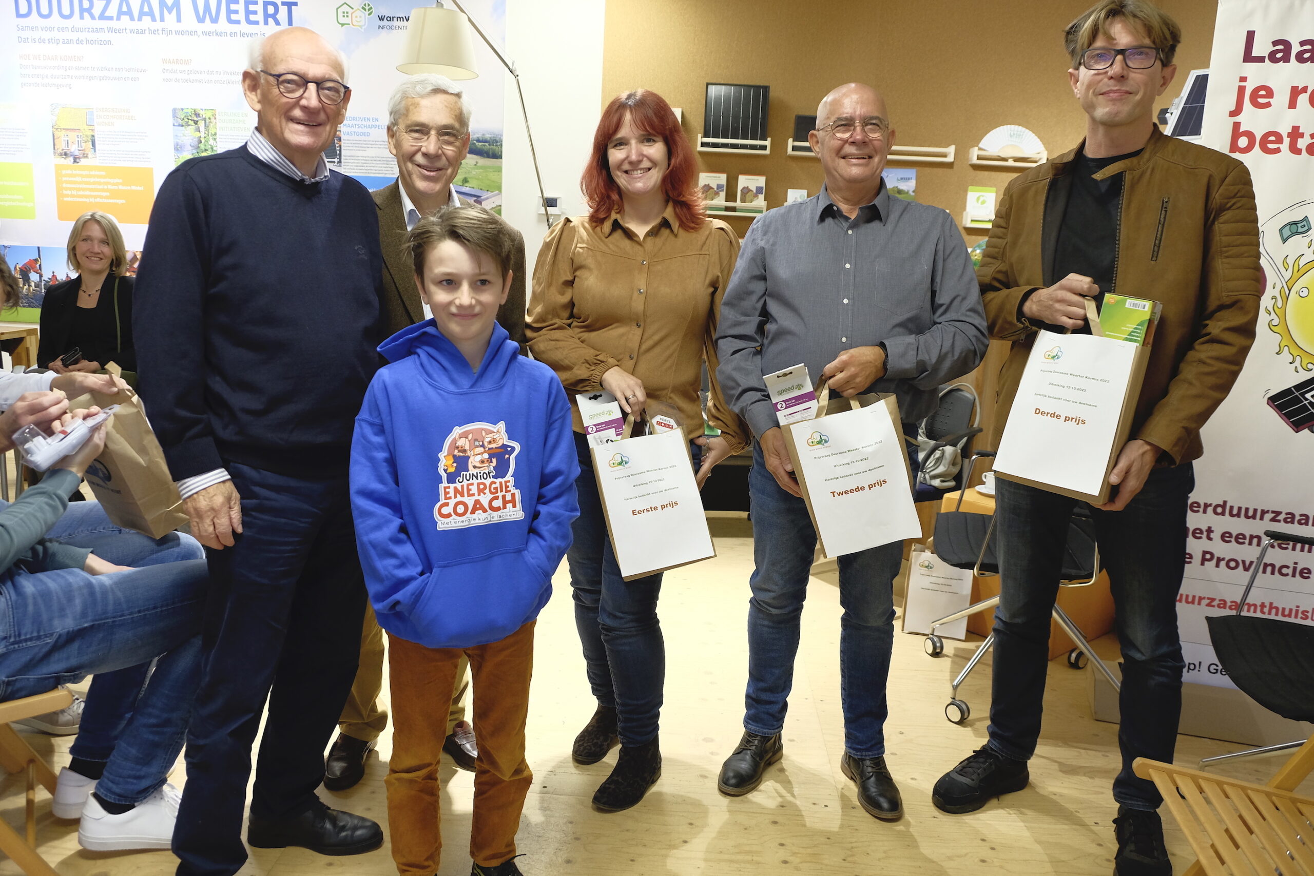 Zaterdag 15 oktober reikte Kees de Korver, voorzitter van de energiecoöperatie WeertEnergie, de prijzen uit aan de winnaars van de prijsvraag Verduurzaam de Weerter kermis in de Warm Wonen Winkel in Weert. Van 23 tot en met 28 september konden bezoekers hun ideeën om de kermis te verduurzamer inleveren.