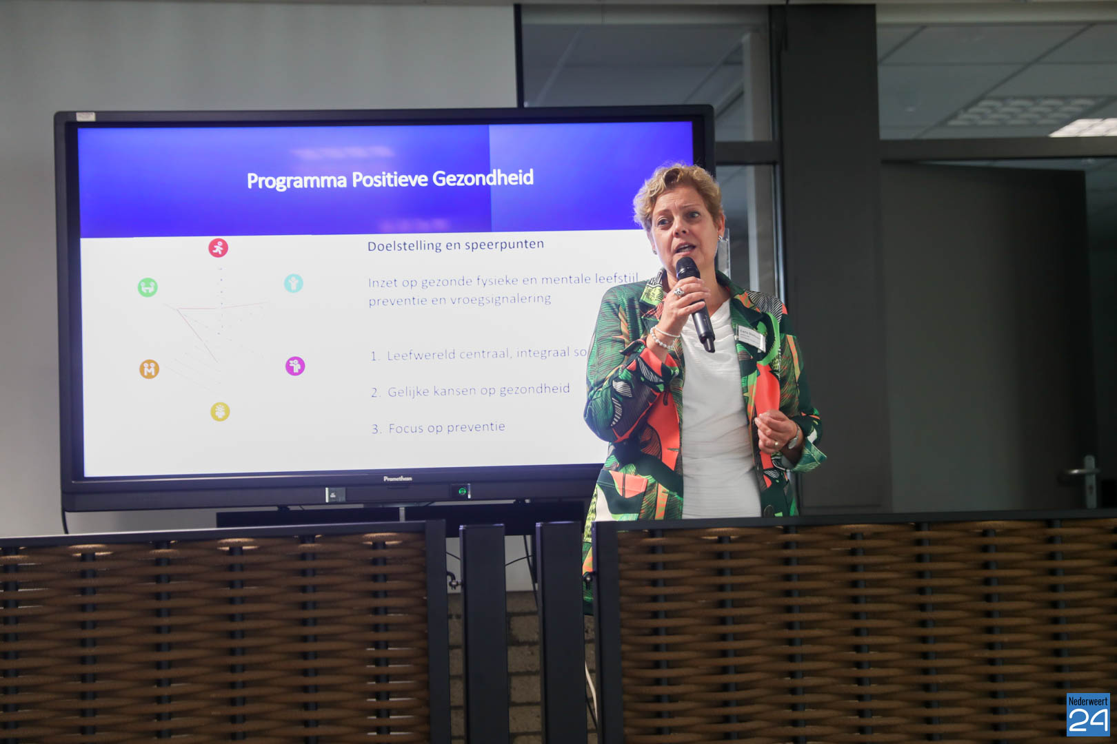 Tijdens de bijeenkomst gingen we in gesprek over onze uitdagingen, ambities en samenwerking. Er werd volop (hernieuwd) kennis gemaakt en verdieping gezocht met elkaar. Belangrijk! Want om de komende tijd gezamenlijk in te kunnen zetten op preventie en positieve gezondheid, is een goed netwerk, elkaar kennen en vertrouwen noodzakelijk. In pitches vertelden professionals wat zij zien in Nederweert, waarop extra inzet nodig is en wie ze daar bij nodig hebben.