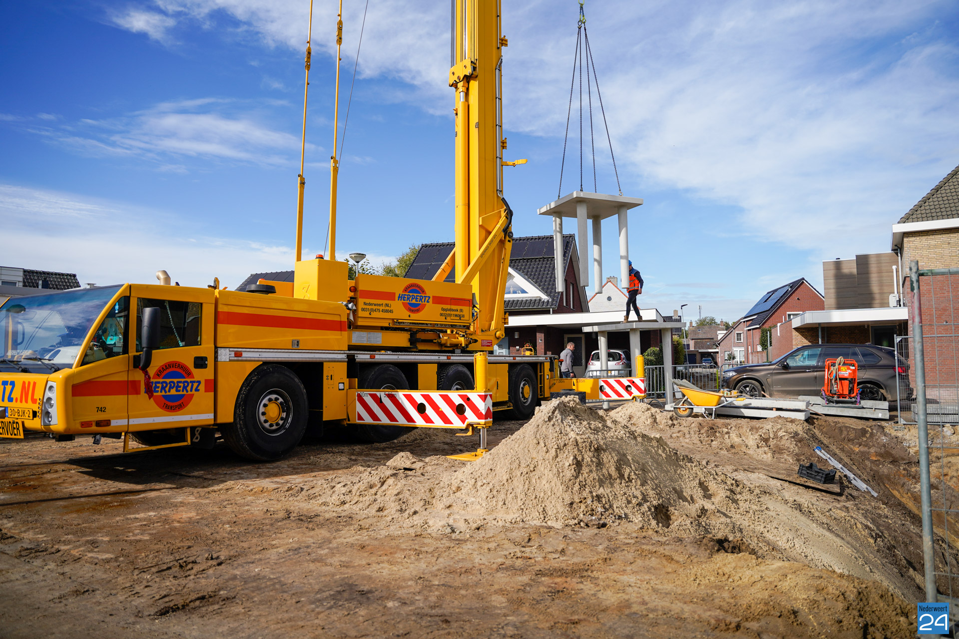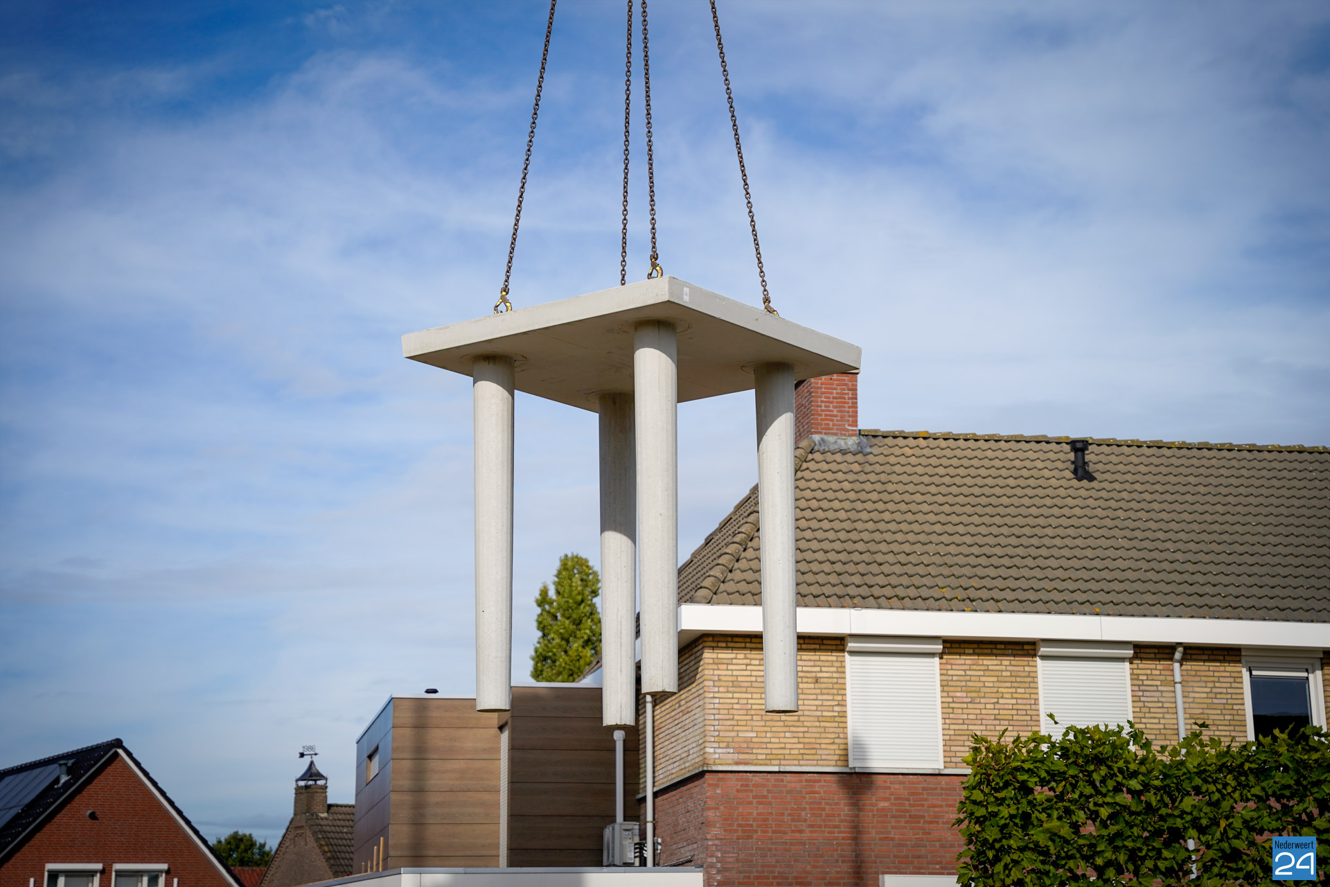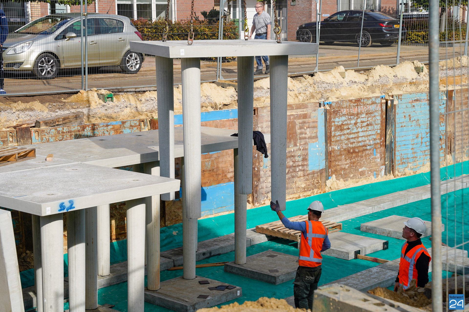 Sinds enkele weken is er een enorm gat te zien aan de Meester Schakenhof in Ospel. Men is daar bezig met de realisatie van een waterkelder. Het graven zit erop, en sinds vrijdag wordt de waterbuffer opgezet. De operatie brengt flink wat bekijks met zich mee.