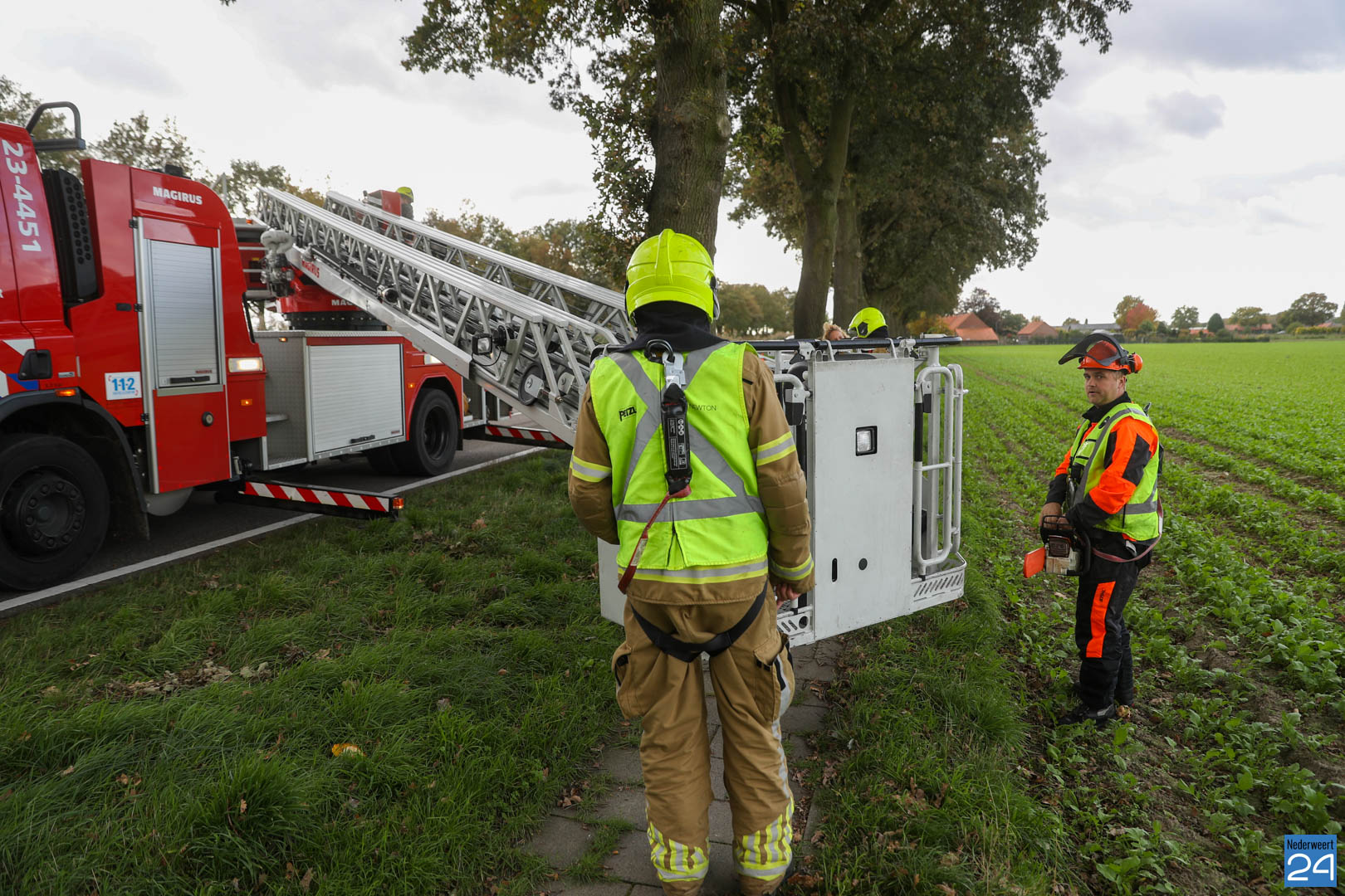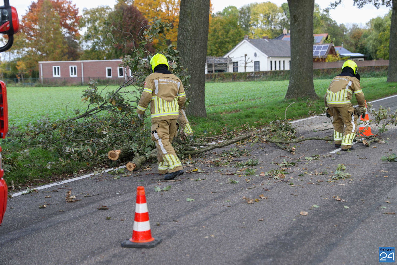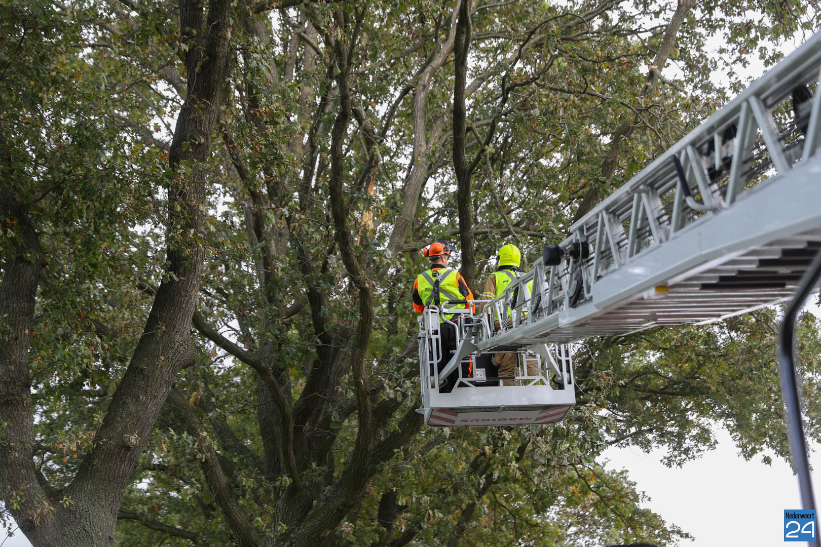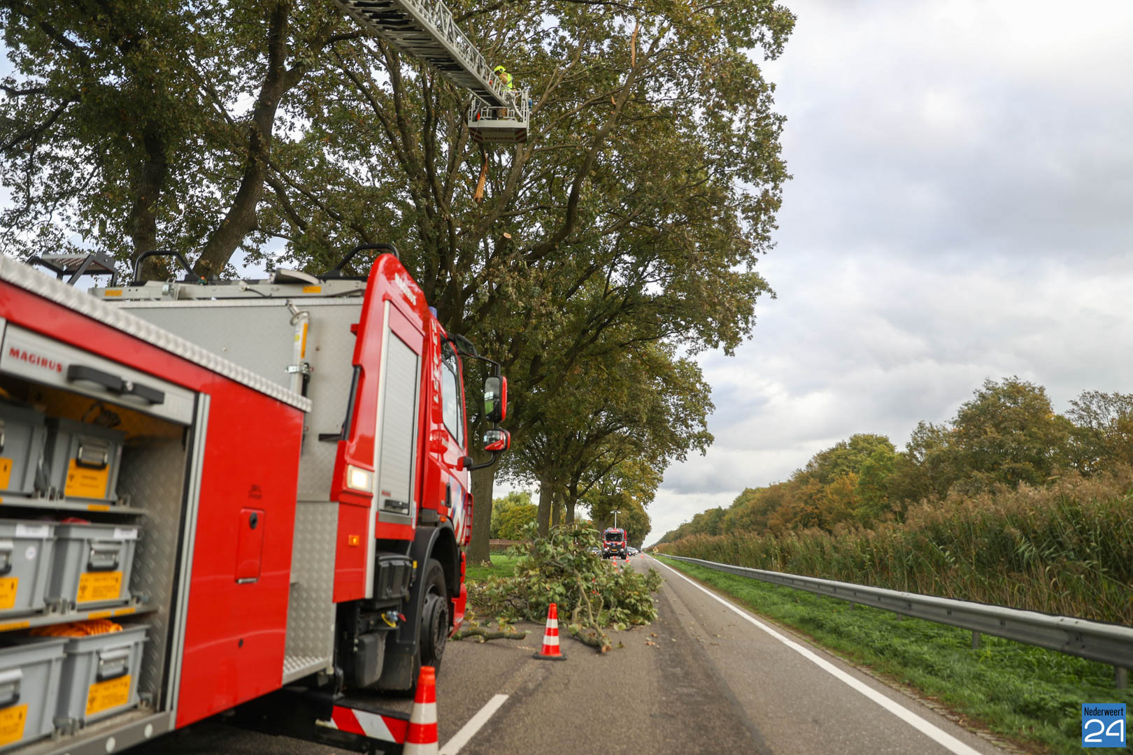 De brandweer werd opgeroepen om de tak te verwijderen. De brandweer van Nederweert en de ladderwagen van Weert kwamen ter plaatse om de takken uit de boom te zagen.