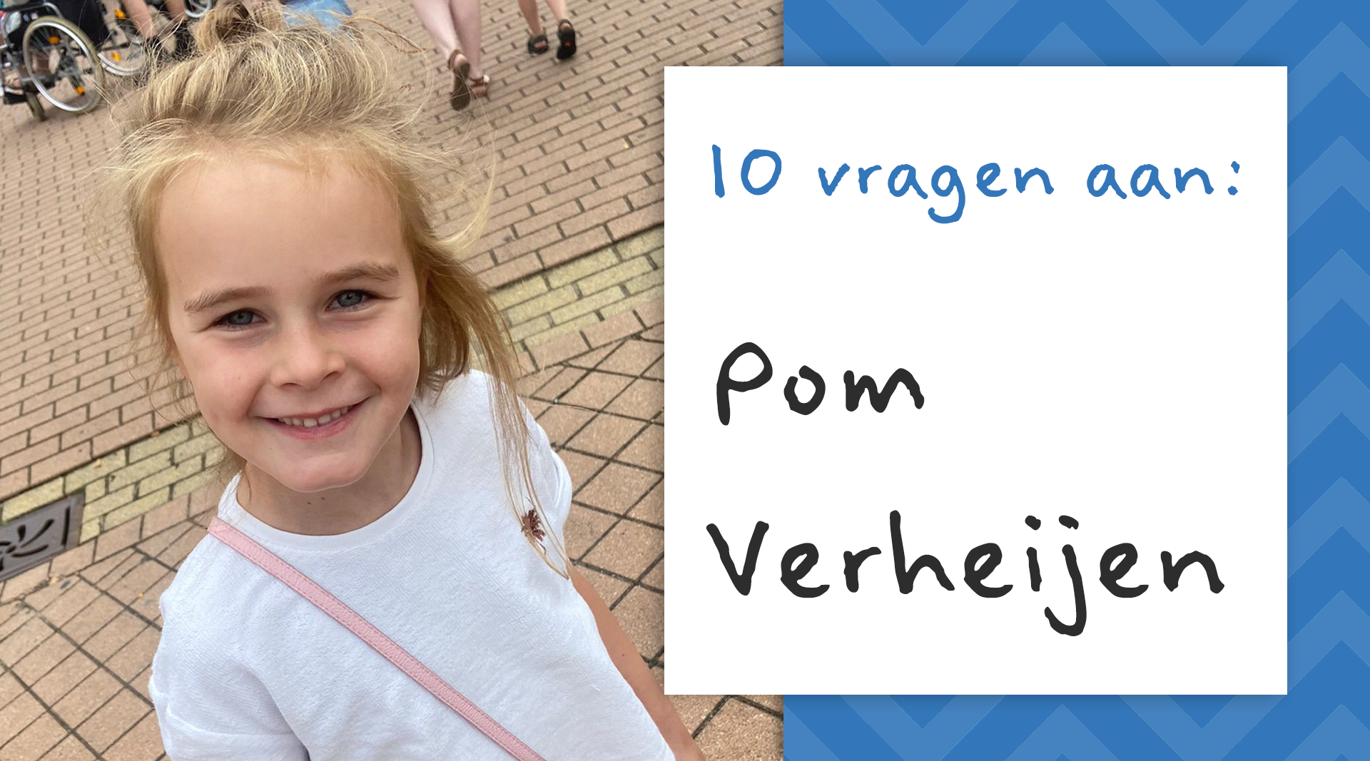 Mijn naam is Pom Verheijen ik ben 7 jaar en woon samen met mijn broer Goof, mama Danielle en papa Rolf op de Azaleastraat in Nederweert